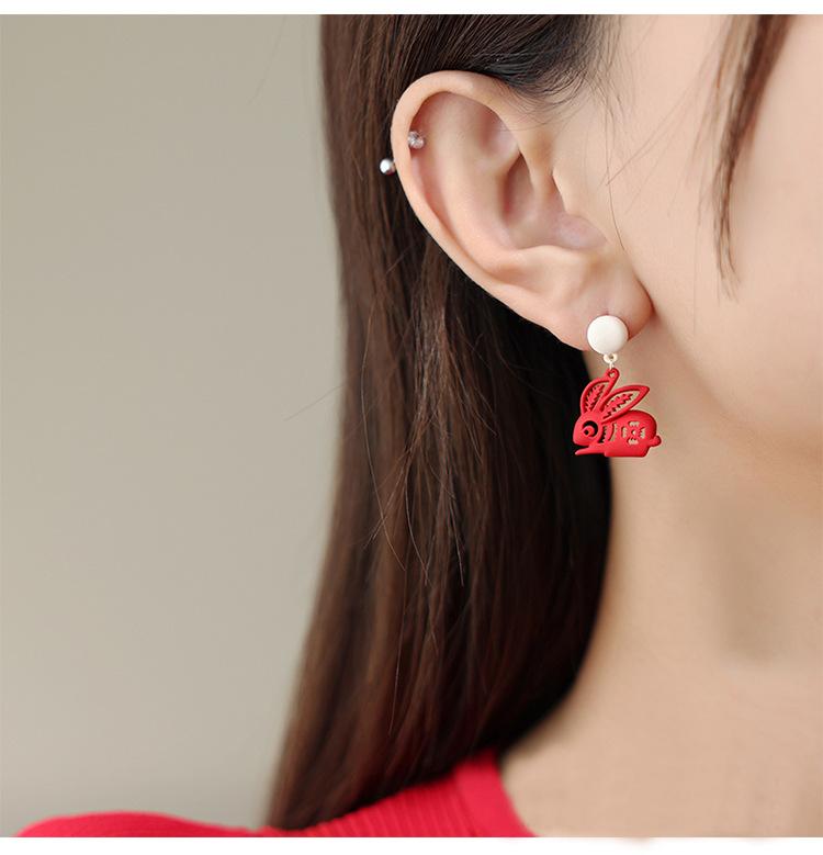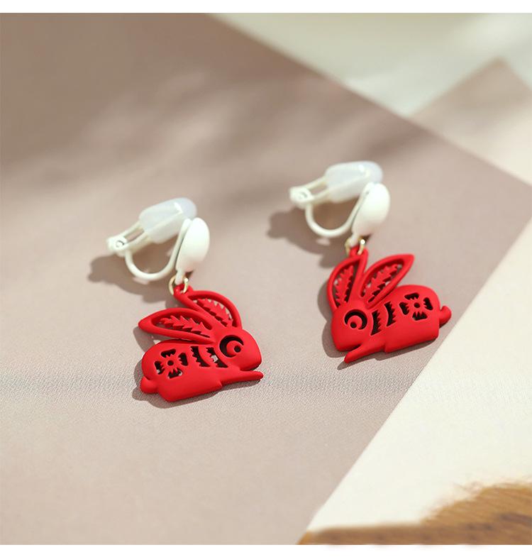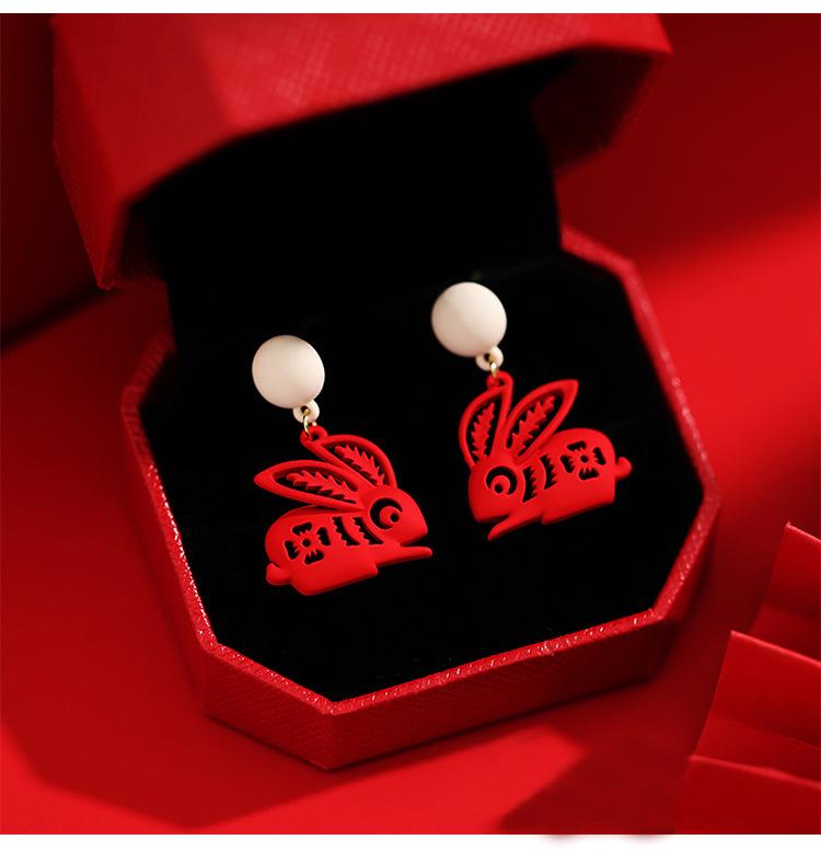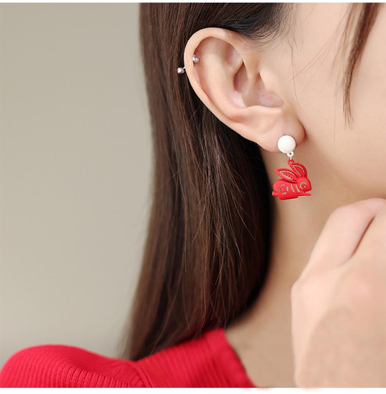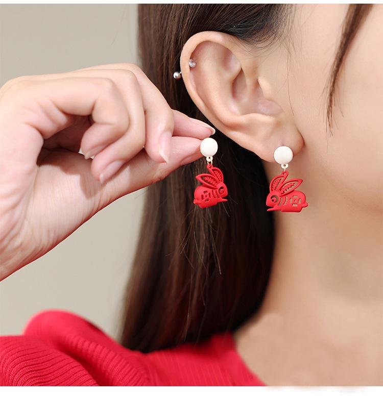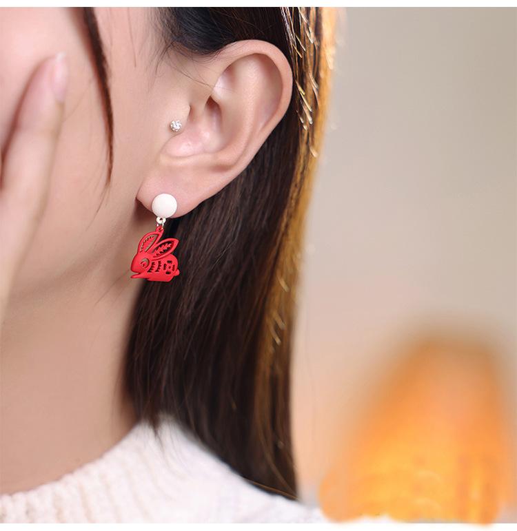 Compra Pendientes de plata s925 con forma de conejo rojo, estilo chino, con corte de papel y aguja, para mujer, con clip, ligeros y lujosos. al por mayor en Joom.pro