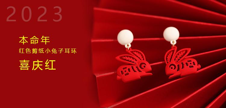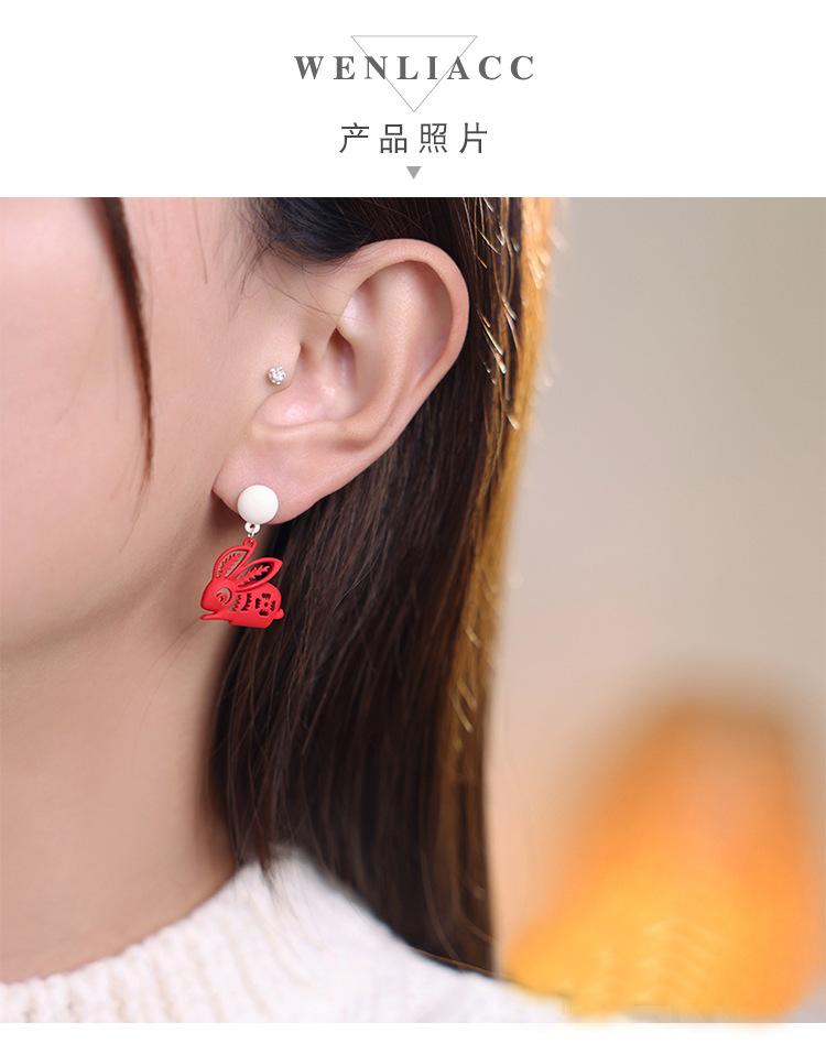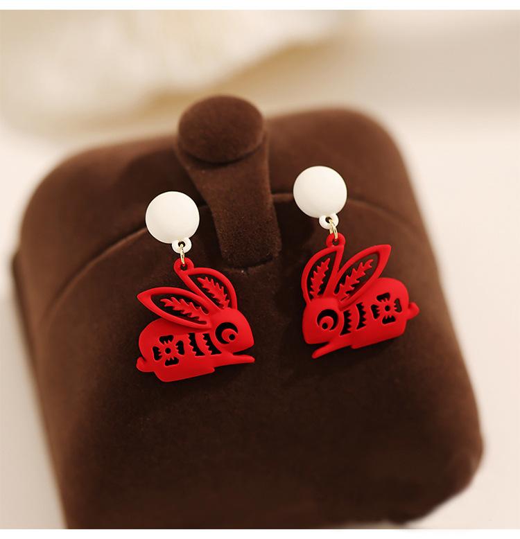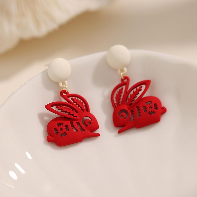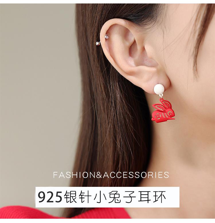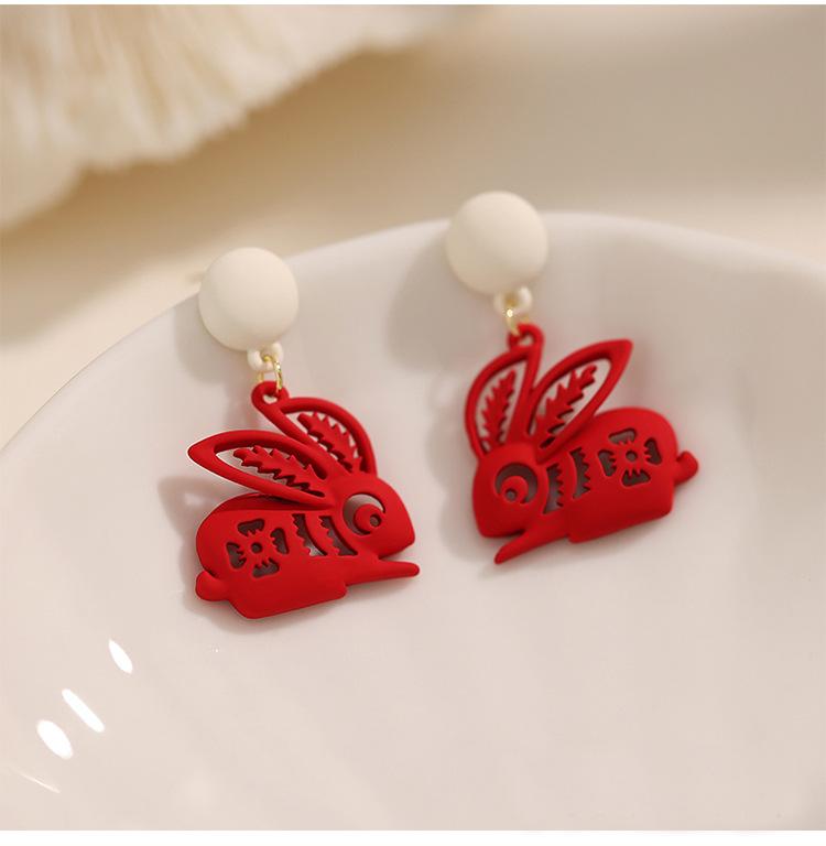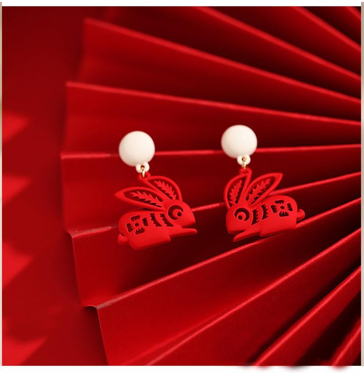 Compra Pendientes de plata s925 con forma de conejo rojo, estilo chino, con corte de papel y aguja, para mujer, con clip, ligeros y lujosos. al por mayor en Joom.pro