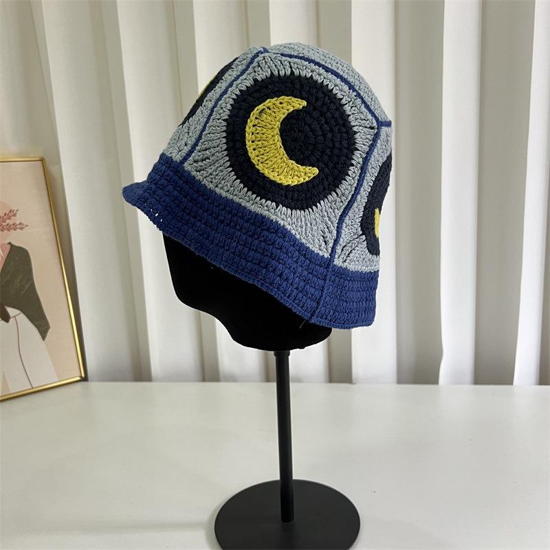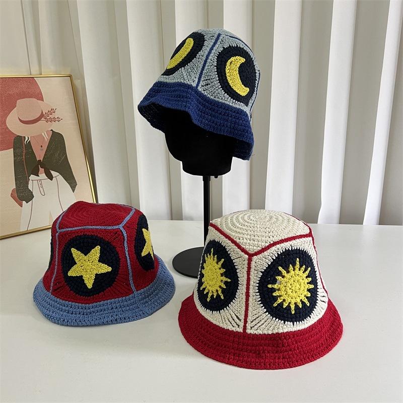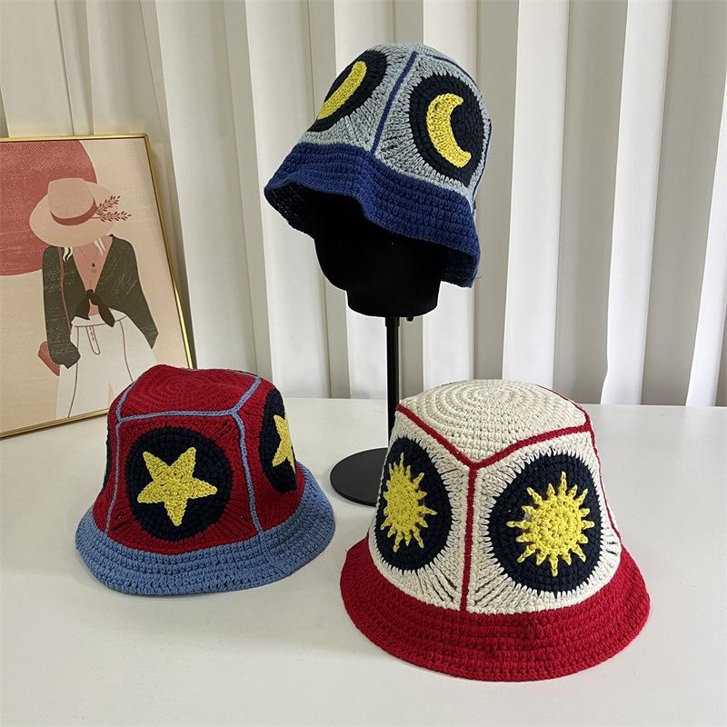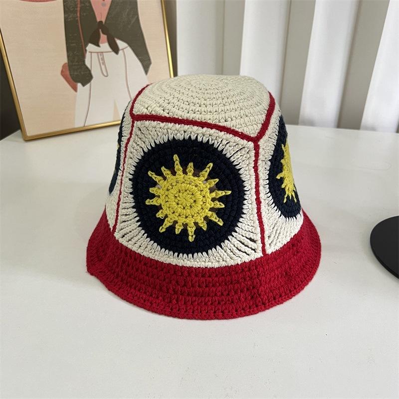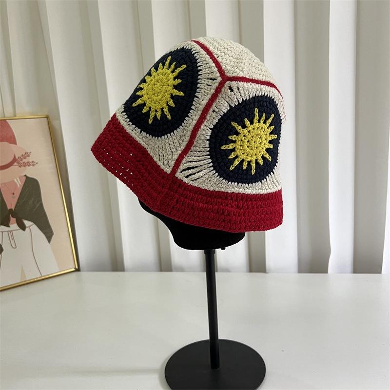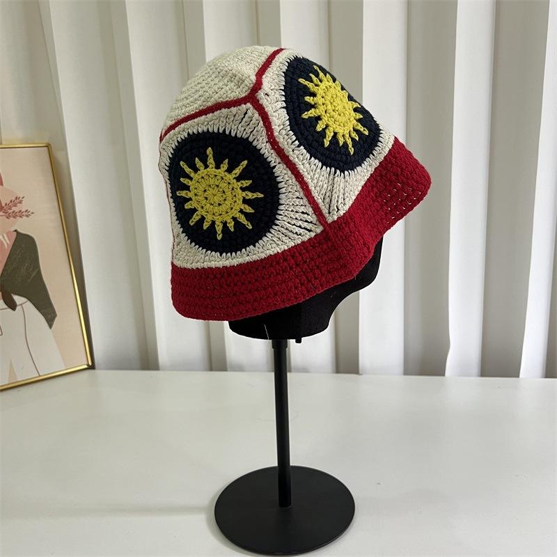 Sombrero de Cubeta Tejido a Mano Estilo Étnico Retro Japonés Flor Dulce para Mujer Primavera y Otoño Sombrero de Pescador Calado Casual Combinable