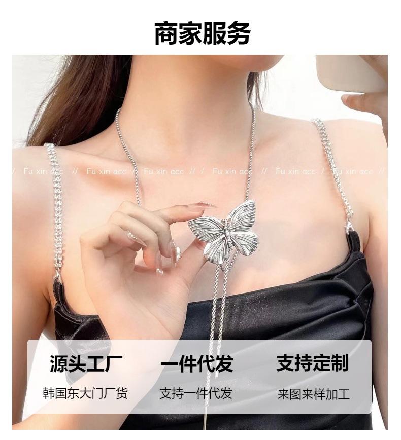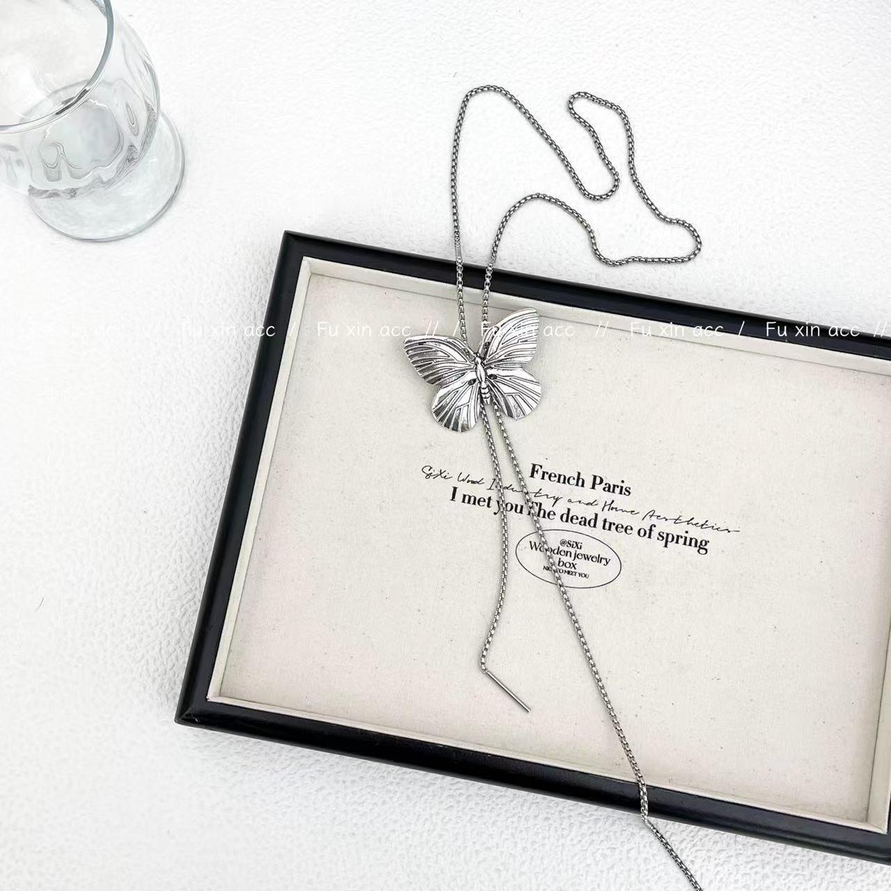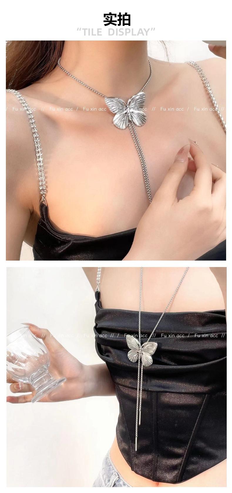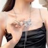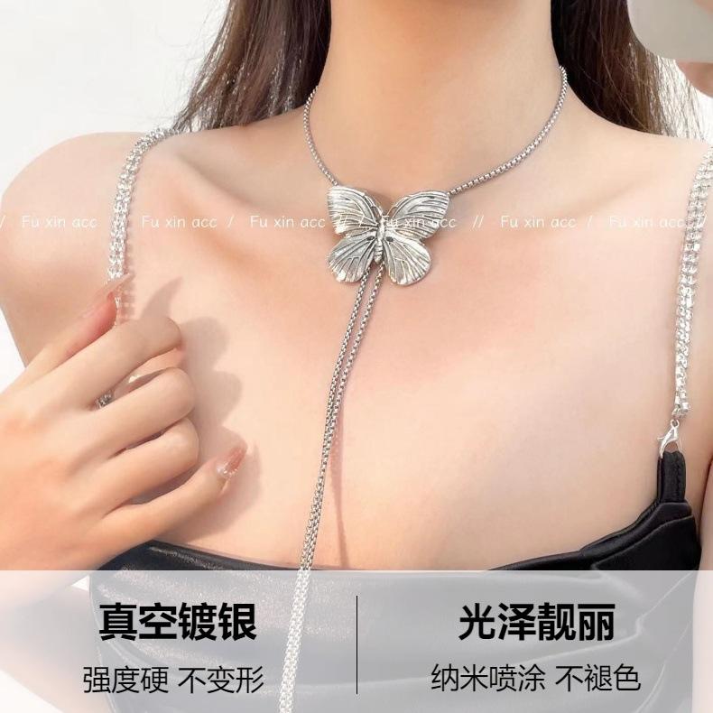 Collar de mariposa de plata de verano nuevo para mujer, elegante, de alta gama, extraíble, cadena larga para clavícula, ligero, de lujo, combina con todo.