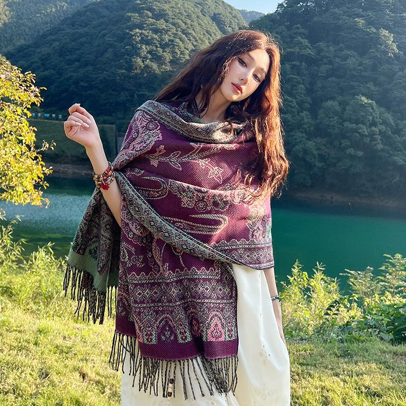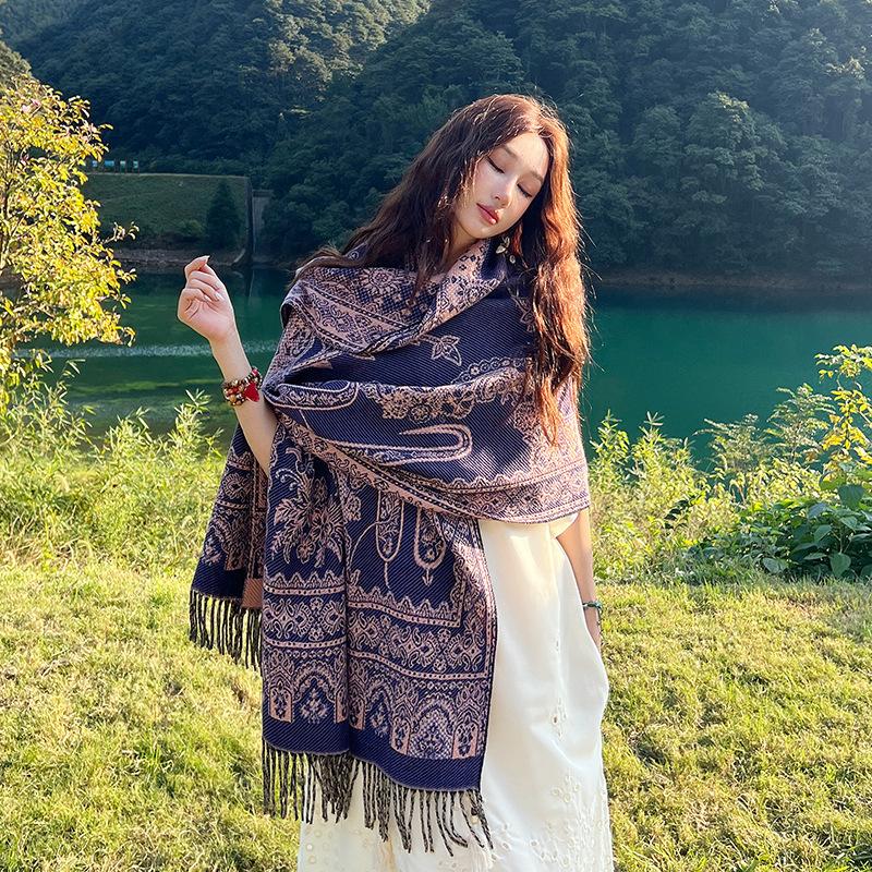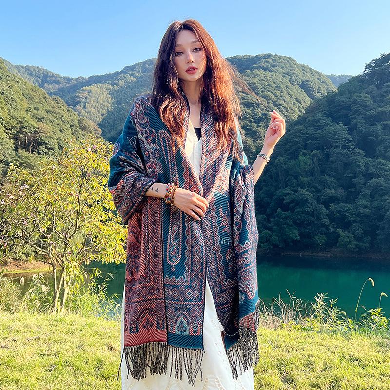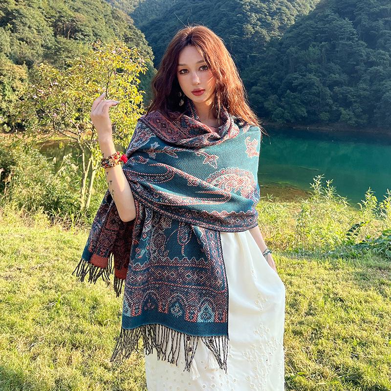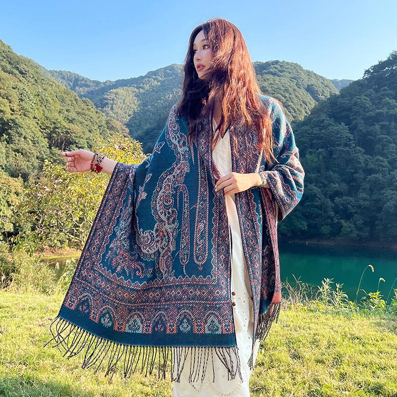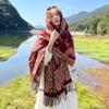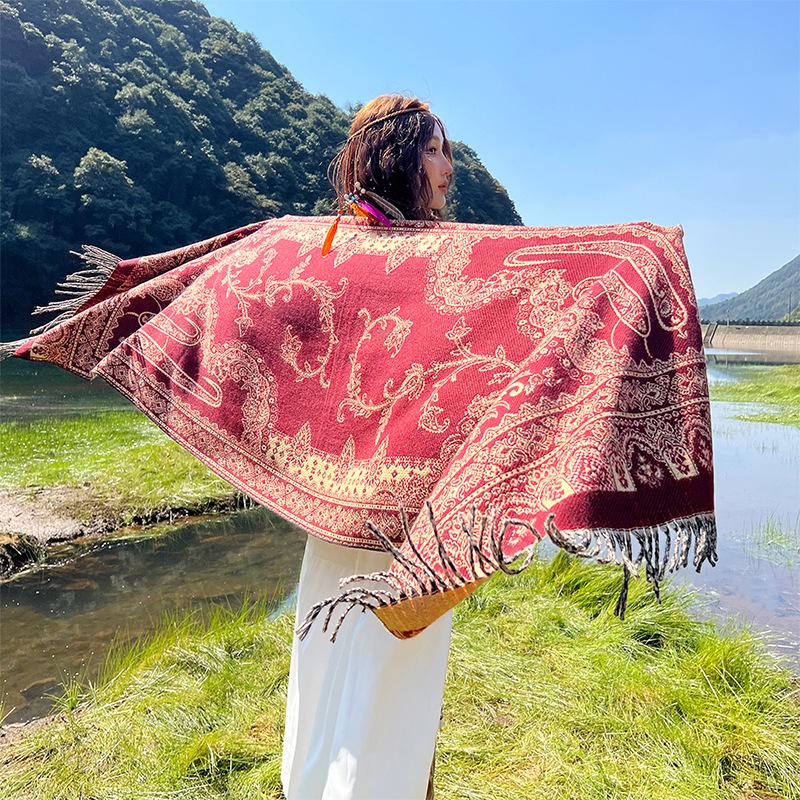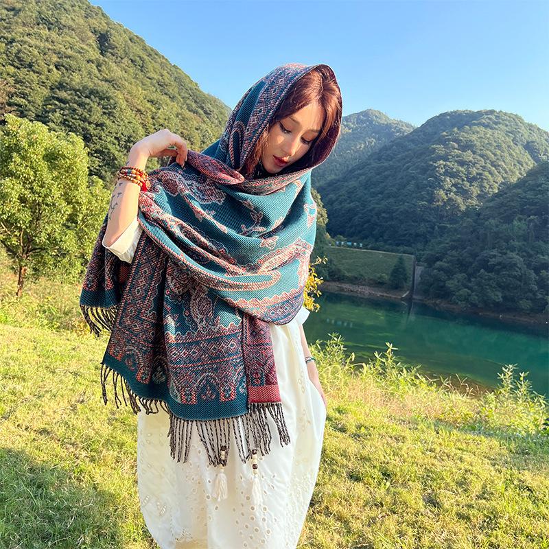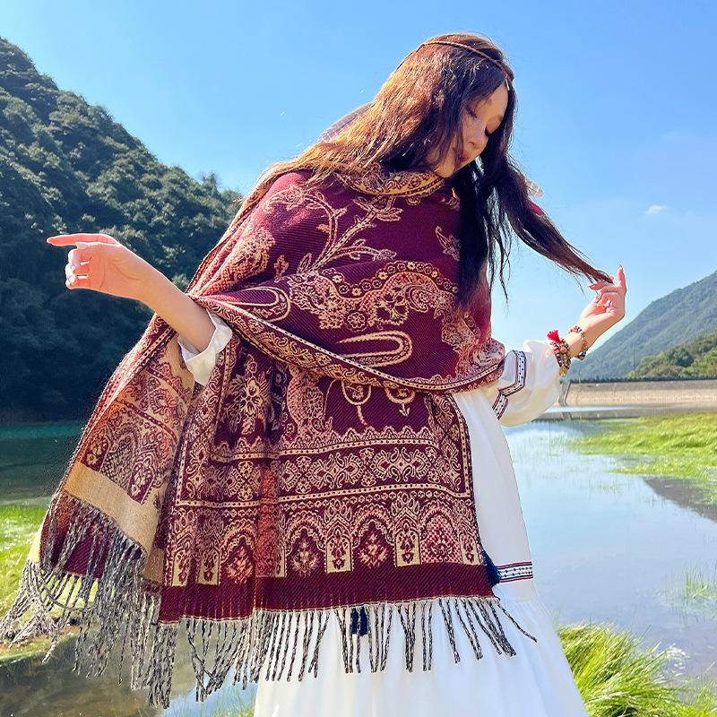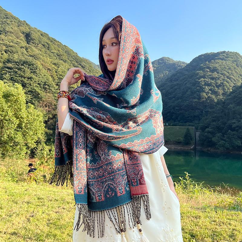 Bufanda estilo étnico artístico retro tipo cachemir para mujer, nueva bufanda de viaje bohemia, chal cálido versátil