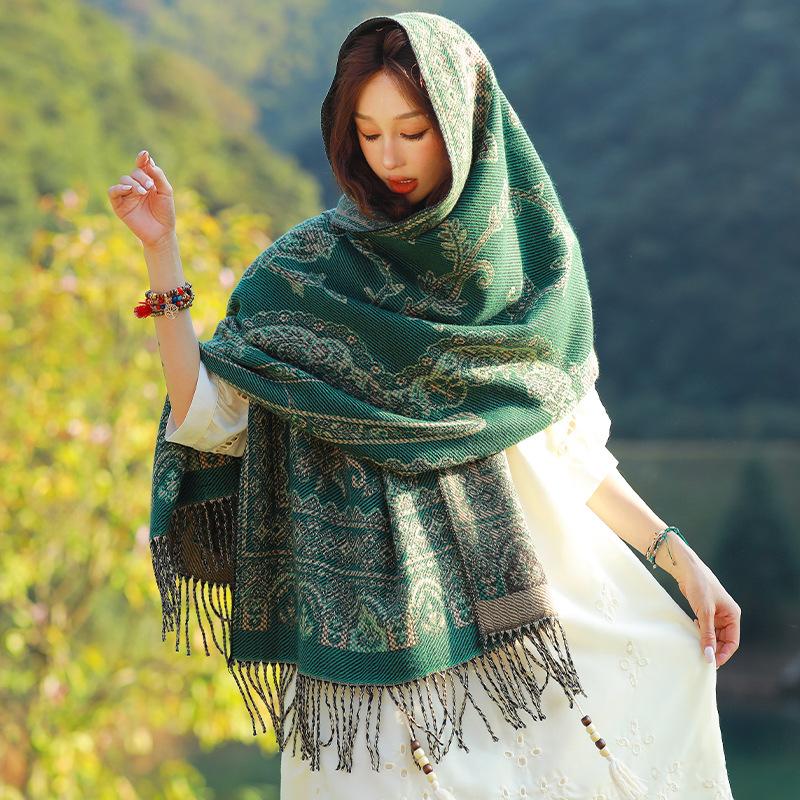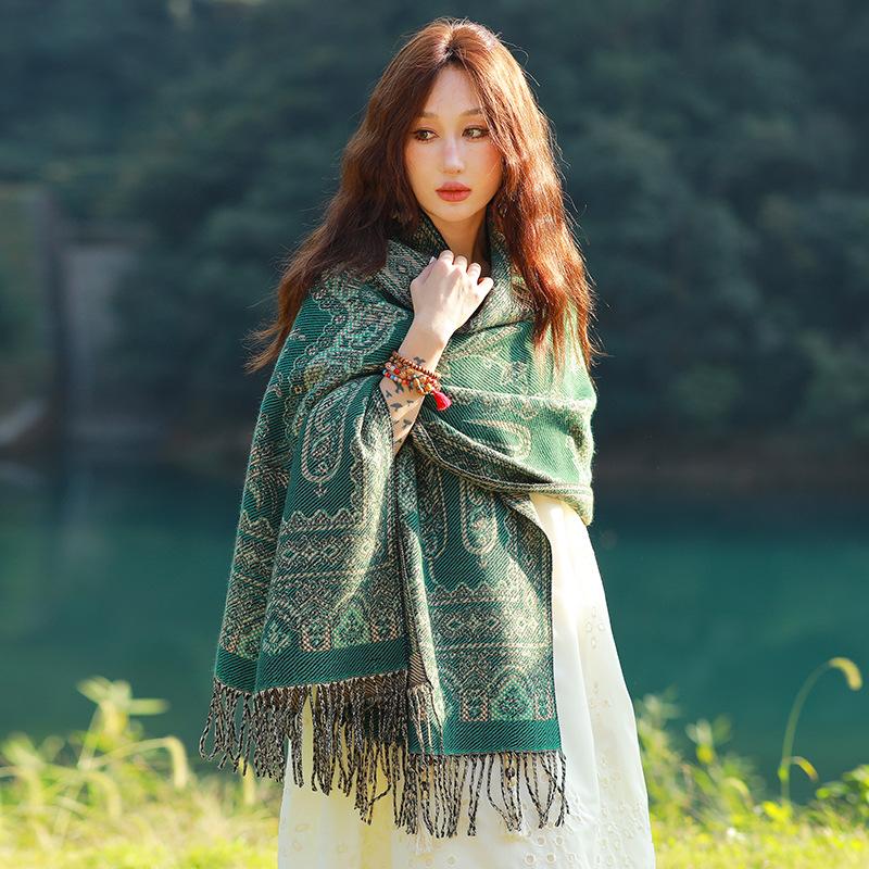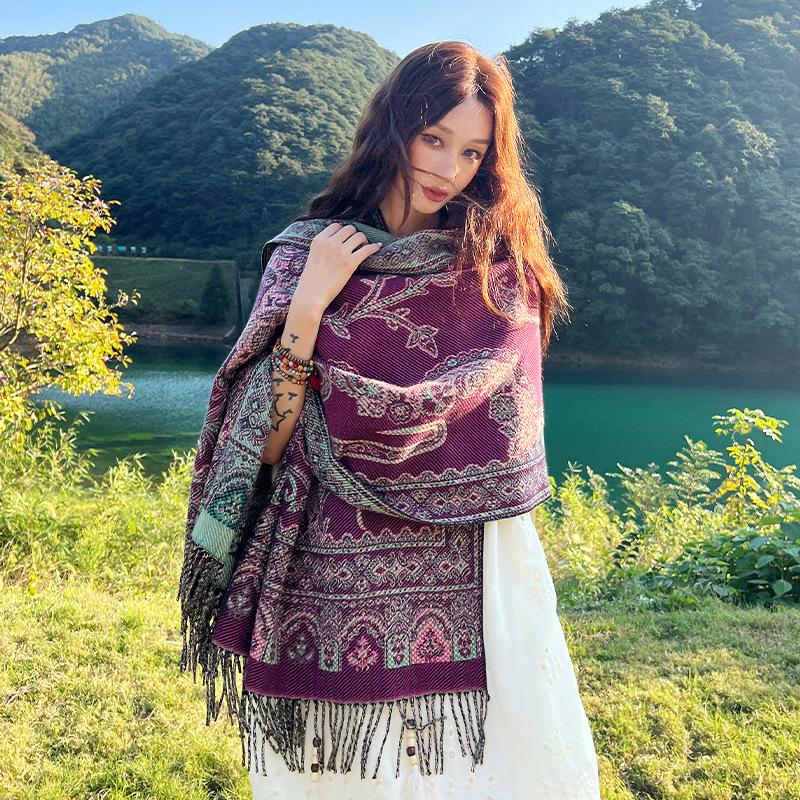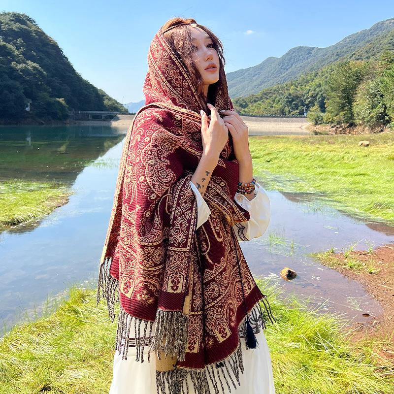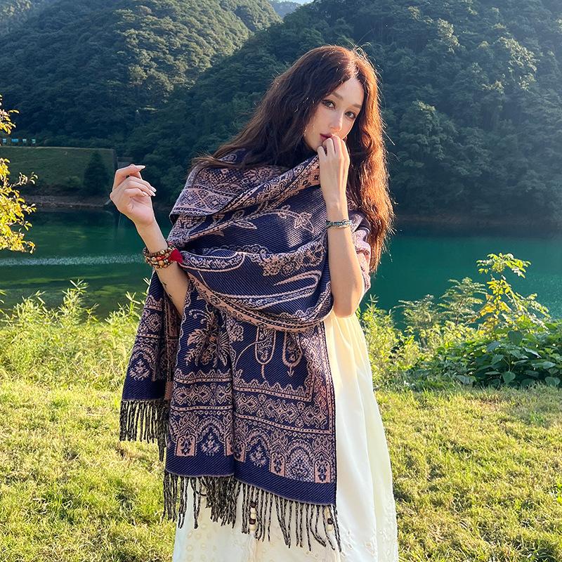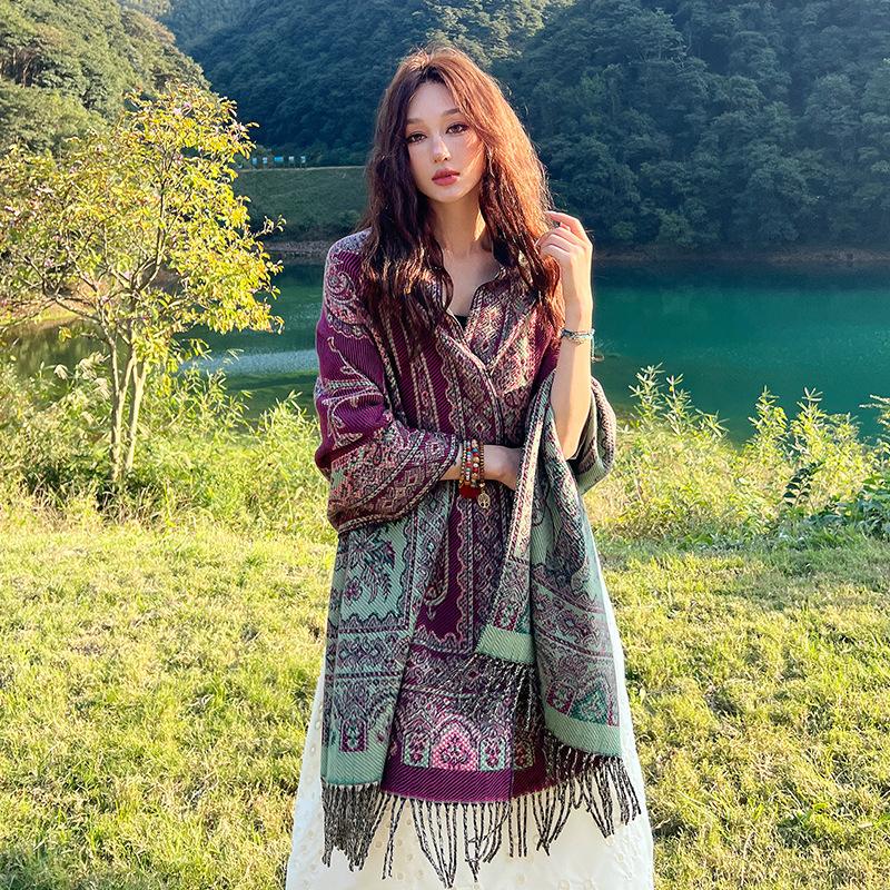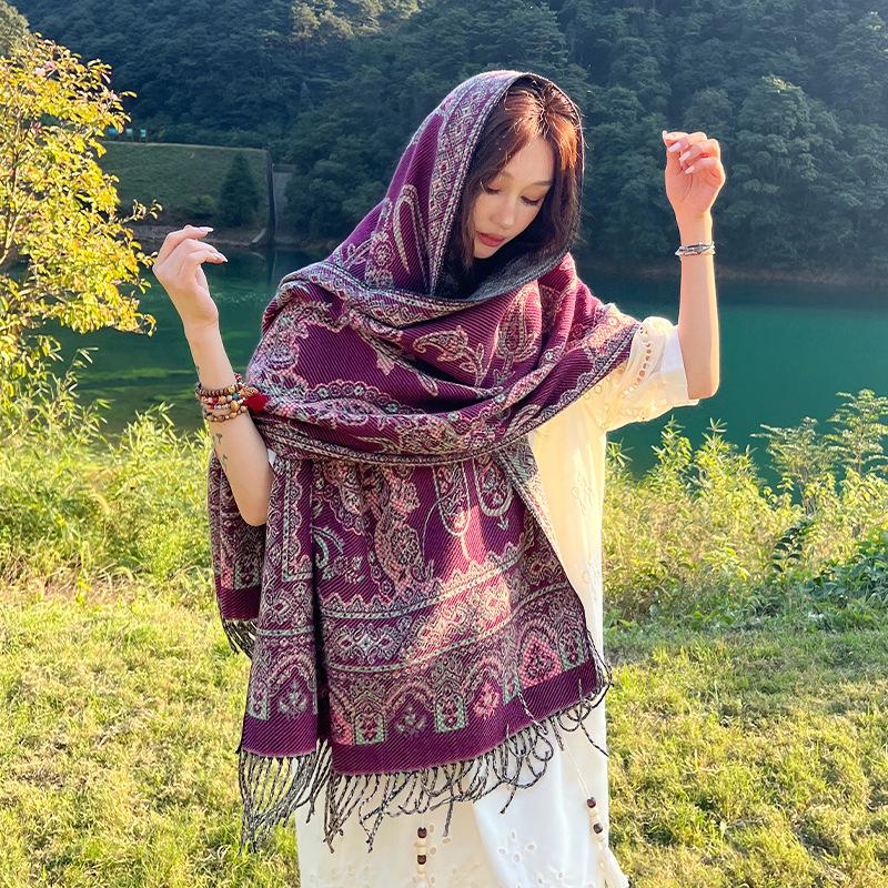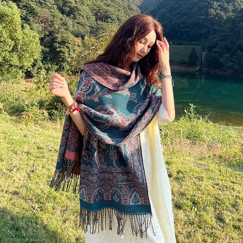 Bufanda estilo étnico artístico retro tipo cachemir para mujer, nueva bufanda de viaje bohemia, chal cálido versátil