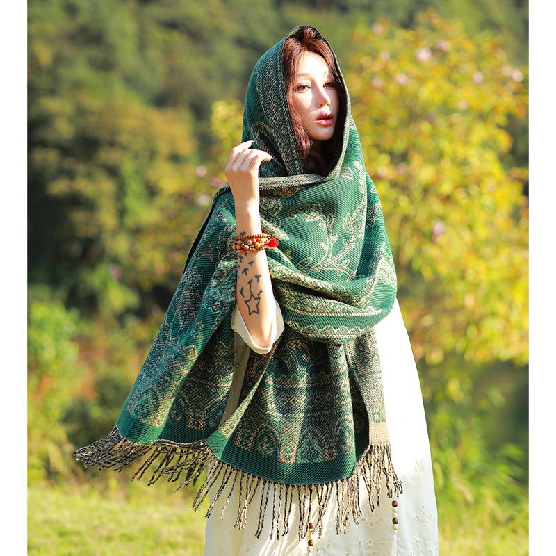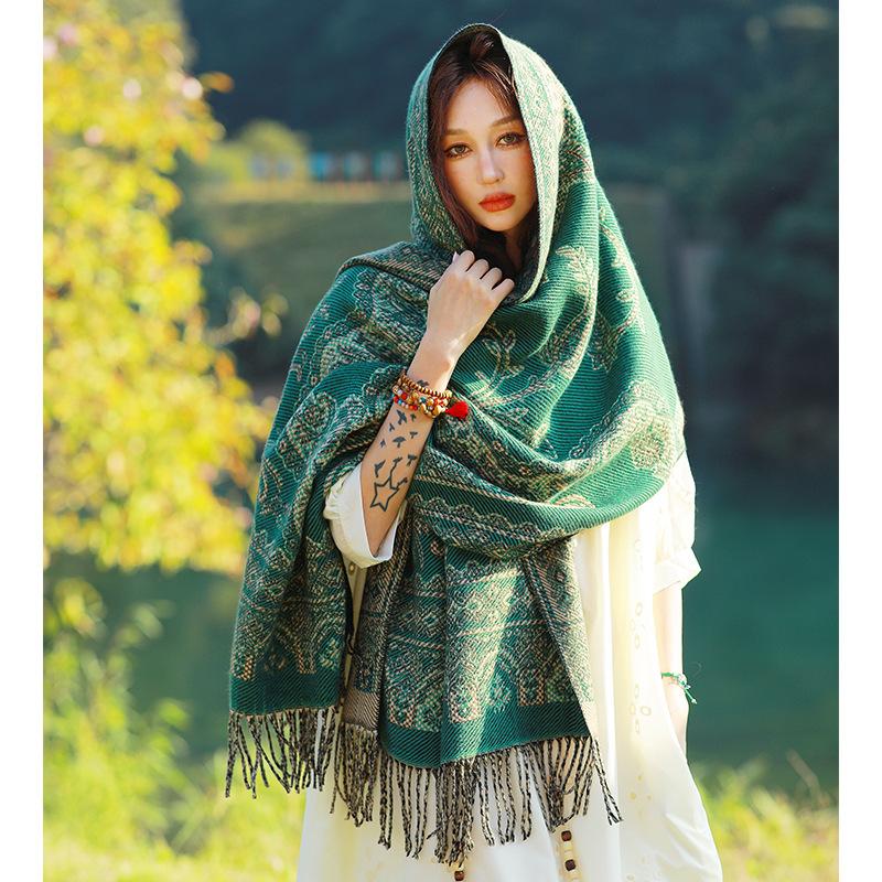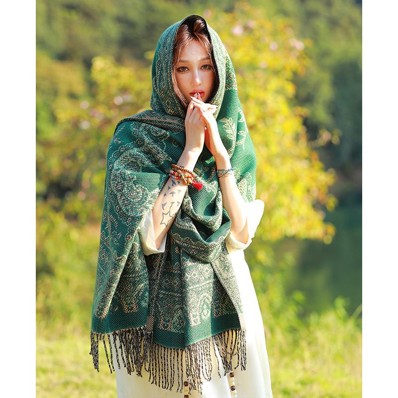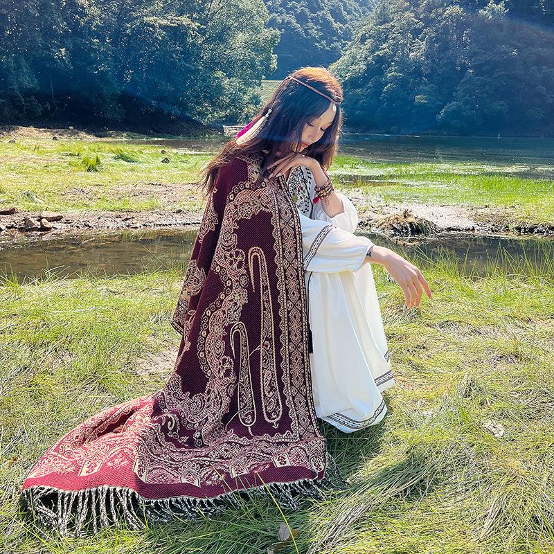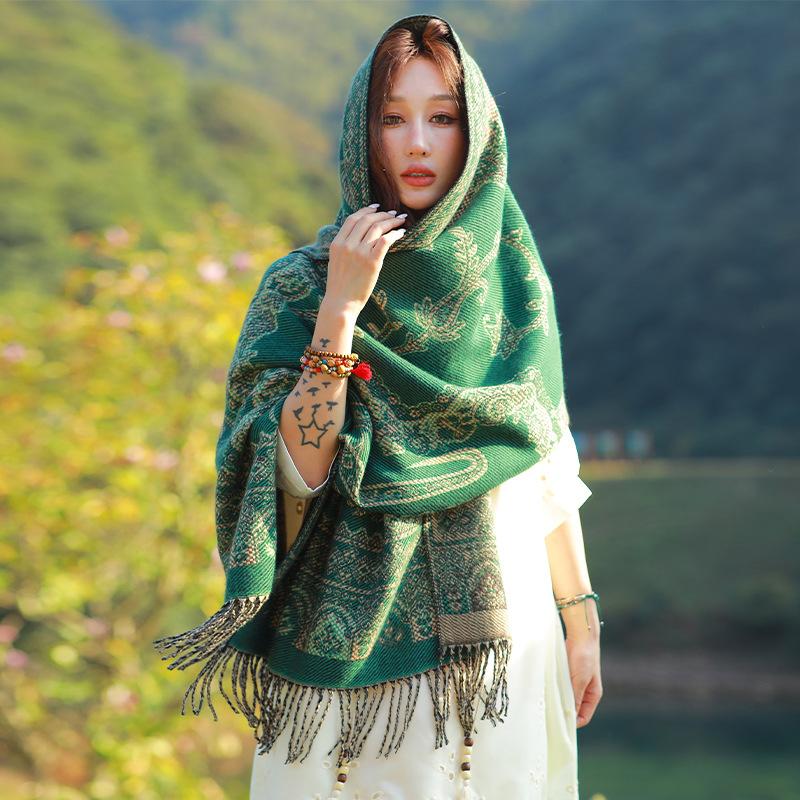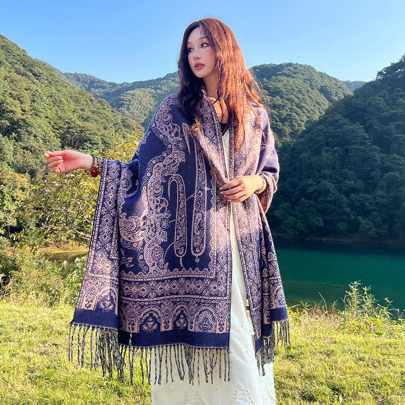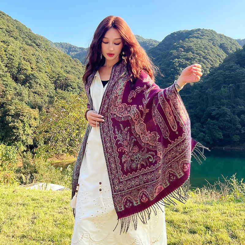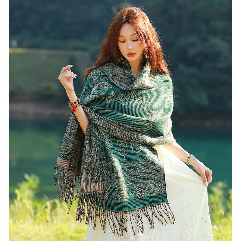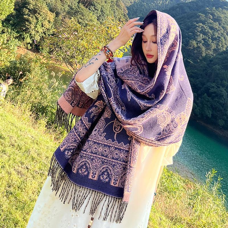 Bufanda estilo étnico artístico retro tipo cachemir para mujer, nueva bufanda de viaje bohemia, chal cálido versátil