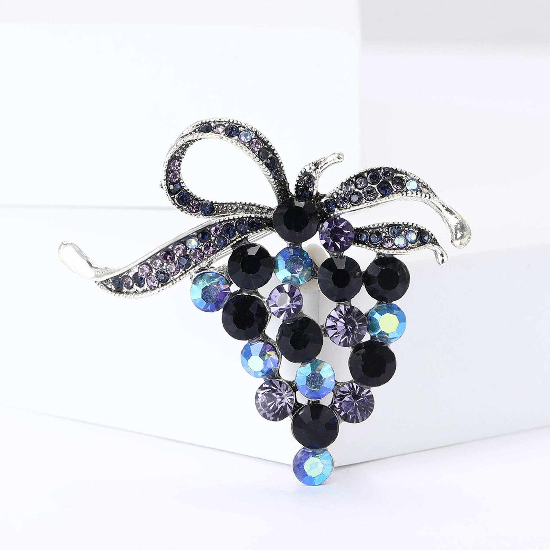 Broche de uva con diamantes de imitación de aleación fresca y nuevo a la moda, exquisito broche de ramillete para traje de mujer, alfiler de joyería