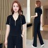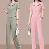 Conjunto deportivo informal de verano 2024 para mujer, elegante, adelgazante, de seda helada, con pantalones anchos de dos piezas