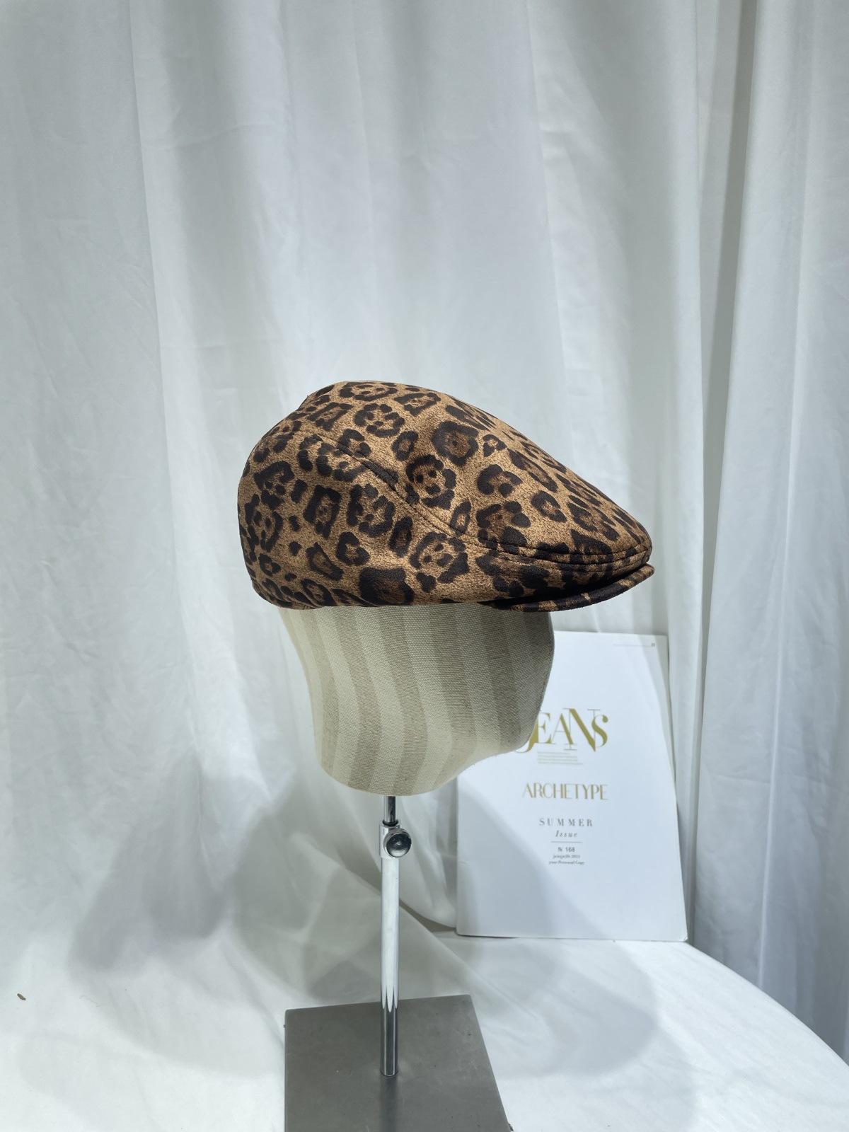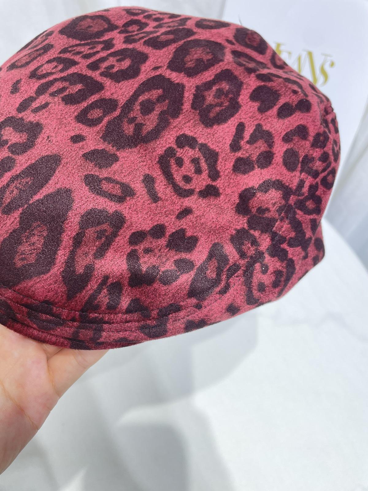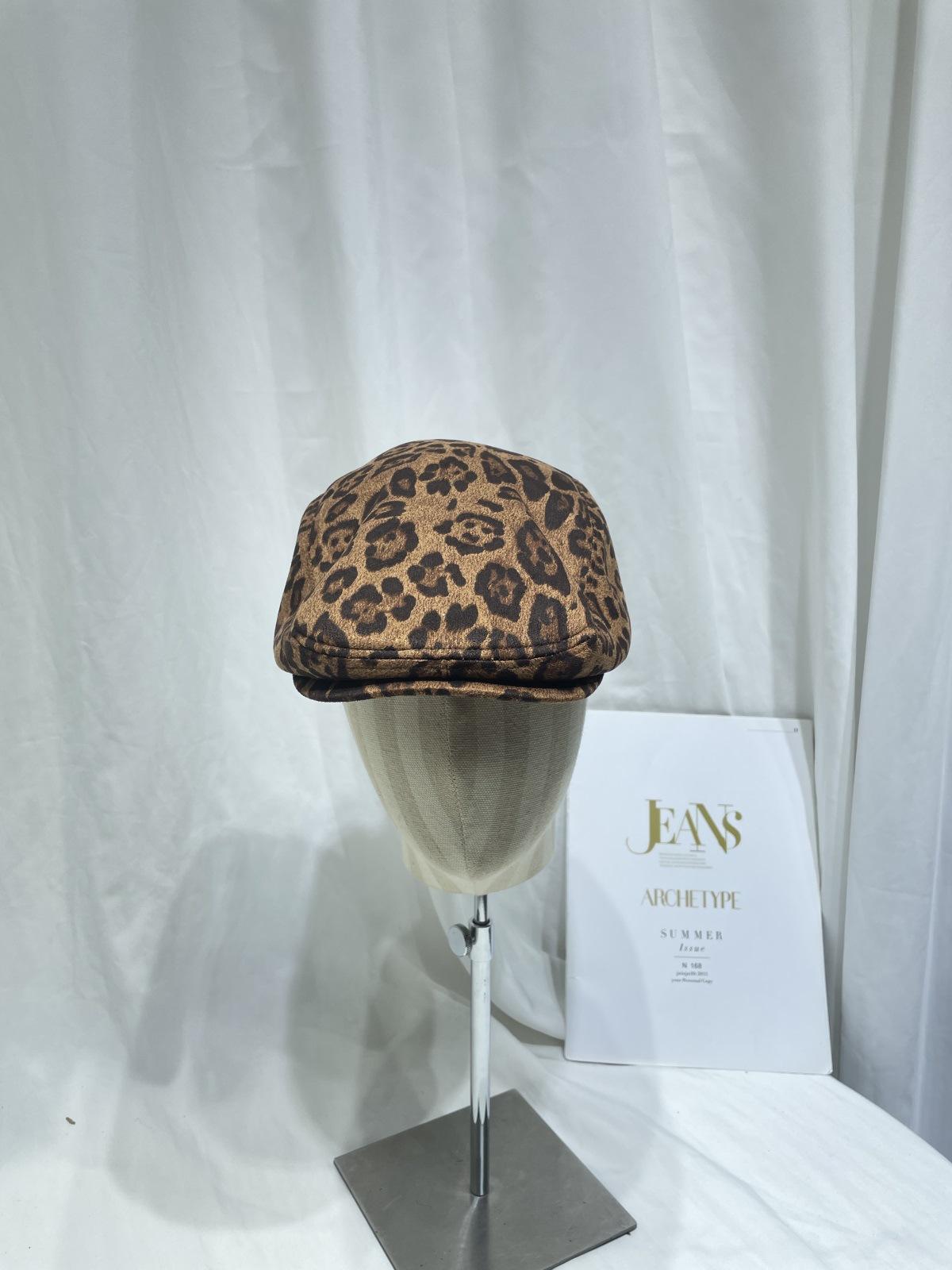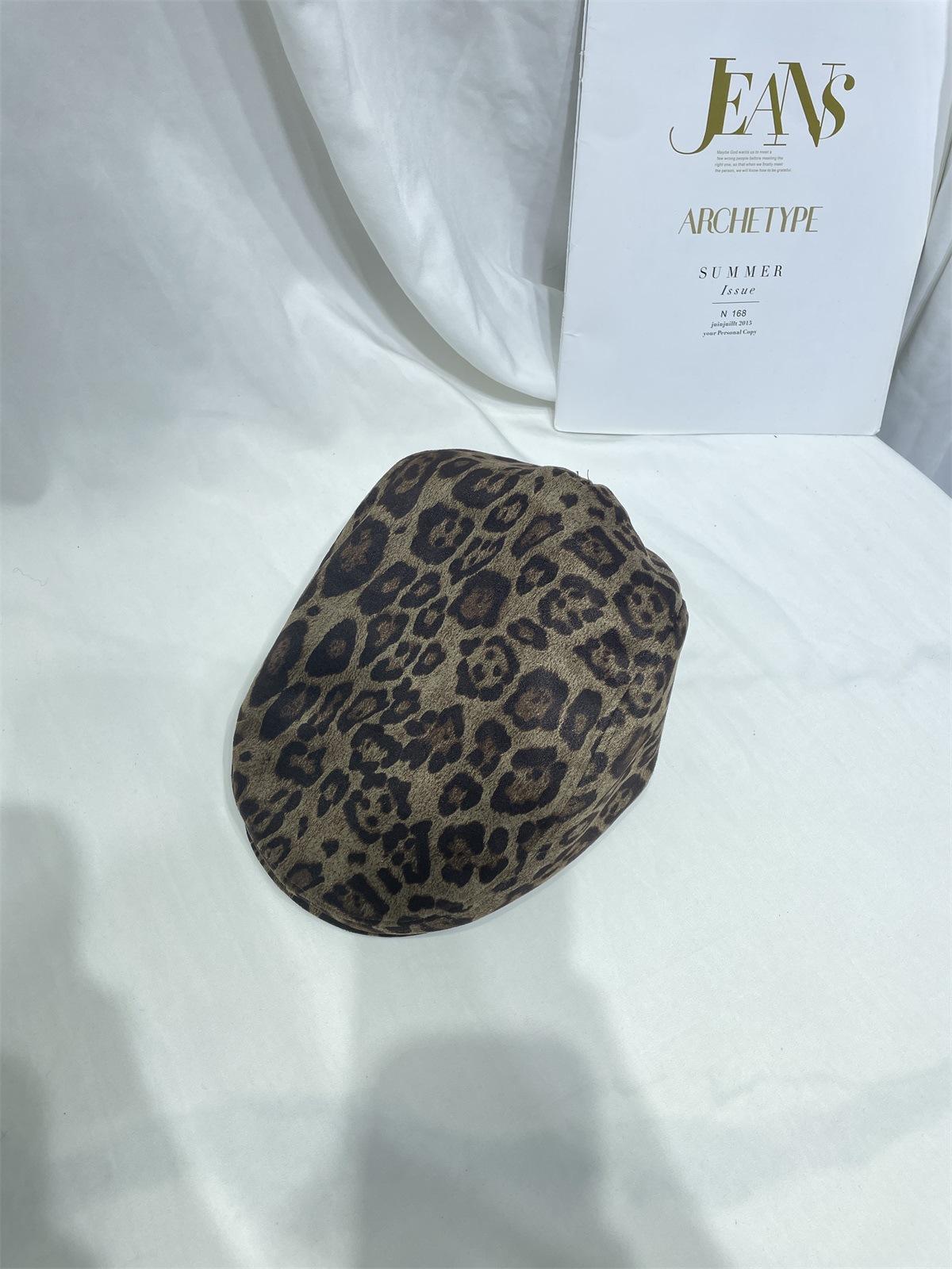 Dulce Cool Europeo y Americano Vintage Ins Leopardo Gamuza Gorra Plana Moda Otoño e Invierno Casual Combinable Boina de Pintor