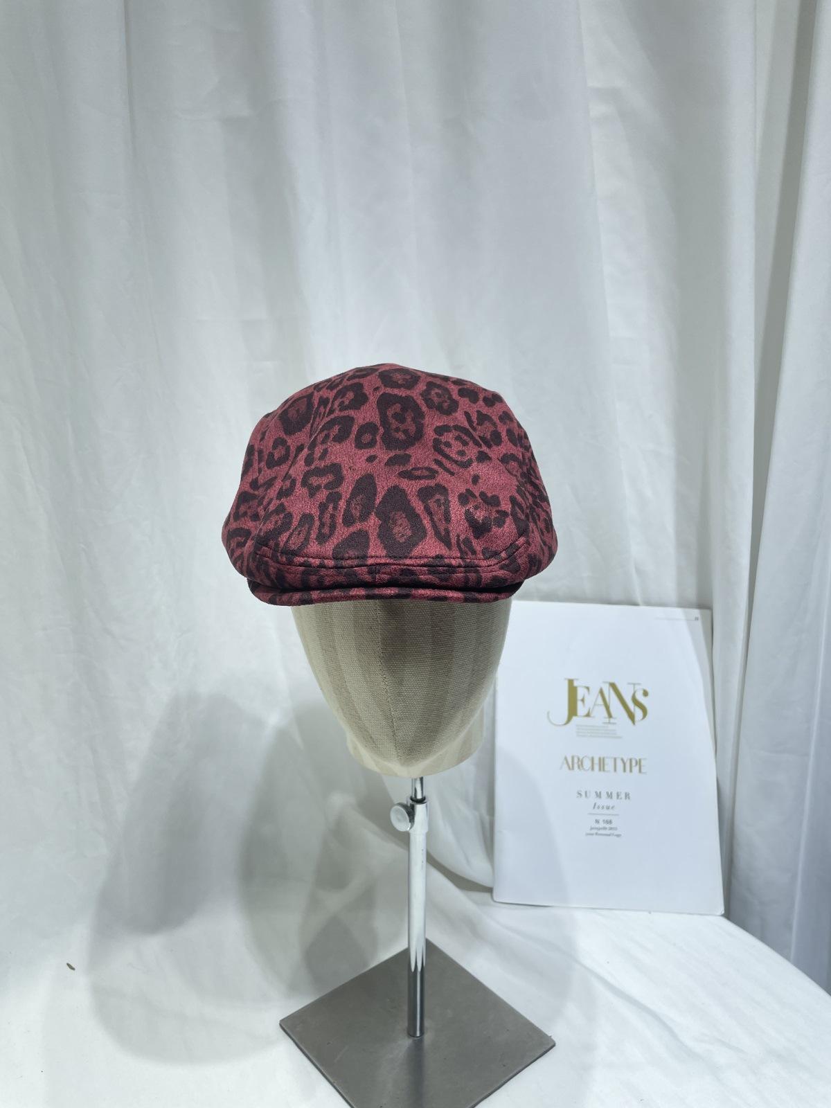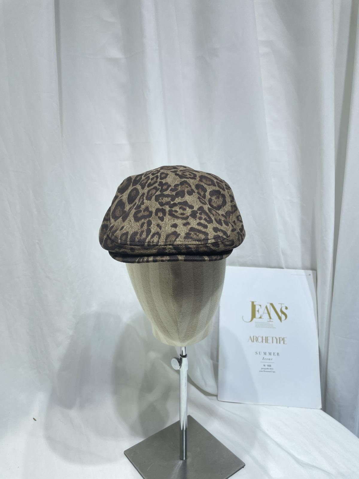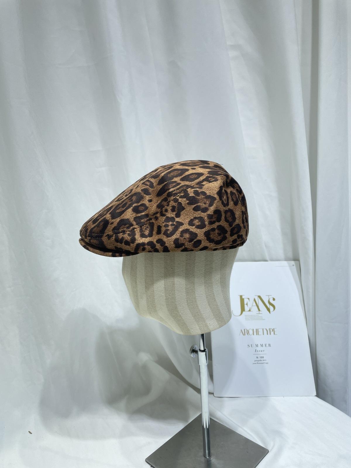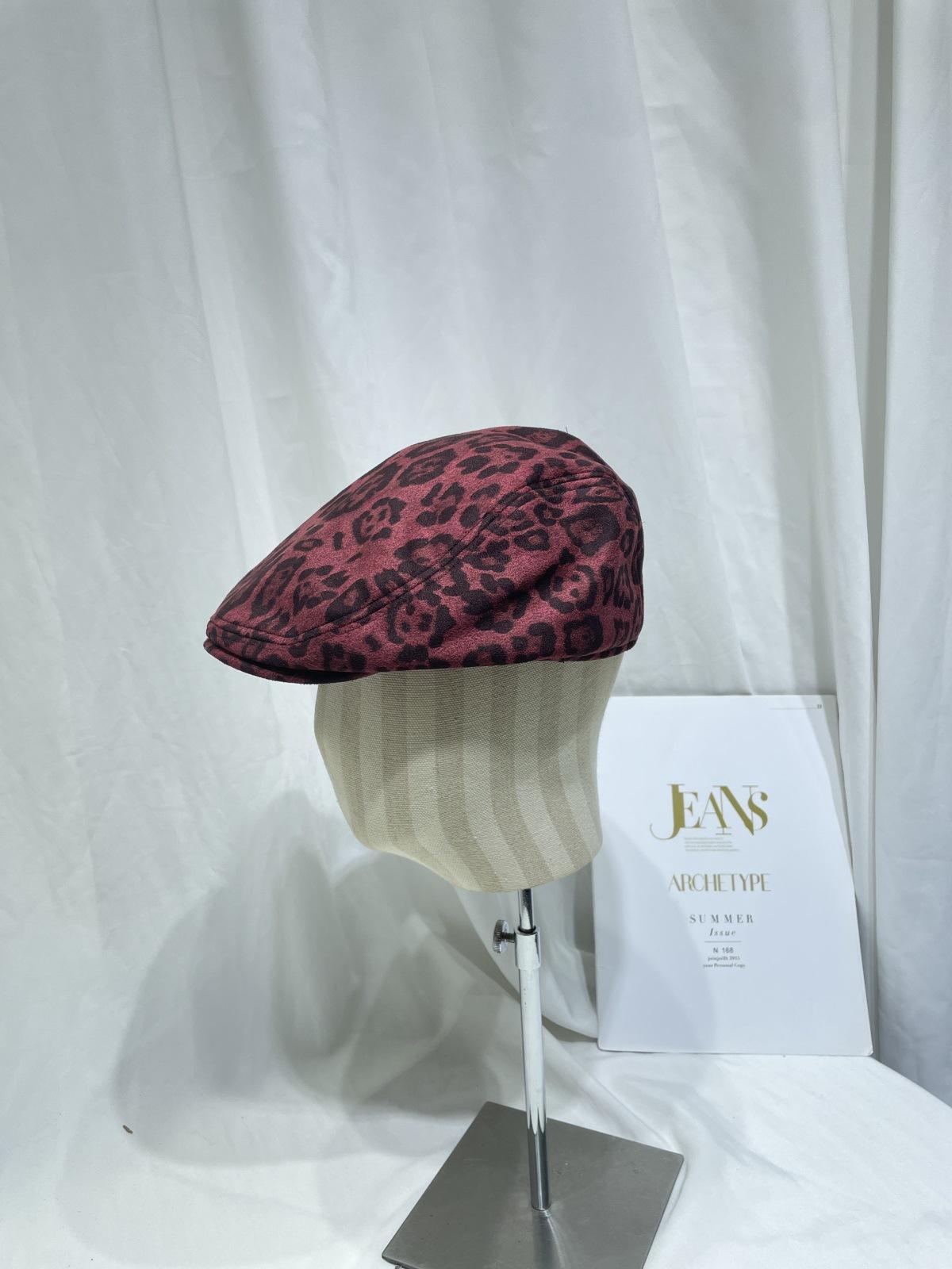 Dulce Cool Europeo y Americano Vintage Ins Leopardo Gamuza Gorra Plana Moda Otoño e Invierno Casual Combinable Boina de Pintor