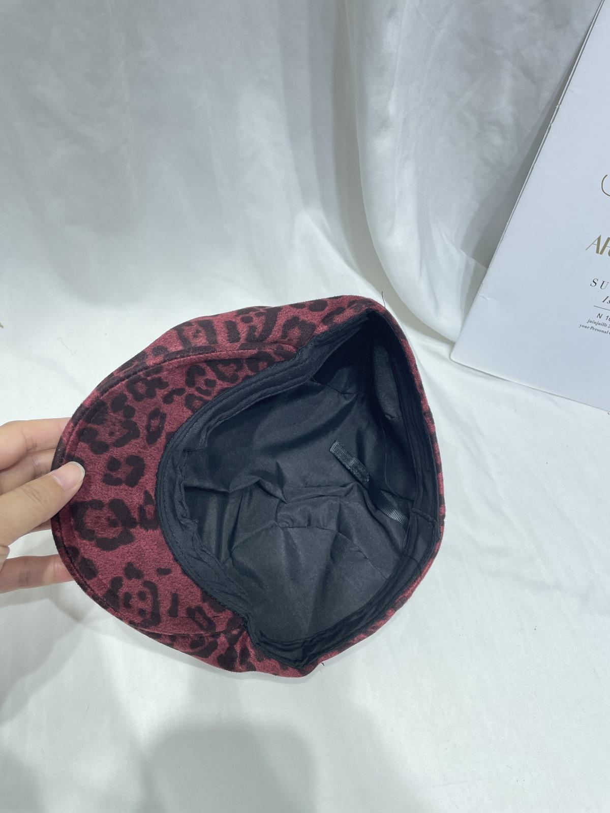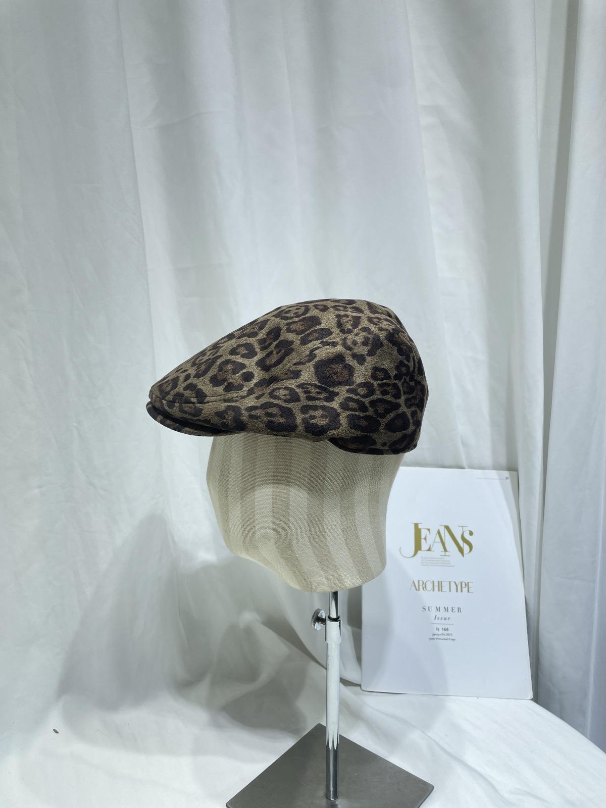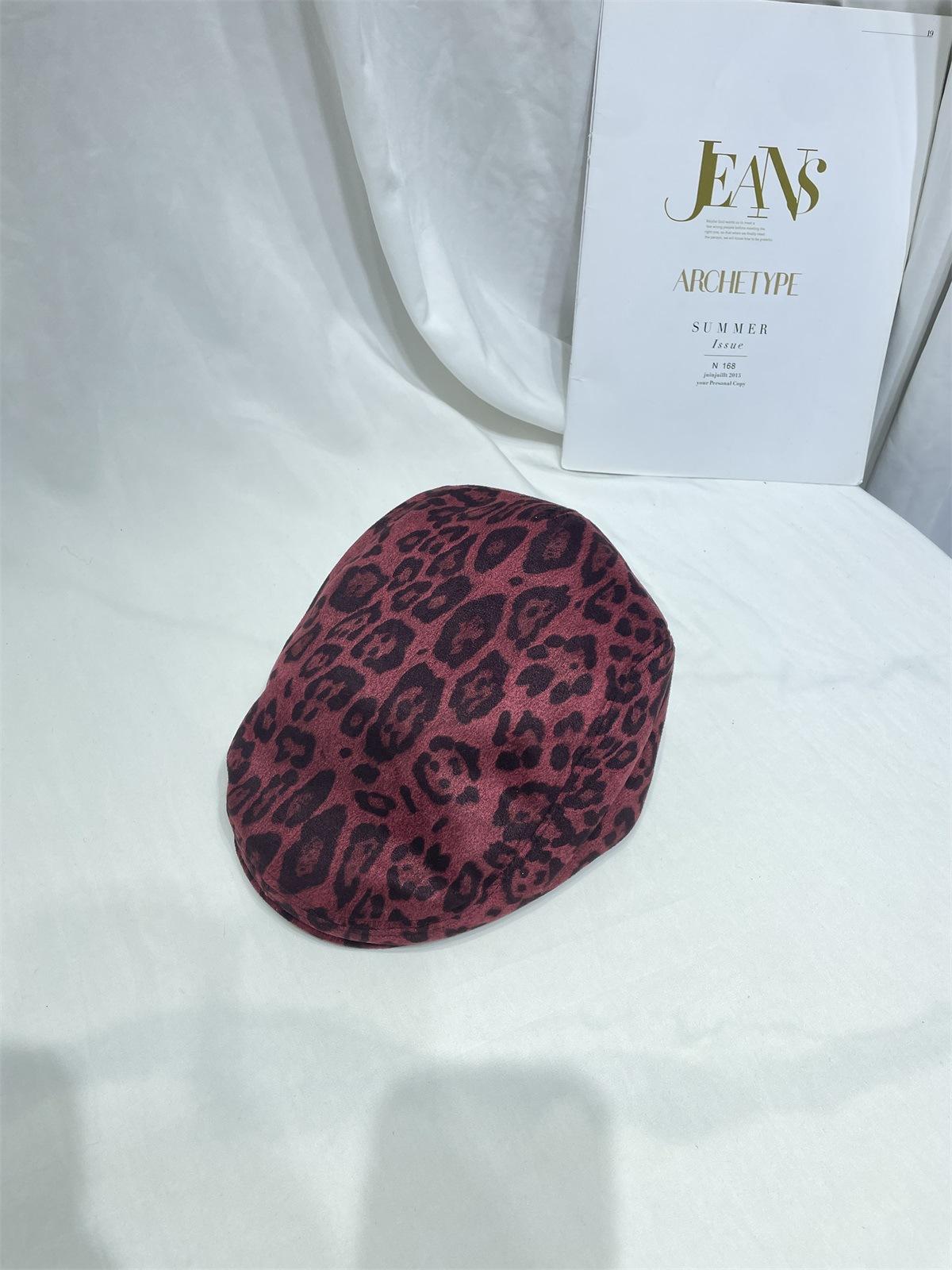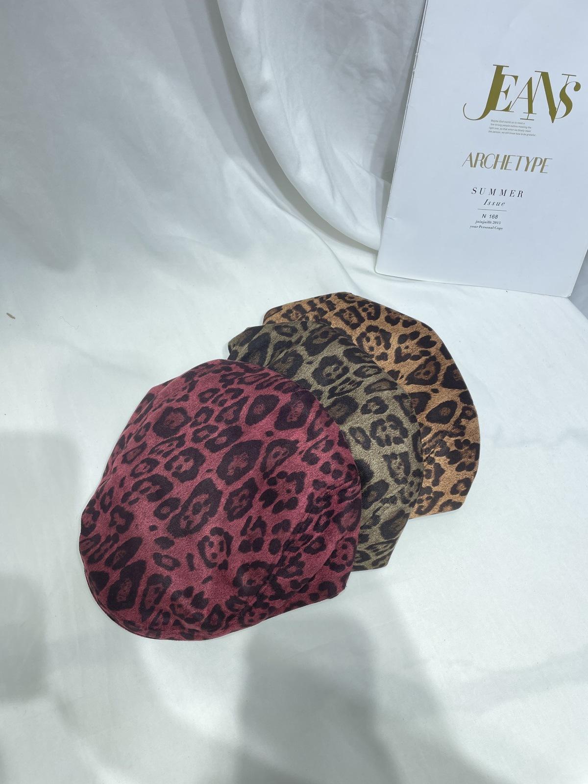 Dulce Cool Europeo y Americano Vintage Ins Leopardo Gamuza Gorra Plana Moda Otoño e Invierno Casual Combinable Boina de Pintor