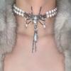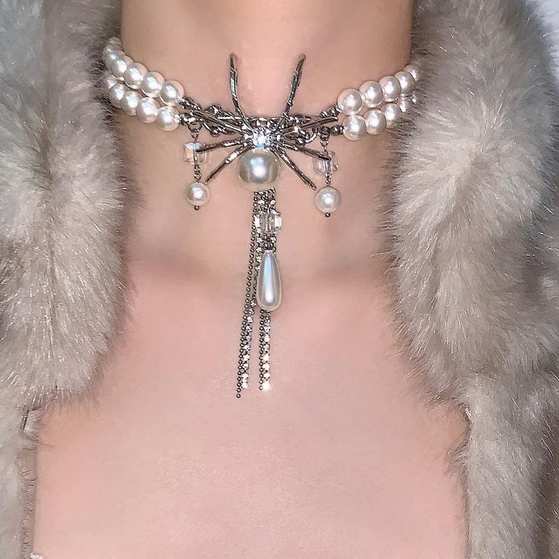 Collar con colgante de araña con borla de doble perla, moderno y dulce, con personalidad única, diseño de nicho, cadena de clavícula con sentido nuevo