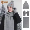 Conjunto de tres piezas de gorro, bufanda y guantes de lana para otoño e invierno, cálido gorro de punto cruzado con forro polar de doble capa para mujer.