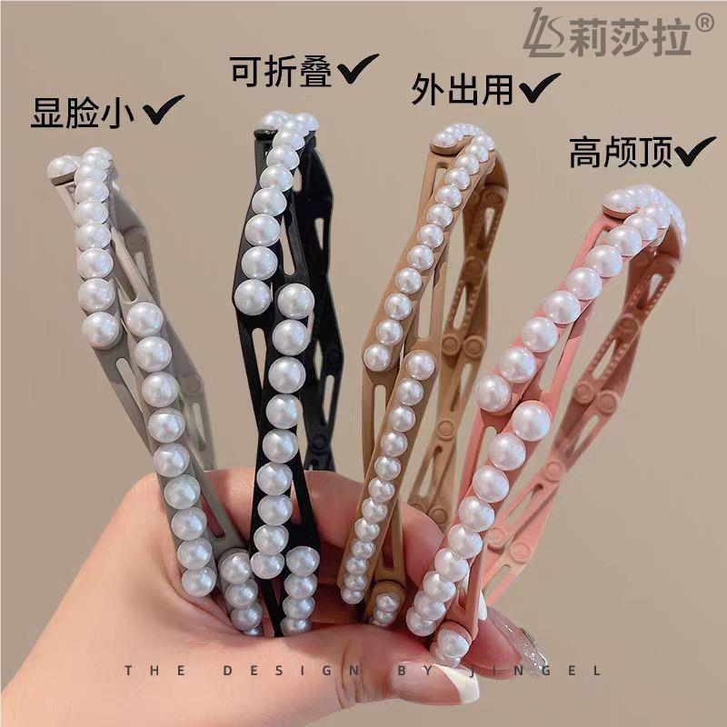 Diadema plegable retráctil para mujer, estilo perla, 2024, nueva tarjeta para el cabello, diadema portátil para viajes, para lavarse la cara.