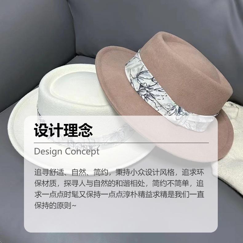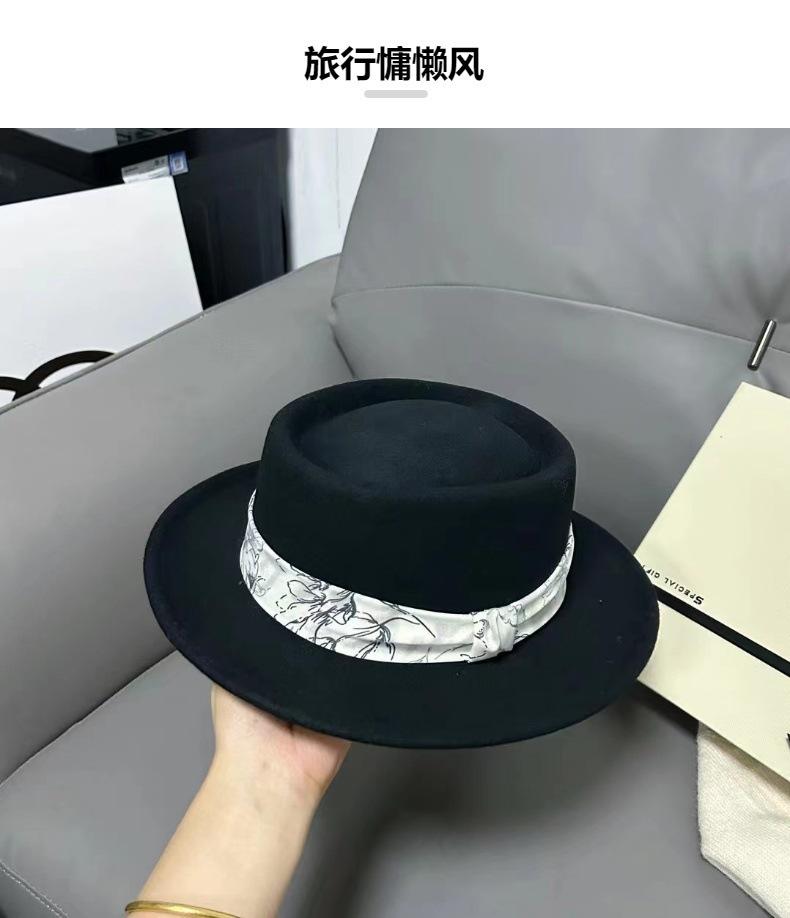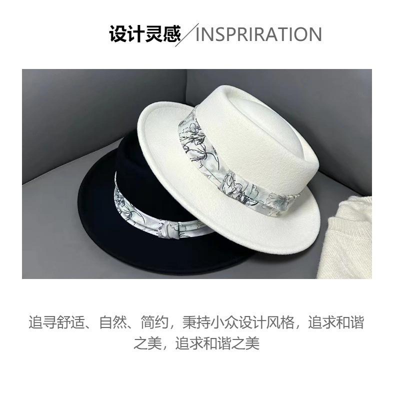 Sombrero de copa cóncavo de lana británica para mujer, otoño e invierno, estilo europeo y americano, con patrón de moda que combina con todo, sombrero de jazz retro con cinta, tendencia
