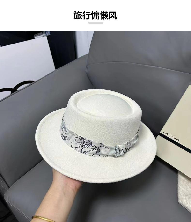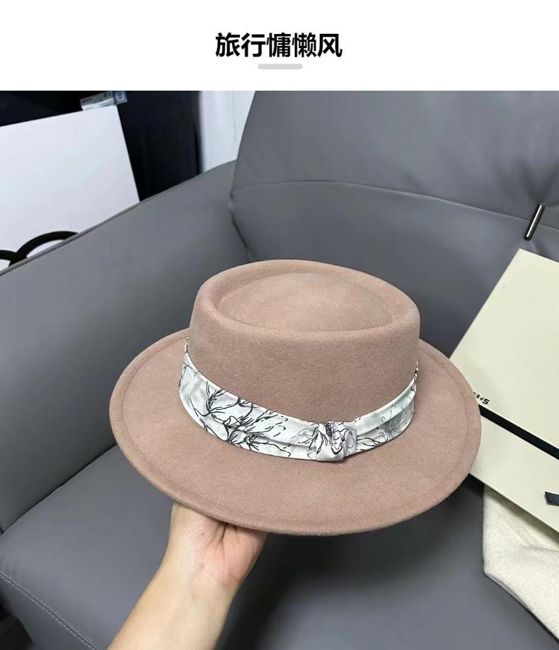 Gorro cóncavo de lana británica para mujer, otoño e invierno, estilo europeo y americano, con estampado de moda que combina con todo, cinta, sombrero de jazz retro, tendencia