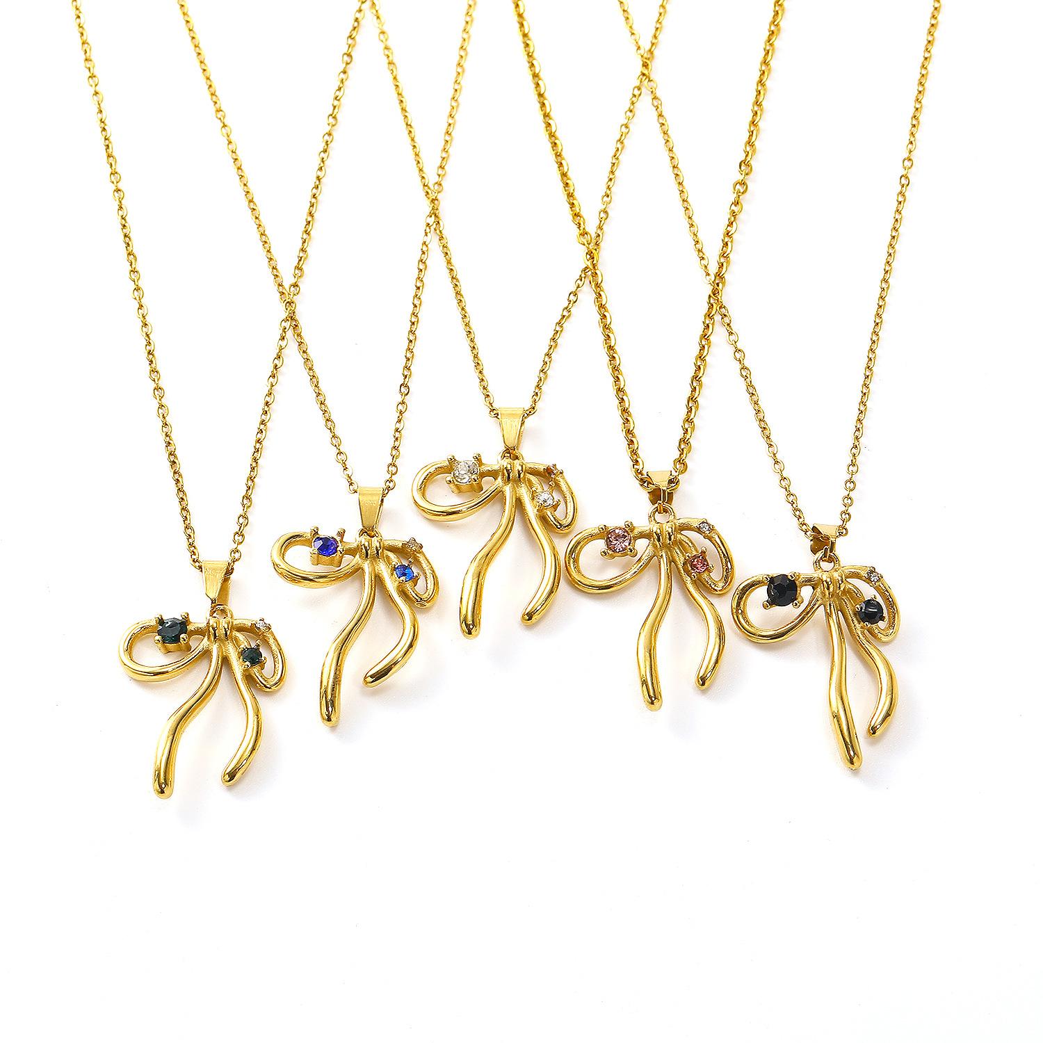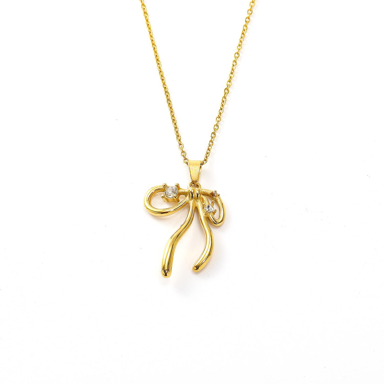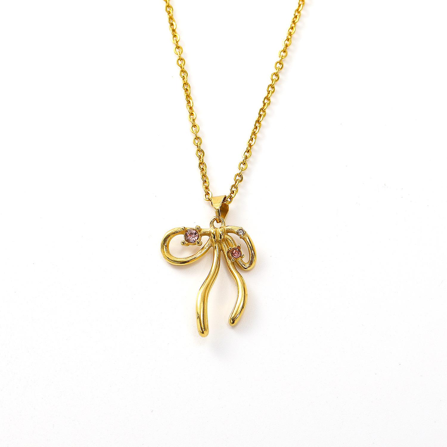 Collar de lazo de diamantes de imitación de alta calidad creativo transfronterizo de Europa y Estados Unidos, colgante dulce de acero inoxidable chapado en oro de 18 quilates para mujer, venta directa