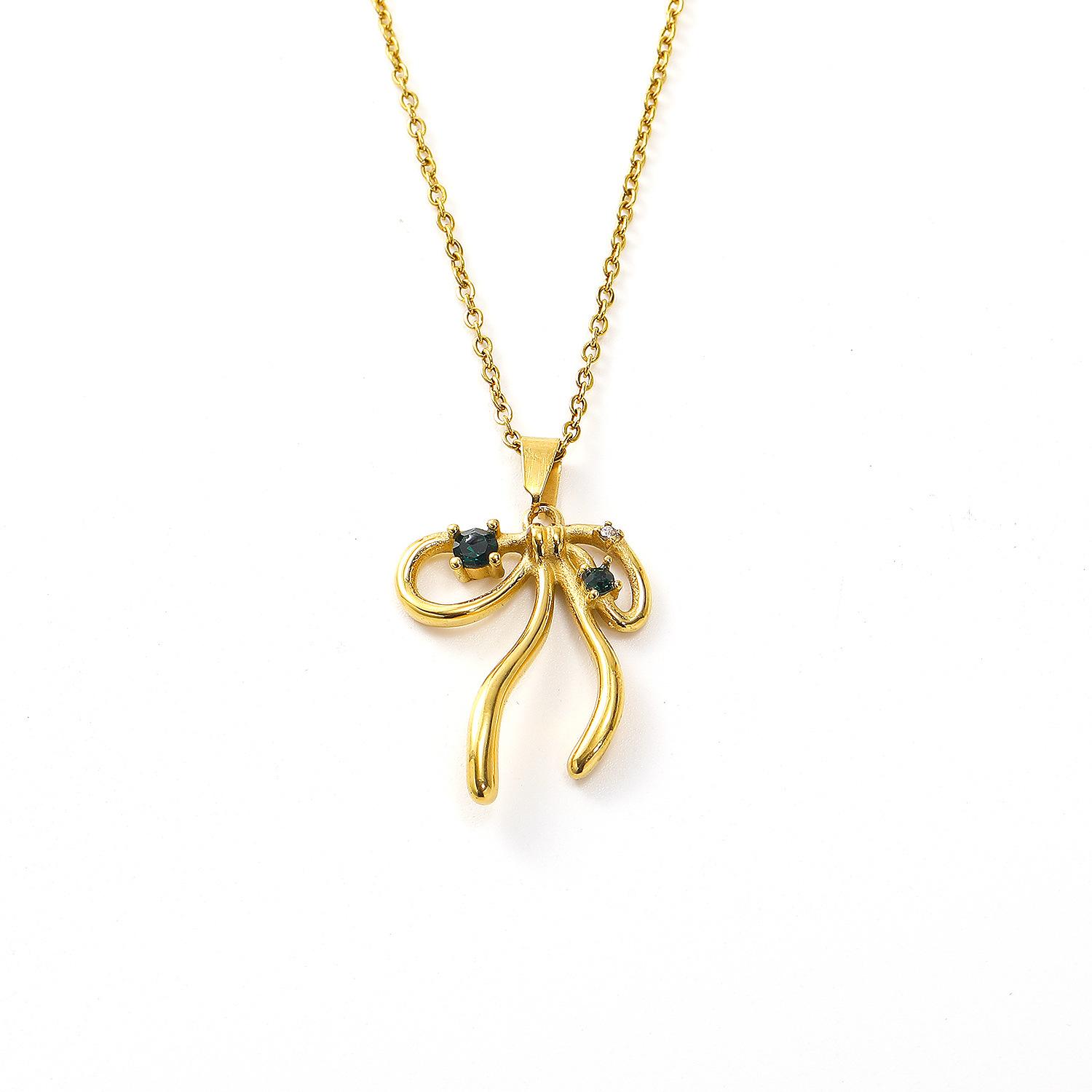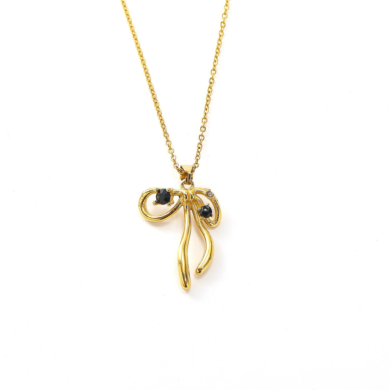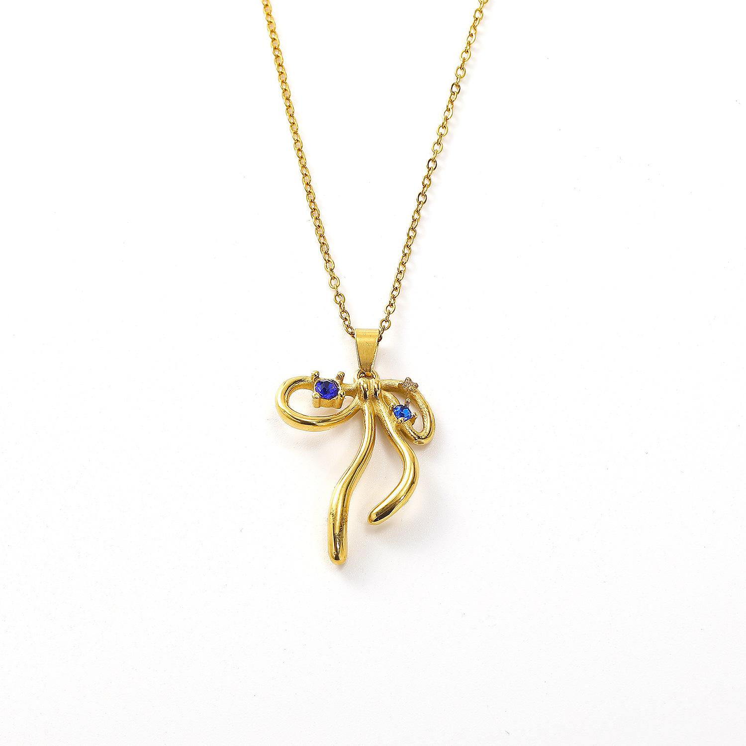 Collar de lazo de diamantes de imitación de alta calidad creativo transfronterizo de Europa y Estados Unidos, colgante dulce de acero inoxidable chapado en oro de 18 quilates para mujer, venta directa
