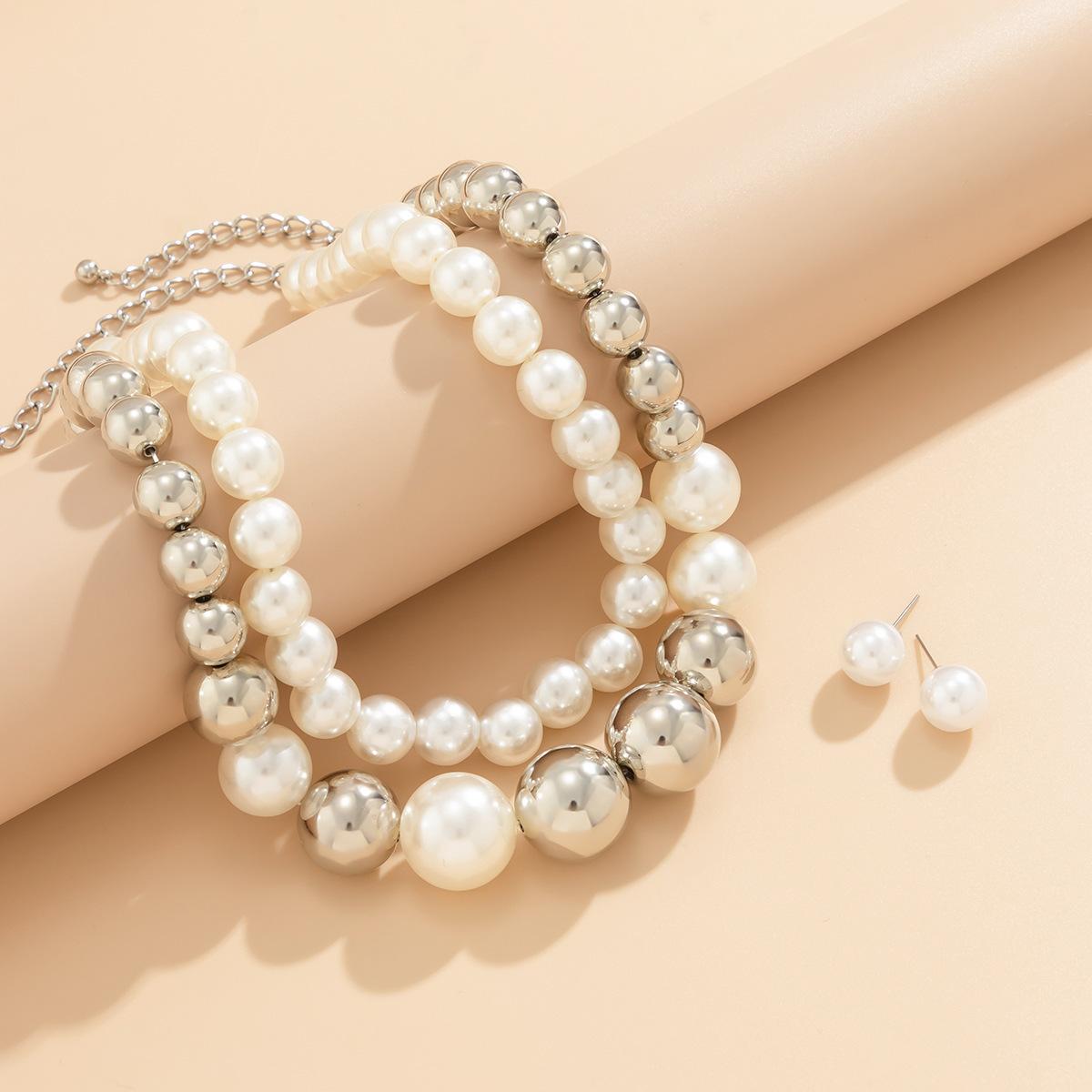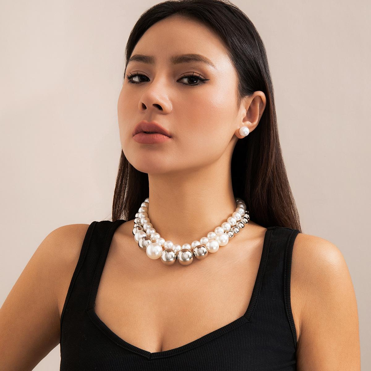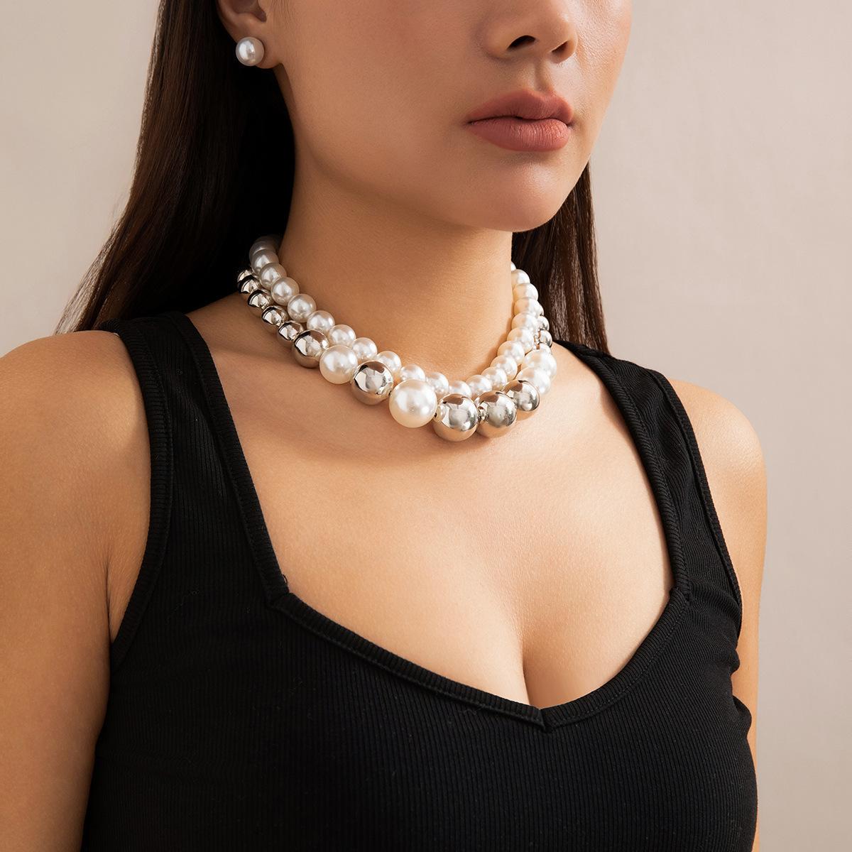 Gargantilla corta de moda con cuentas grandes exageradas, joyería transfronteriza europea y americana, collar de perlas de imitación con temperamento punk