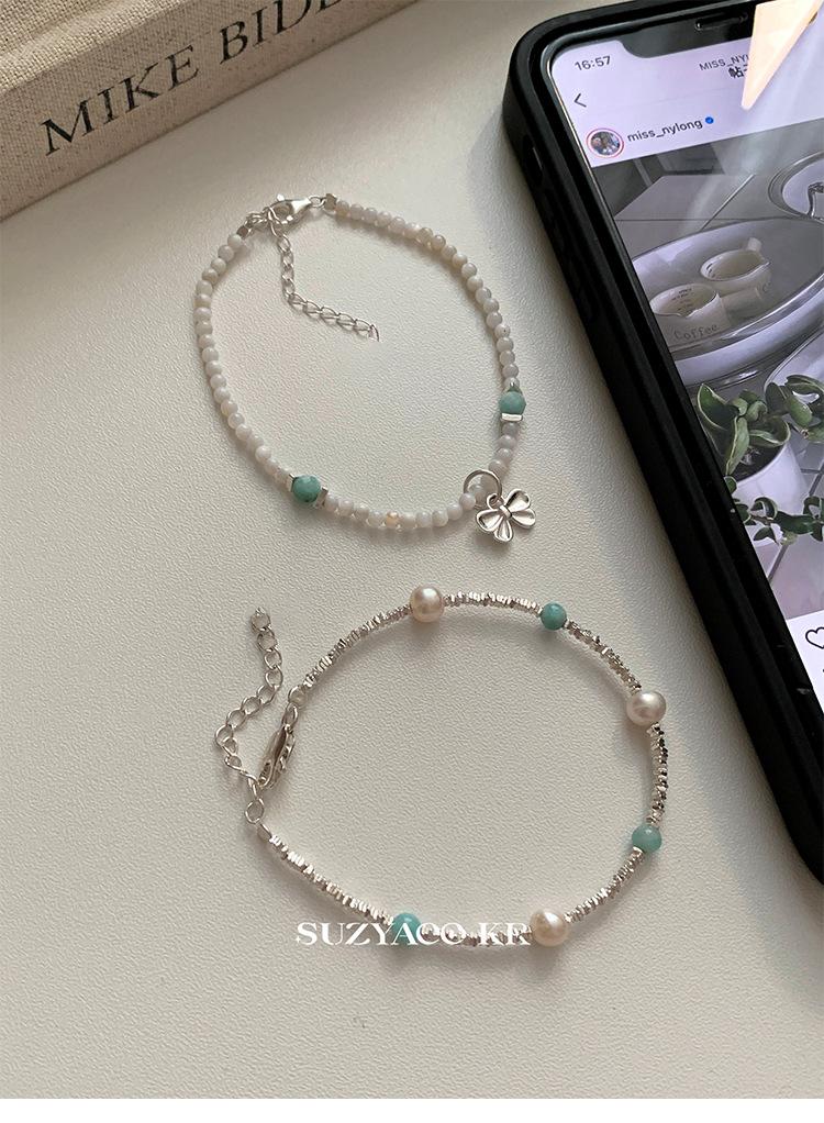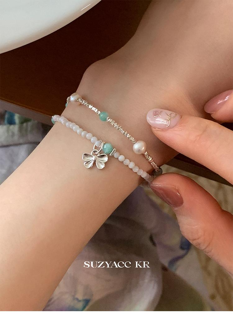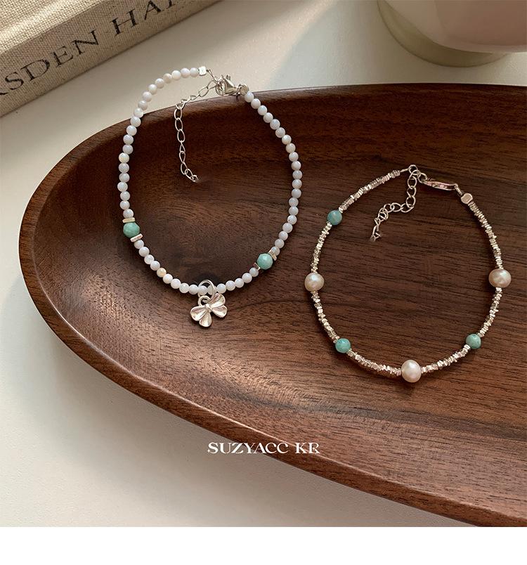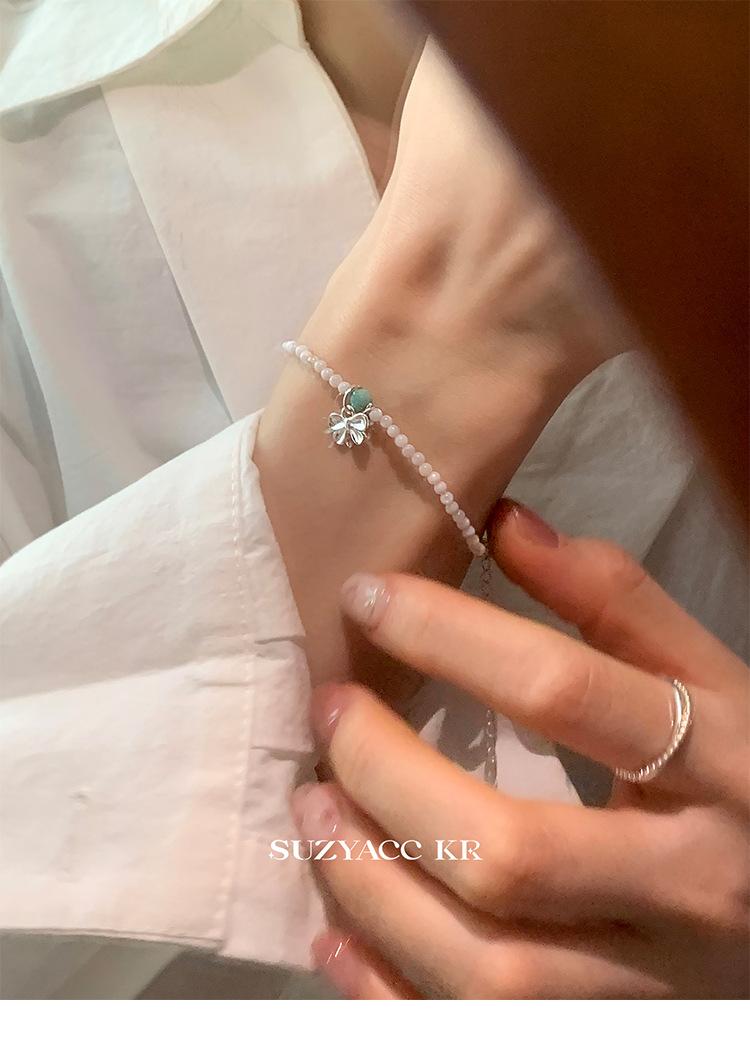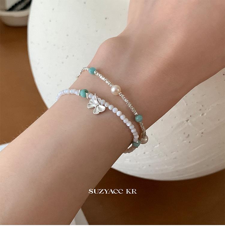 Pulsera de Plata con Cuentas Verdes Super Blancas Pulsera Nicho de Lujo Ligero Avanzado Pulsera de Lujo Ligero para Novias Pulsera 2024