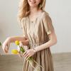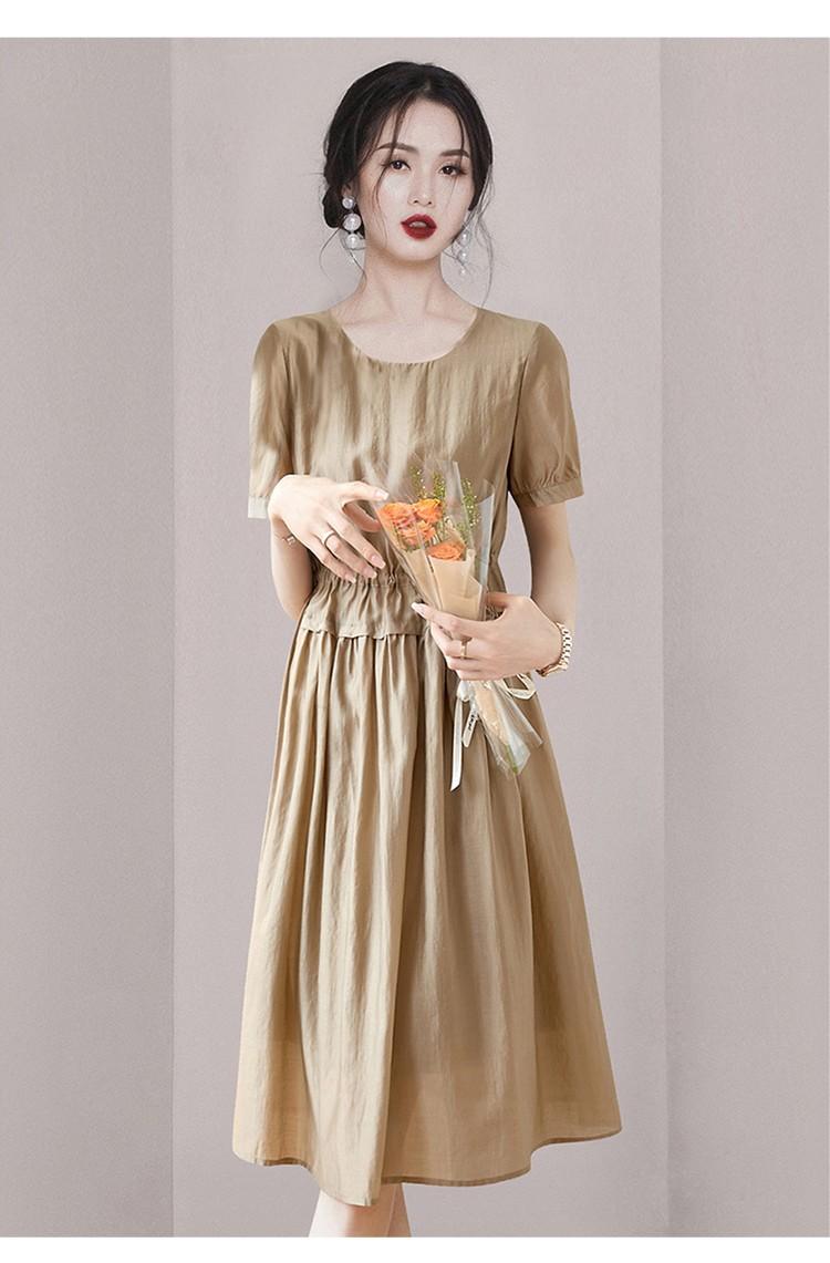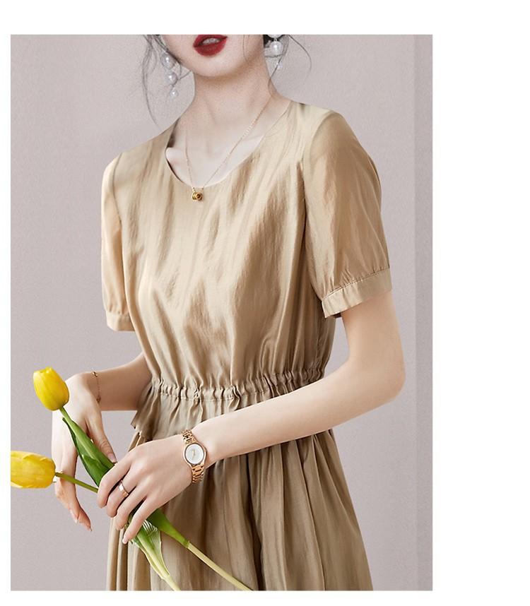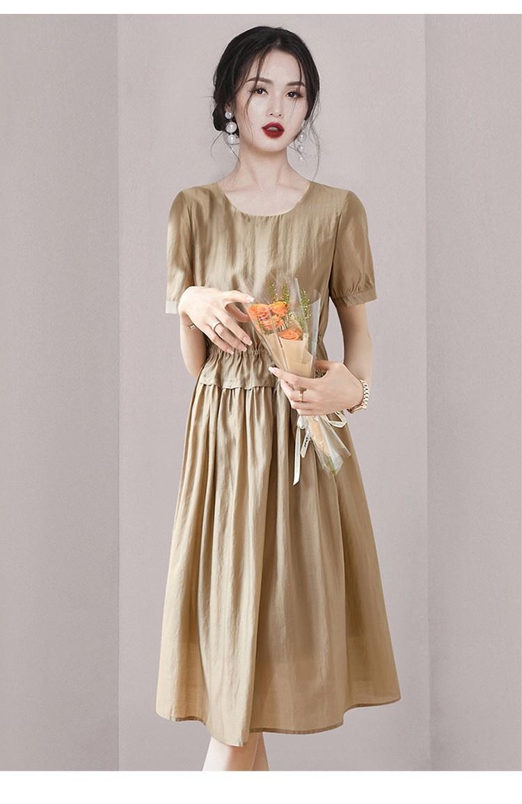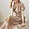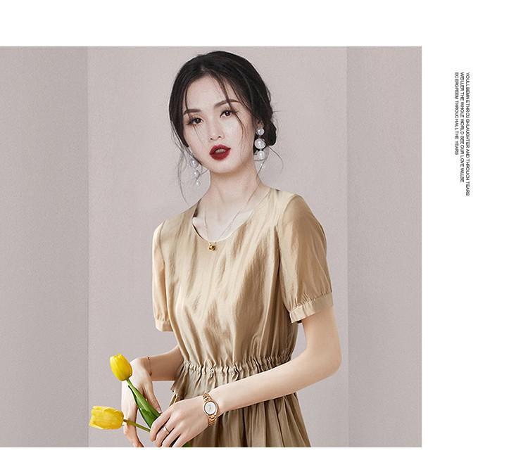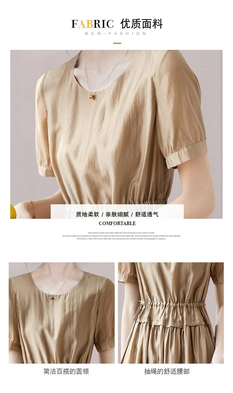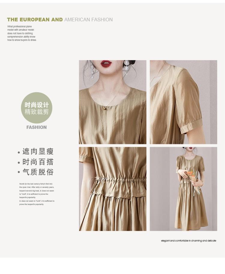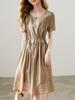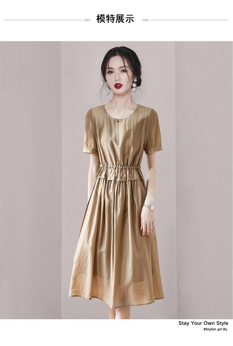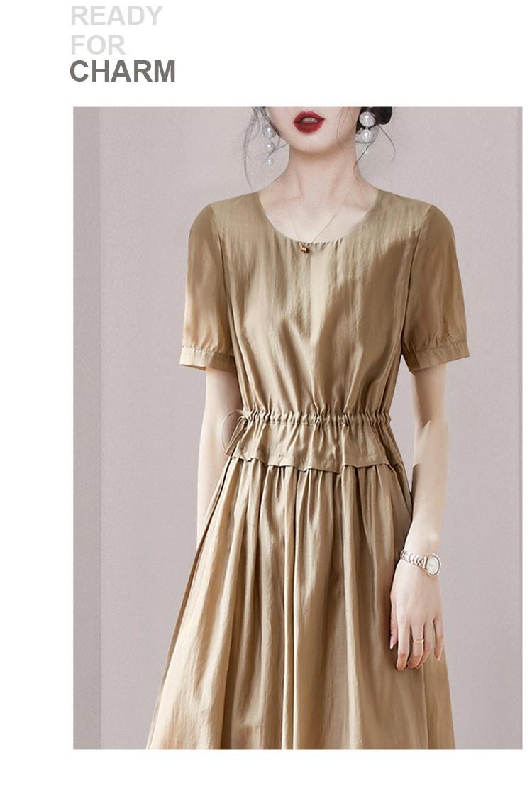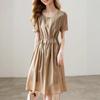 Vestido Yujie Style Transfronterizo 2025 Verano Nuevo Estilo Francés Nicho Elegante Cuello Redondo Manga Corta Cintura Adelgazante Look