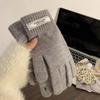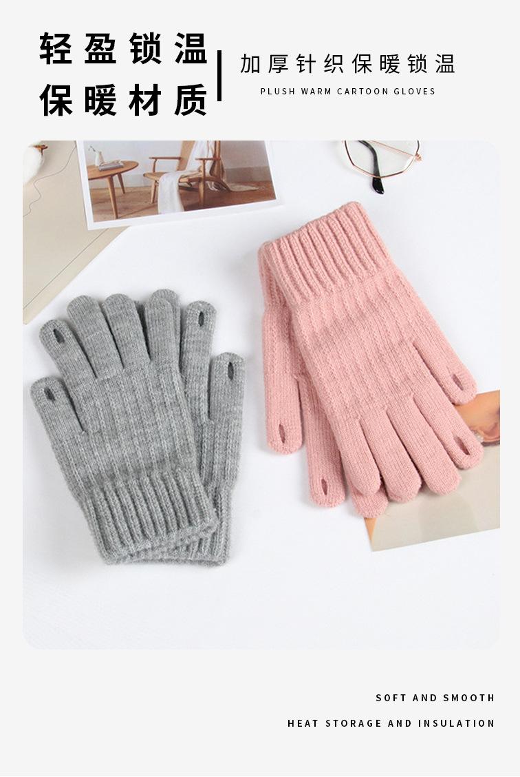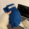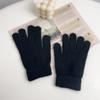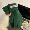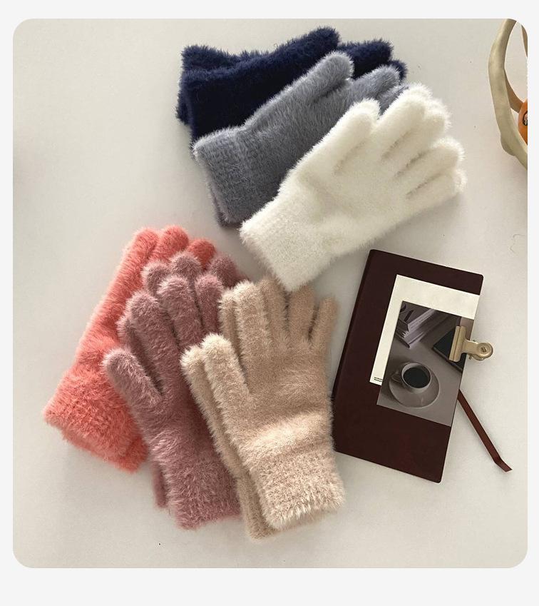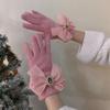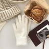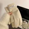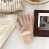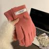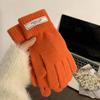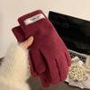 Guantes de Invierno Estilo K Nicho Simple Color Puro Corazón de Chica Dulce Cálidos con Forro Polar Cálido Divididos de Cinco Dedos para Mujer