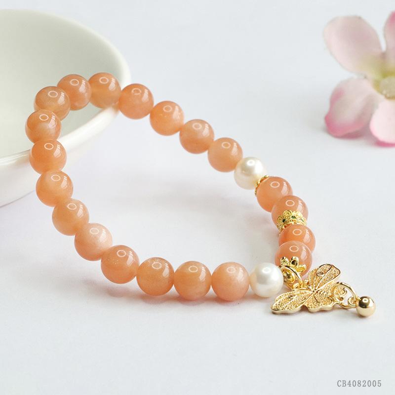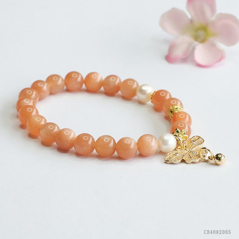 Pulsera Yuyu de Cristal Natural Luz de Luna Naranja Mariposa Pulsera de Piedra Solar para Mujer Venta al por Mayor de Fábrica CB4082005