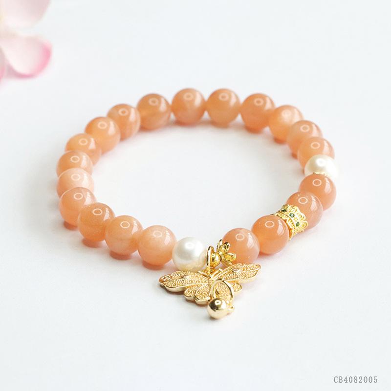 Orange moonlight freshwater pearl butterfly bracelet (cb4082005)
