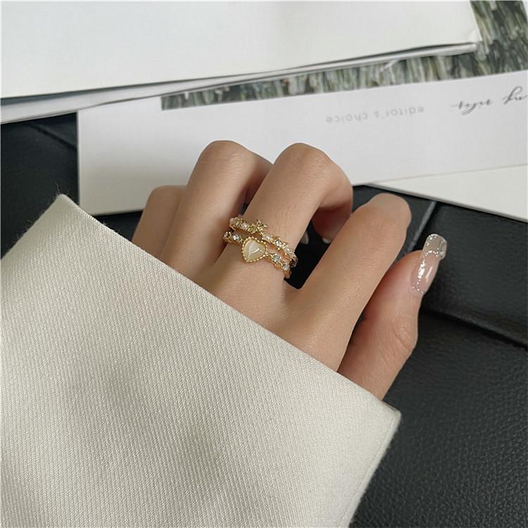 Anillo Abierto Ojo de Gato de Amor de Doble Capa para Mujer Diseño Dulce Nicho Anillo de Dedo de Alta Gama Anillo Ajustable