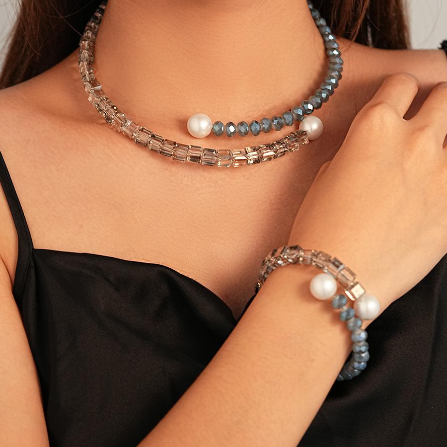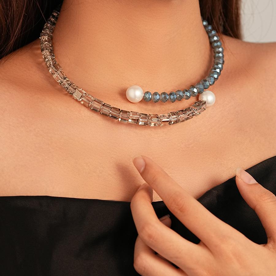 Collar Vintage de Perlas de Imitación de Vidrio Artificial, Costuras Geométricas, Moda Simple de Nicho Elegante de Alta Gama para Mujeres