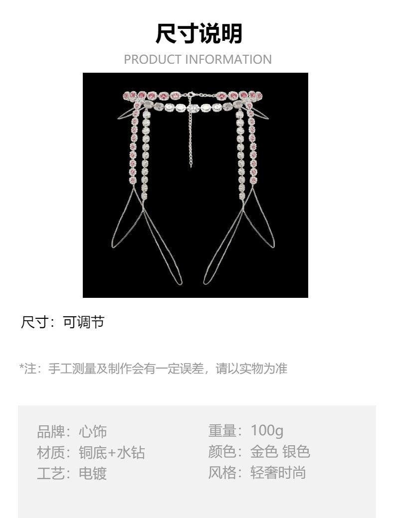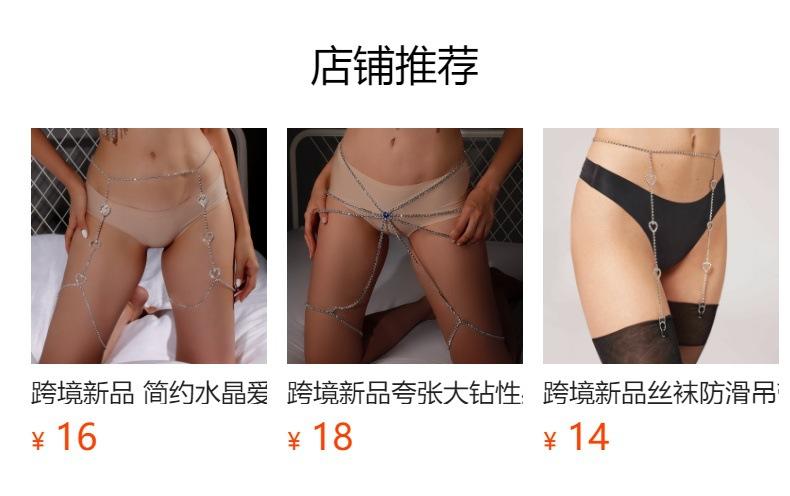 Cadena para pierna con diamantes de imitación multicapa de AliExpress, nueva cadena sexy para bikini de verano, accesorios europeos y americanos.