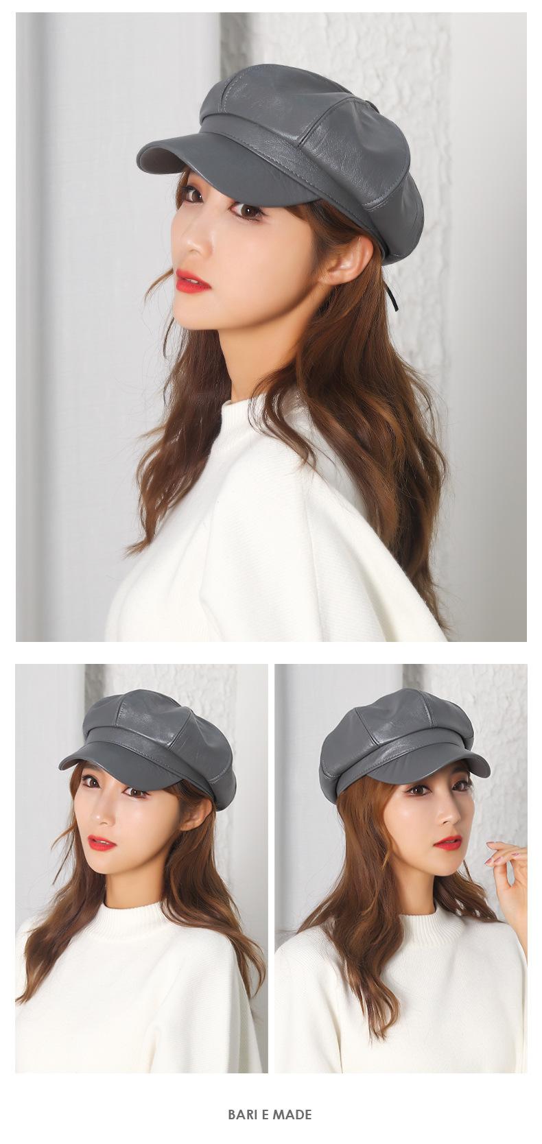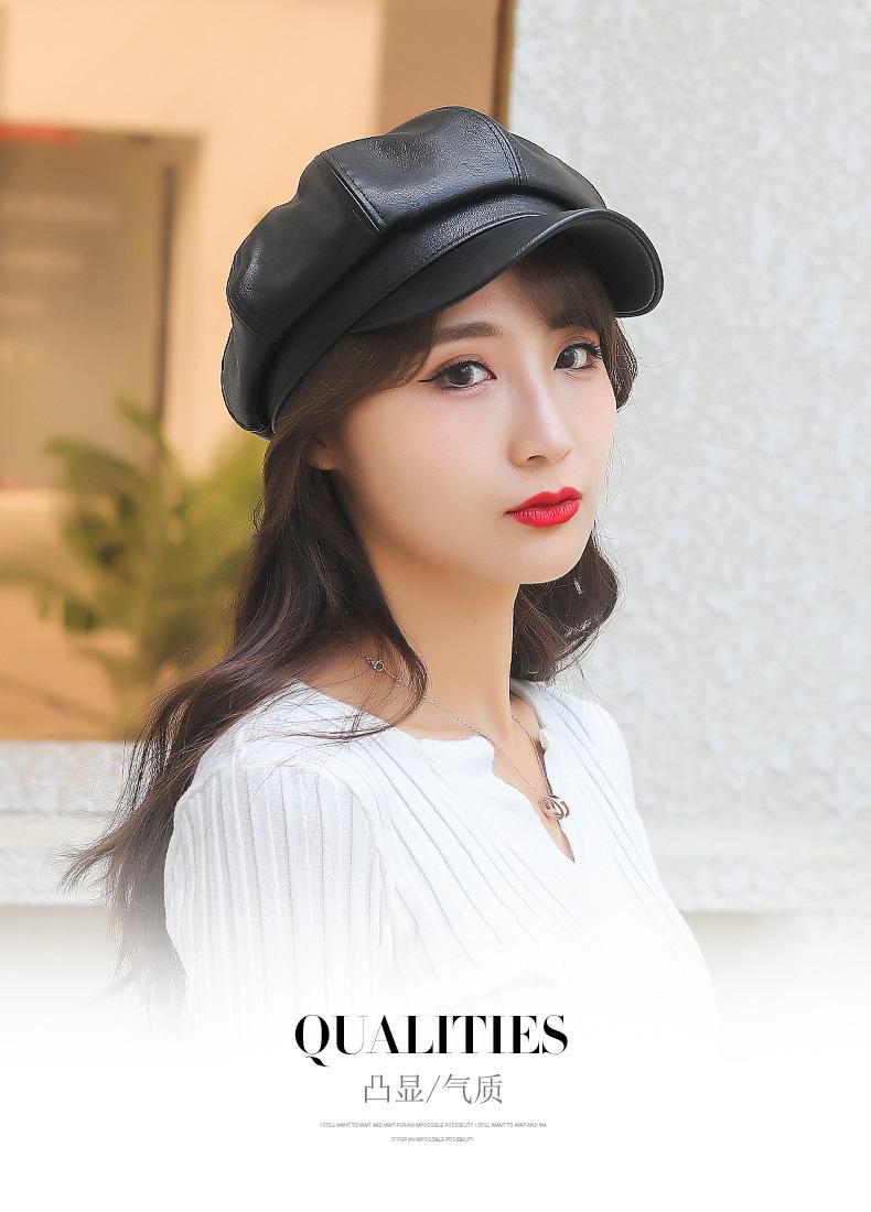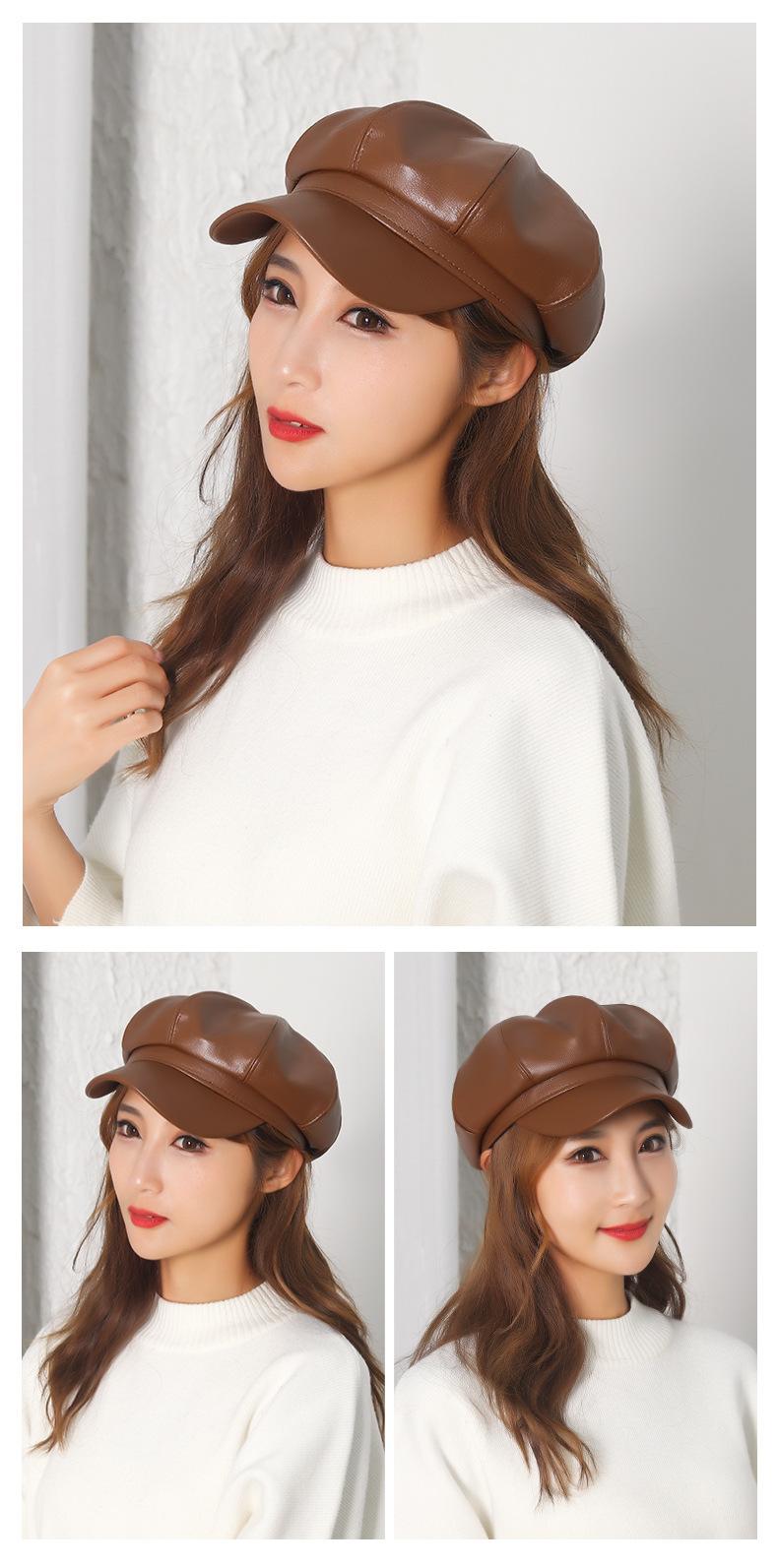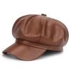 Boina retro de otoño e invierno para mujer, de piel sintética, color puro, versátil, estilo pintor, estilo K, popular, octogonal, para primavera