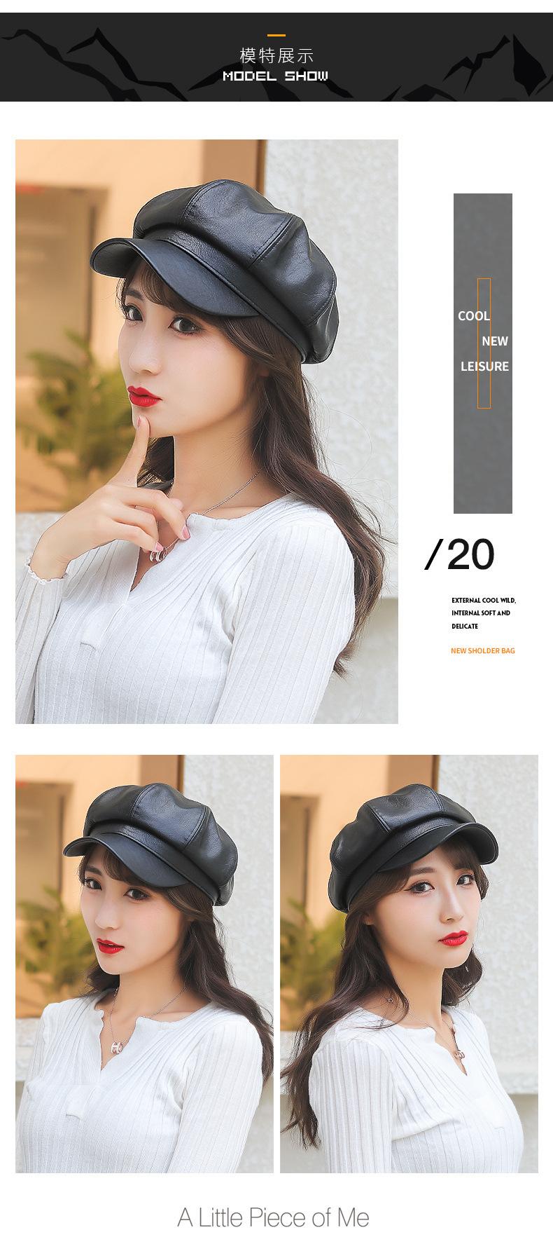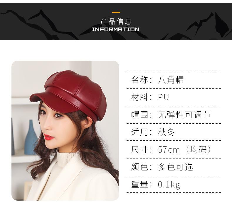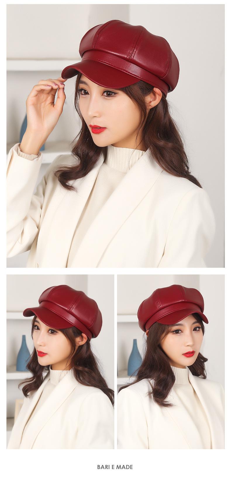 Boina retro de otoño e invierno para mujer, de piel sintética, color puro, versátil, estilo pintor, estilo K, popular, octogonal, para primavera
