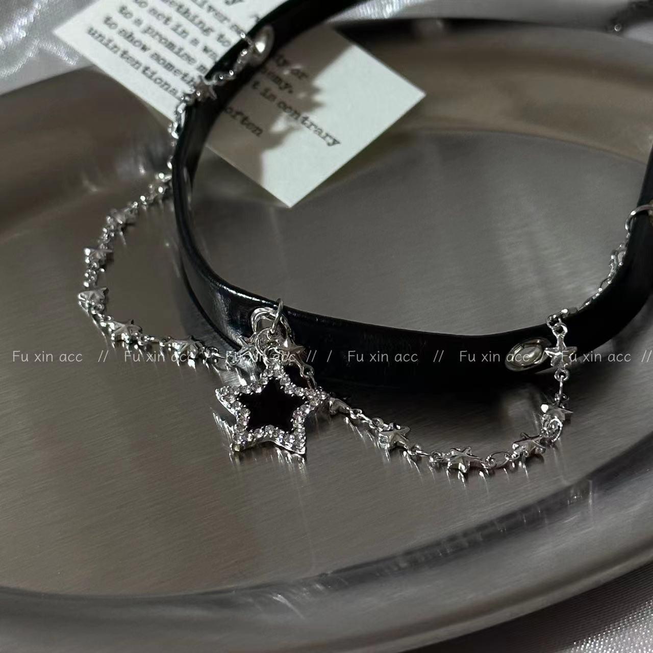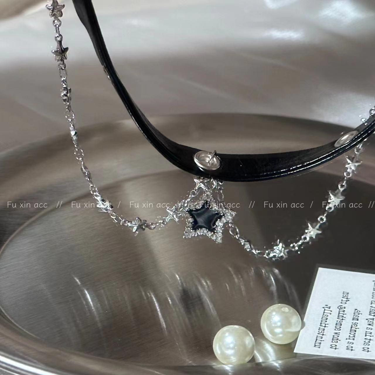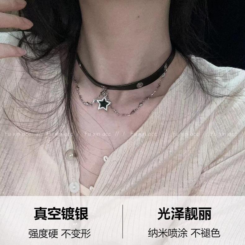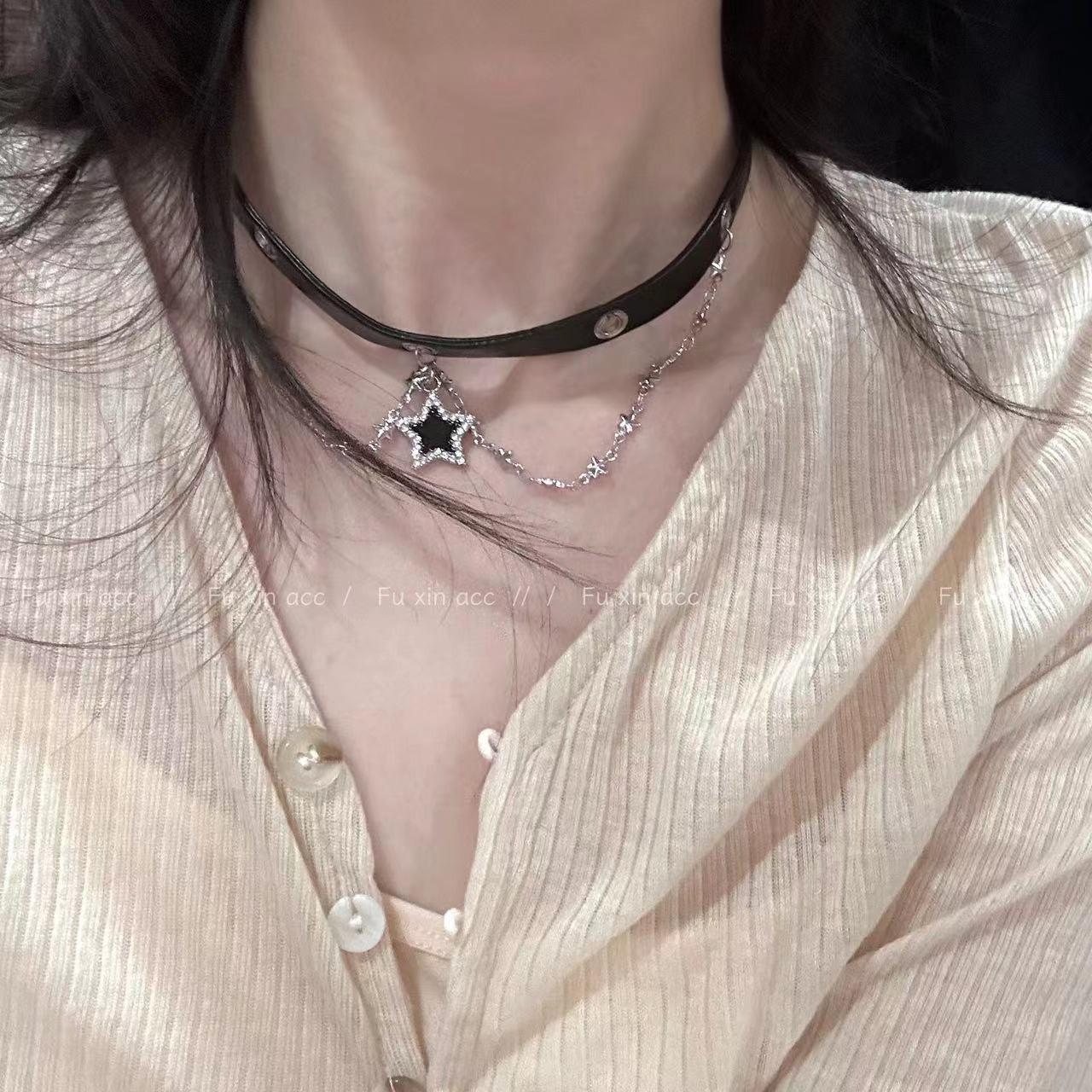 Fu Xin Nuevo Collar Choker Negro con Borla de Estrella para Mujer Nicho Lujo Ligero Alta Gama Dulce Cool Cadena Especiada