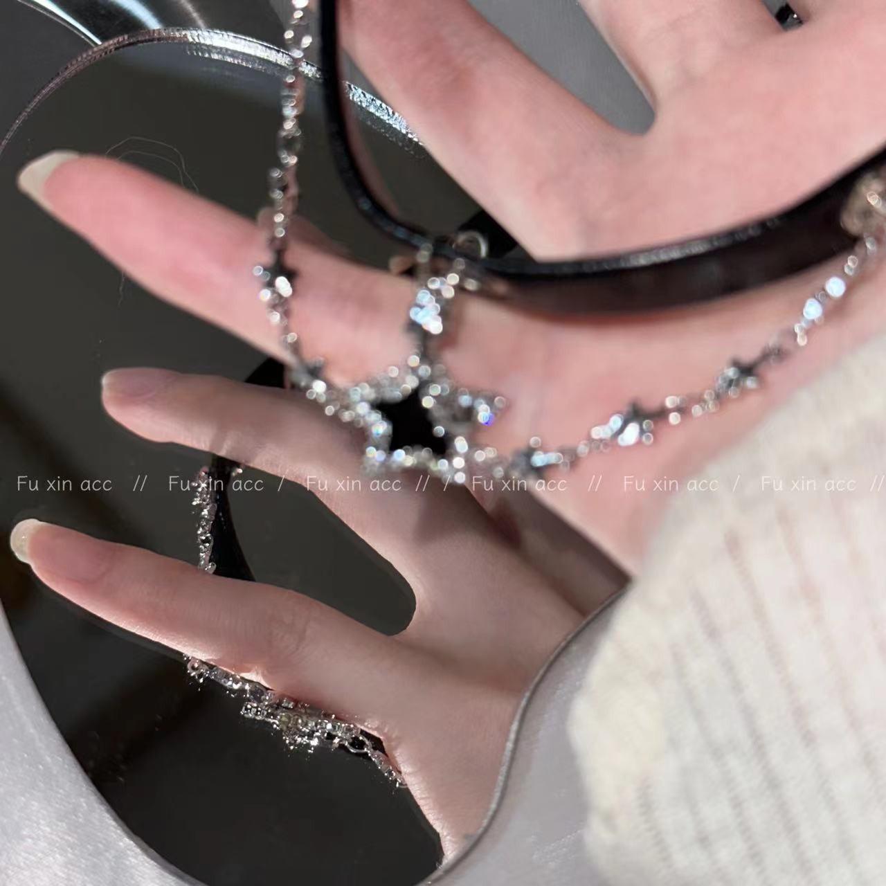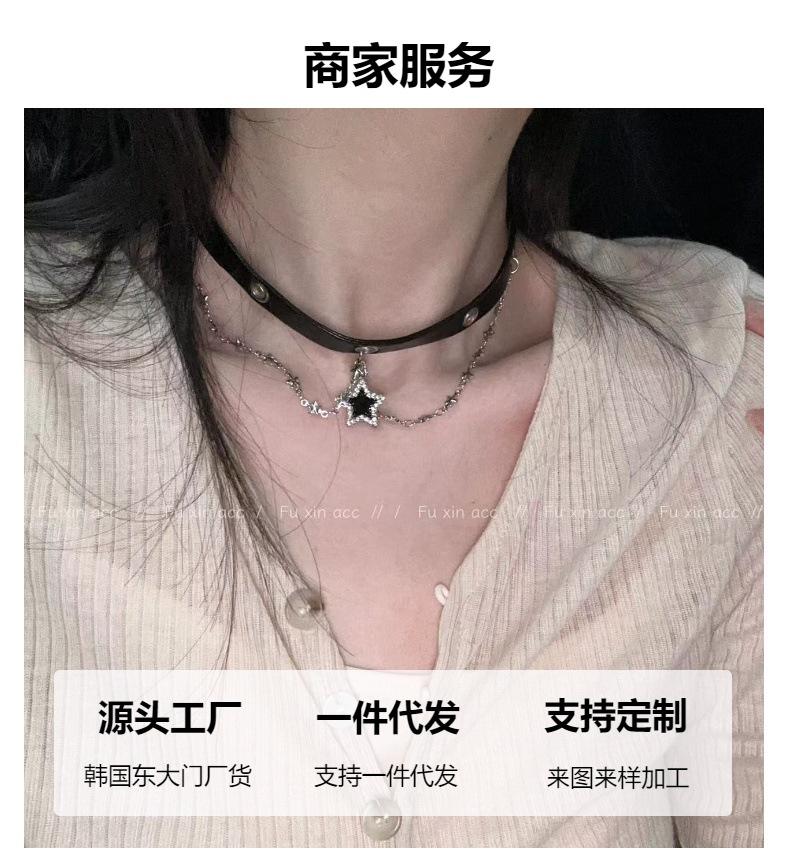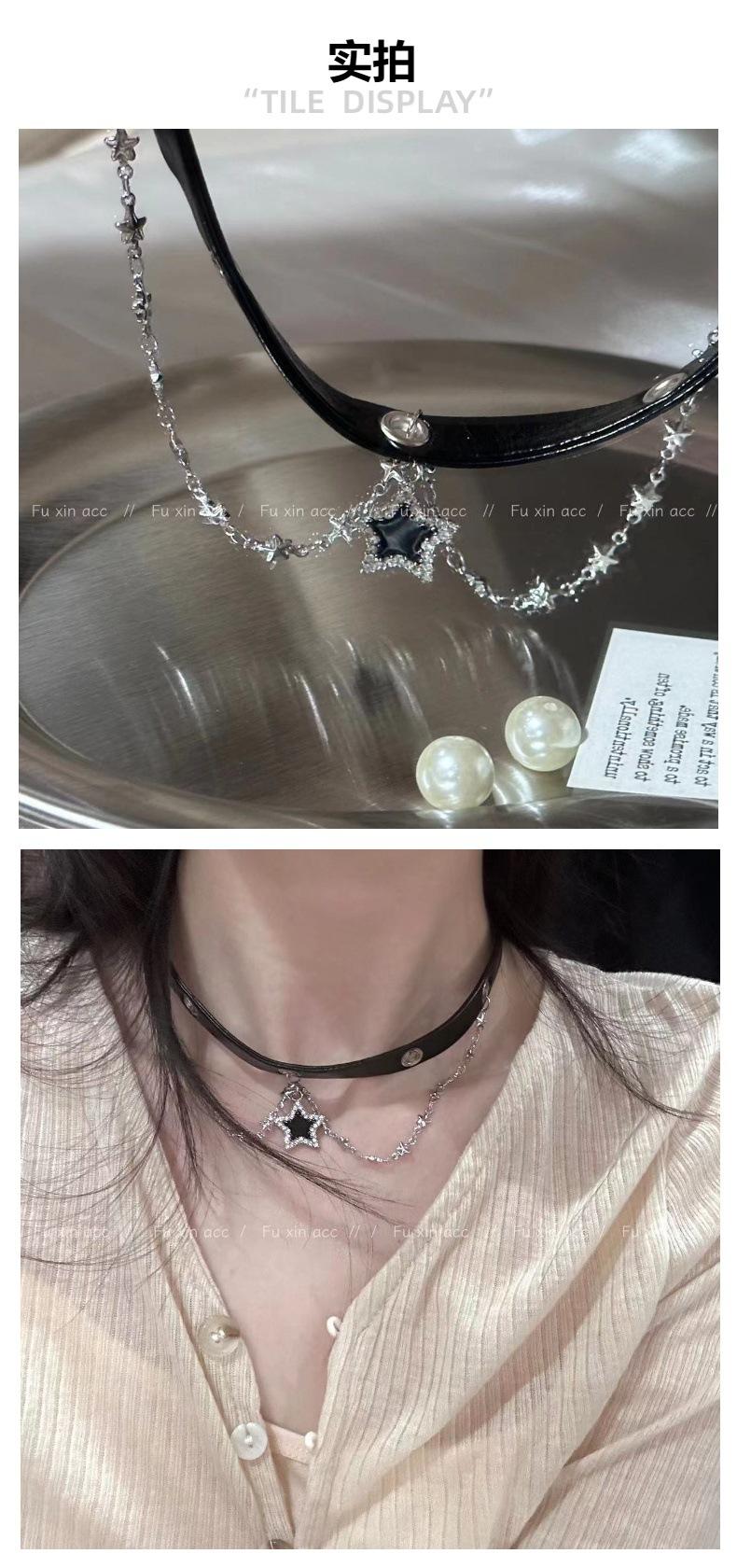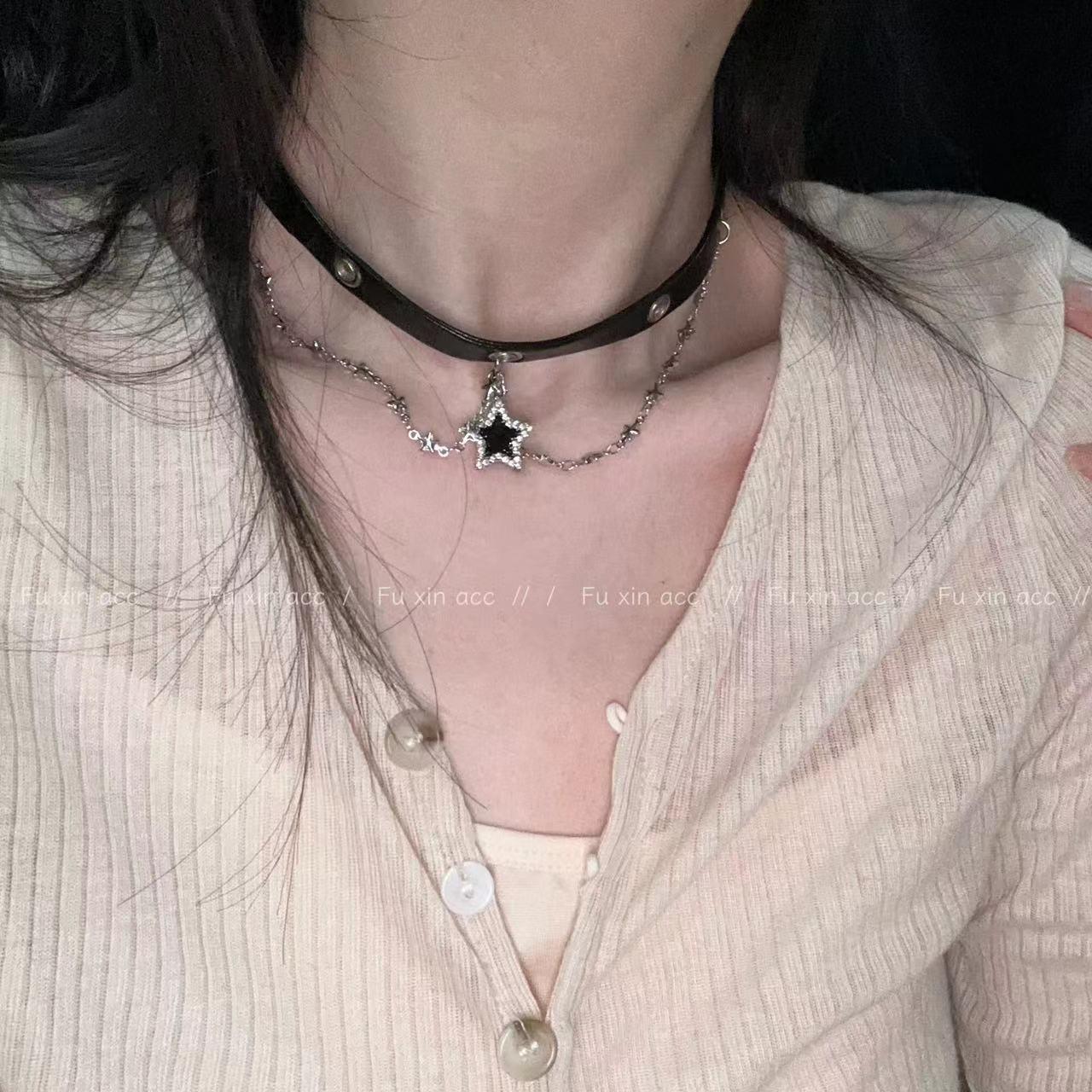 Fu Xin Nuevo Collar Choker Negro con Borla de Estrella para Mujer Nicho Lujo Ligero Alta Gama Dulce Cool Cadena Especiada