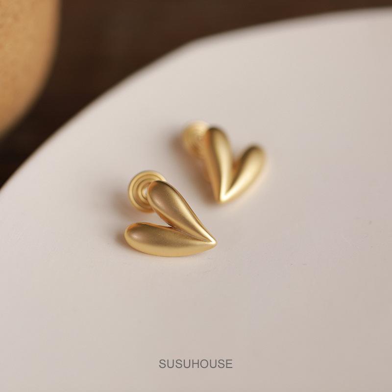 Amor Retro arete de clip para la oreja de espiral antimosquitos aretes de oro mate sin perforación clip para la oreja femenina aretes para la oreja Alto sentido otoño e invierno Nuevo