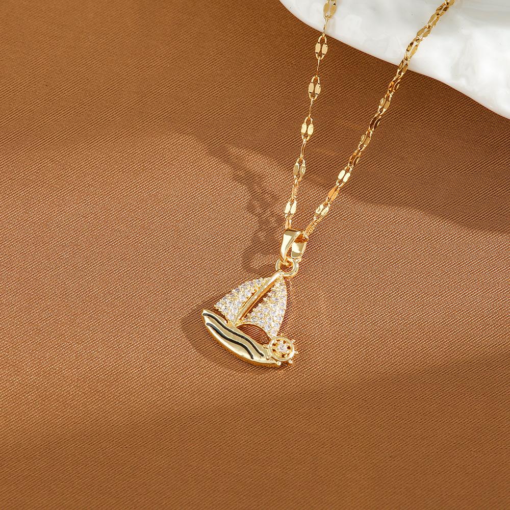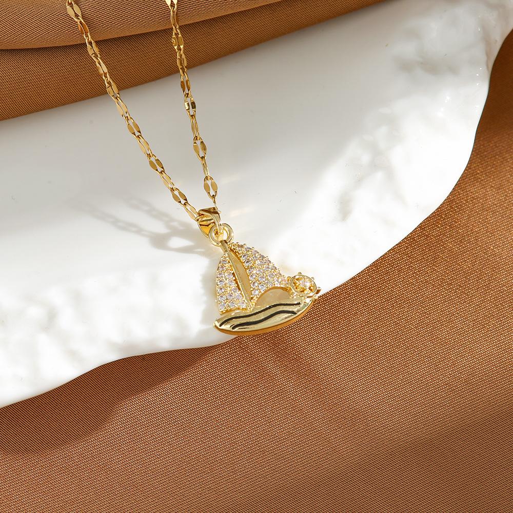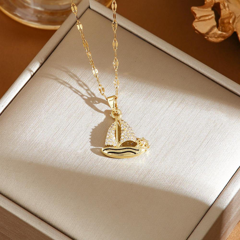 Collar para mujer, diseño original, circonita, pequeño velero, cadena de clavícula japonesa y coreana sencilla, joyería de estilo Ins al por mayor.