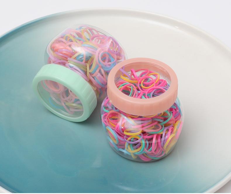 Versión coreana de liga desechable de alta elasticidad de tracción fuerte continua enlatada para niños, anillo de goma de alta elasticidad, liga para el cabello, red roja, cuerda para el cabello