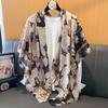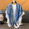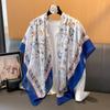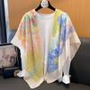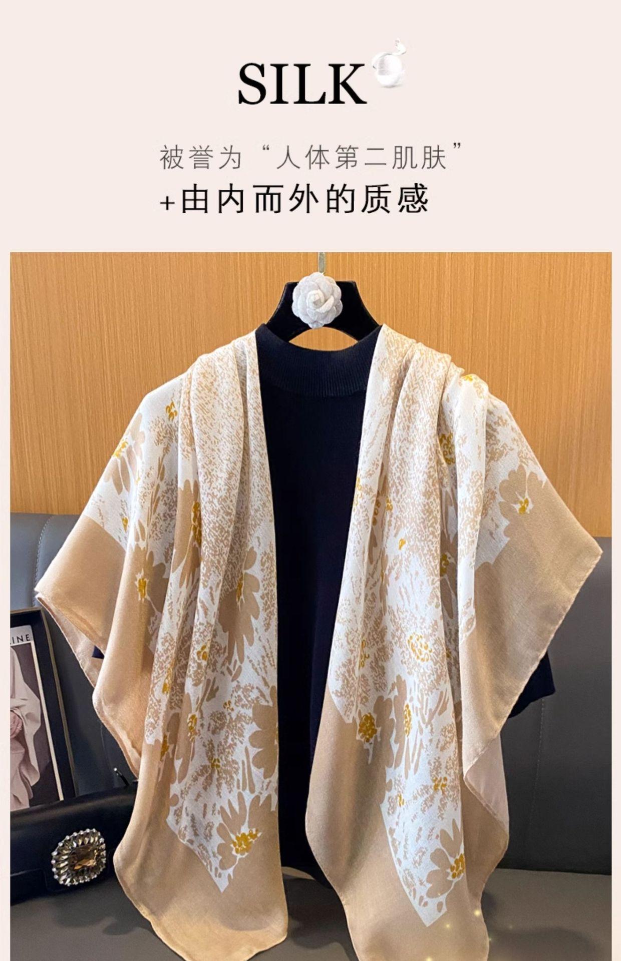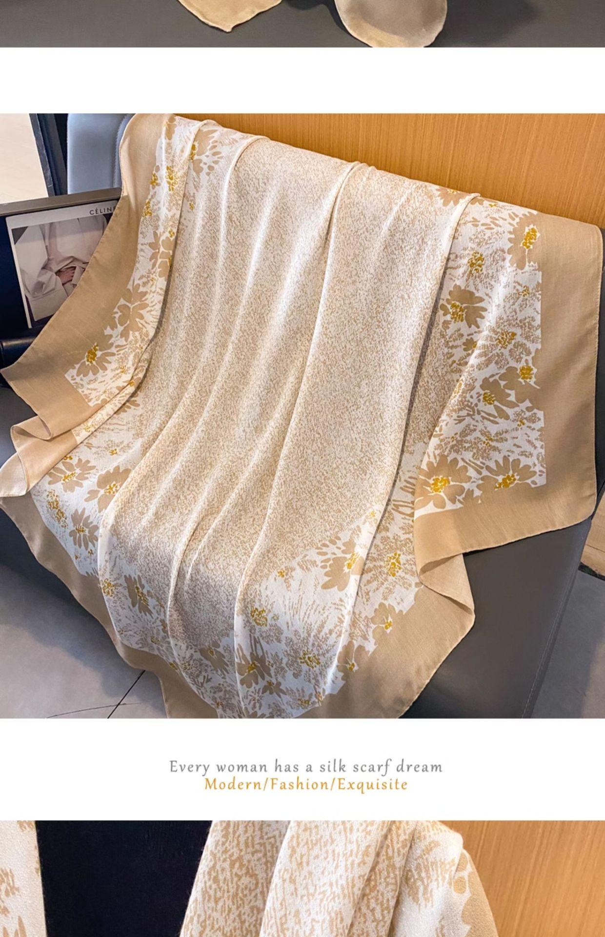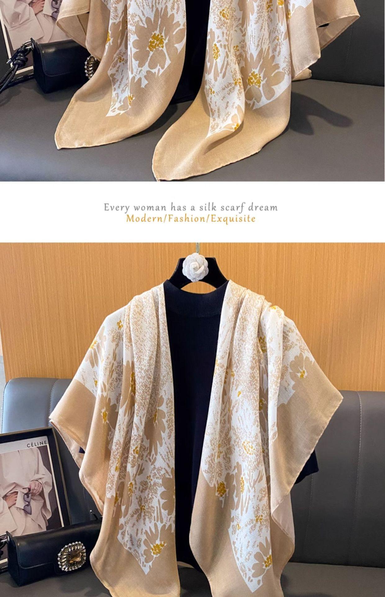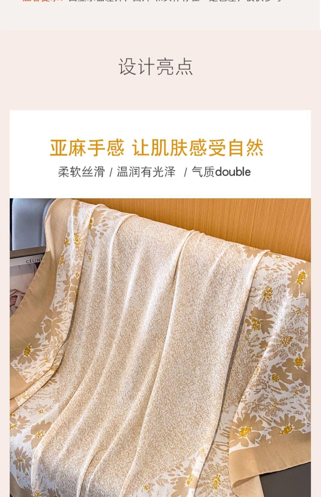 Bufanda de lino y algodón cuadrada grande con diseño floral, estilo fresco y pequeño, para mujer, fina, combinable con todo, ideal para habitaciones con aire acondicionado.