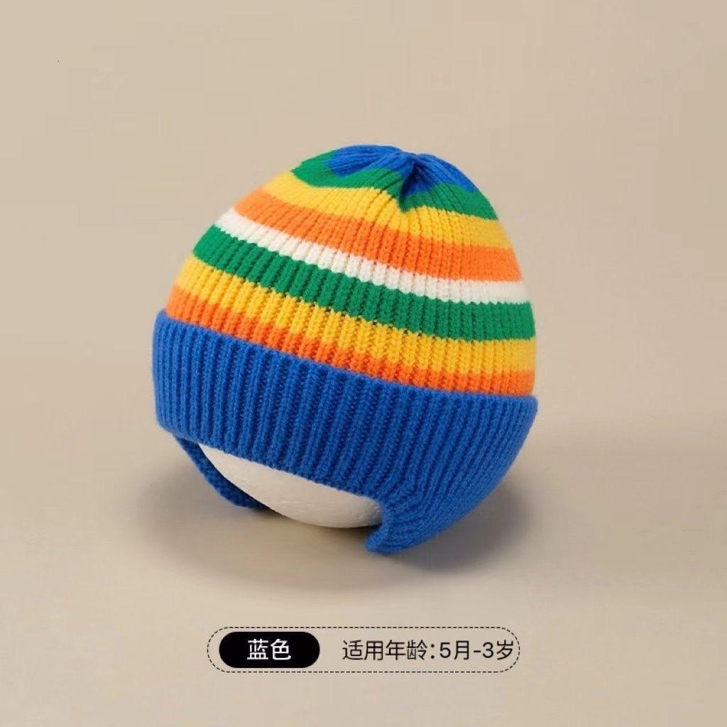 Sombrero para niños Otoño e Invierno Tesoro para hombres y mujeres Sombrero de punto cálido Sombrero de lana a rayas de colores Sombrero con protección para las orejas para niños y niñas