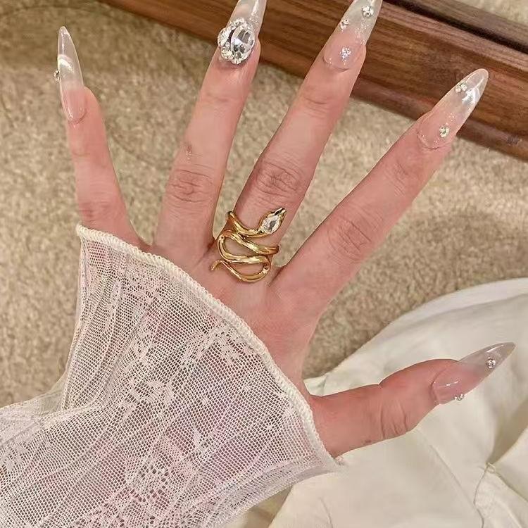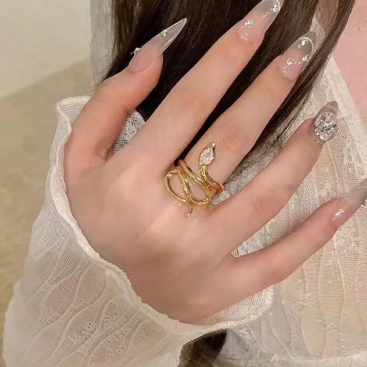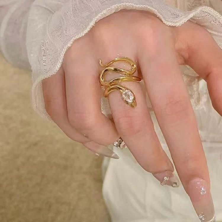 Anillo Serpiente Dorada Enrollada de la Edad Media Anillo de Cola Diseño Único Nicho para Mujer Anillo Serpiente Personalidad Sentido Avanzado Anillo Joyería