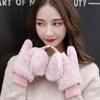 Guantes de invierno para mujer, lindos guantes de felpa gruesos para estudiantes, de medio dedo, abiertos, estilo coreano, forrados con vellón para otoño e invierno, cálidos y anticongelantes para ciclismo.