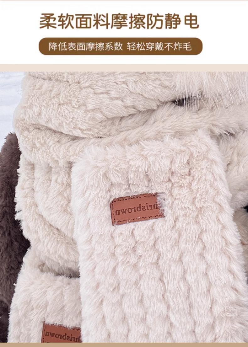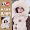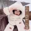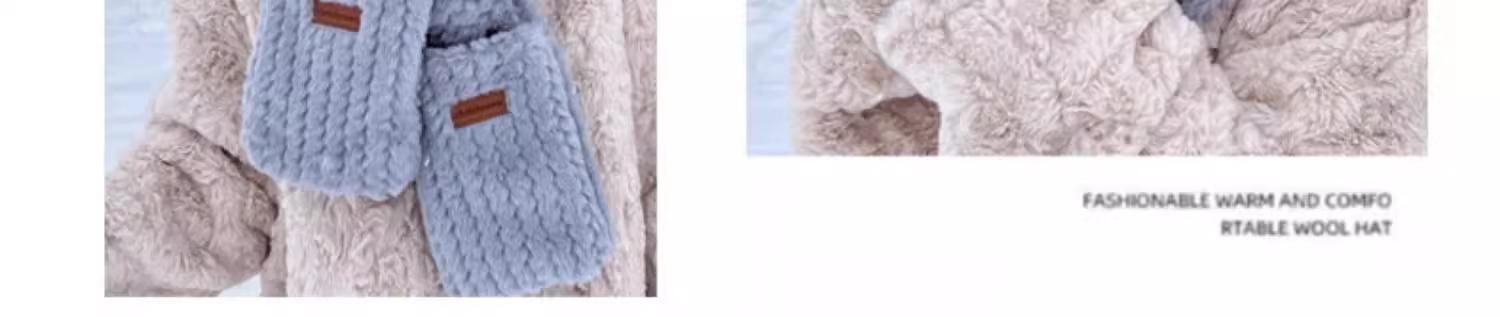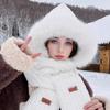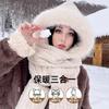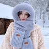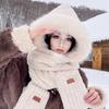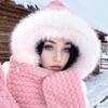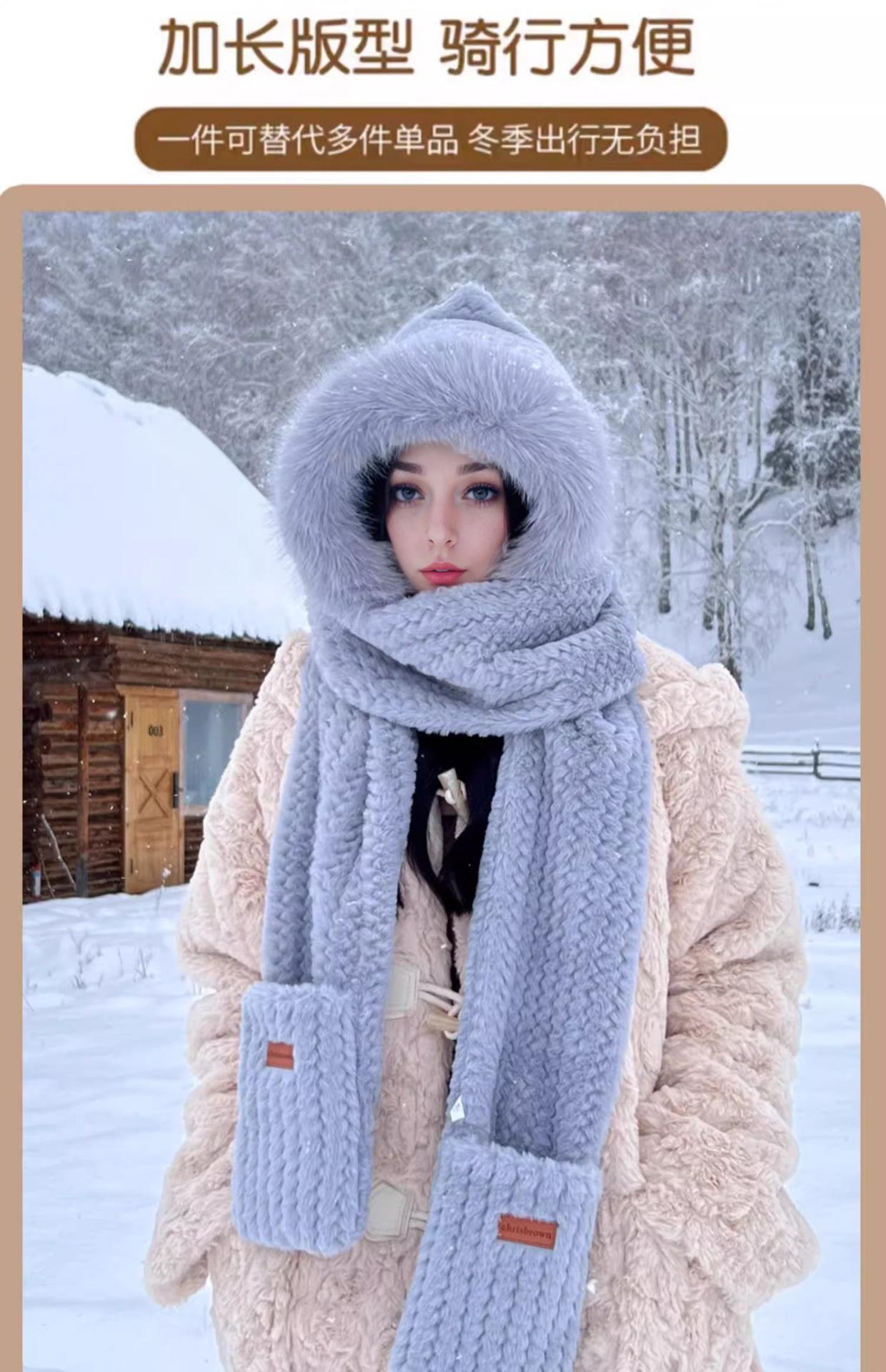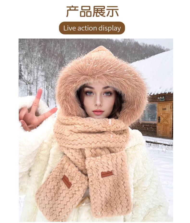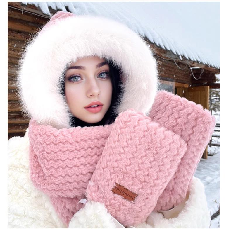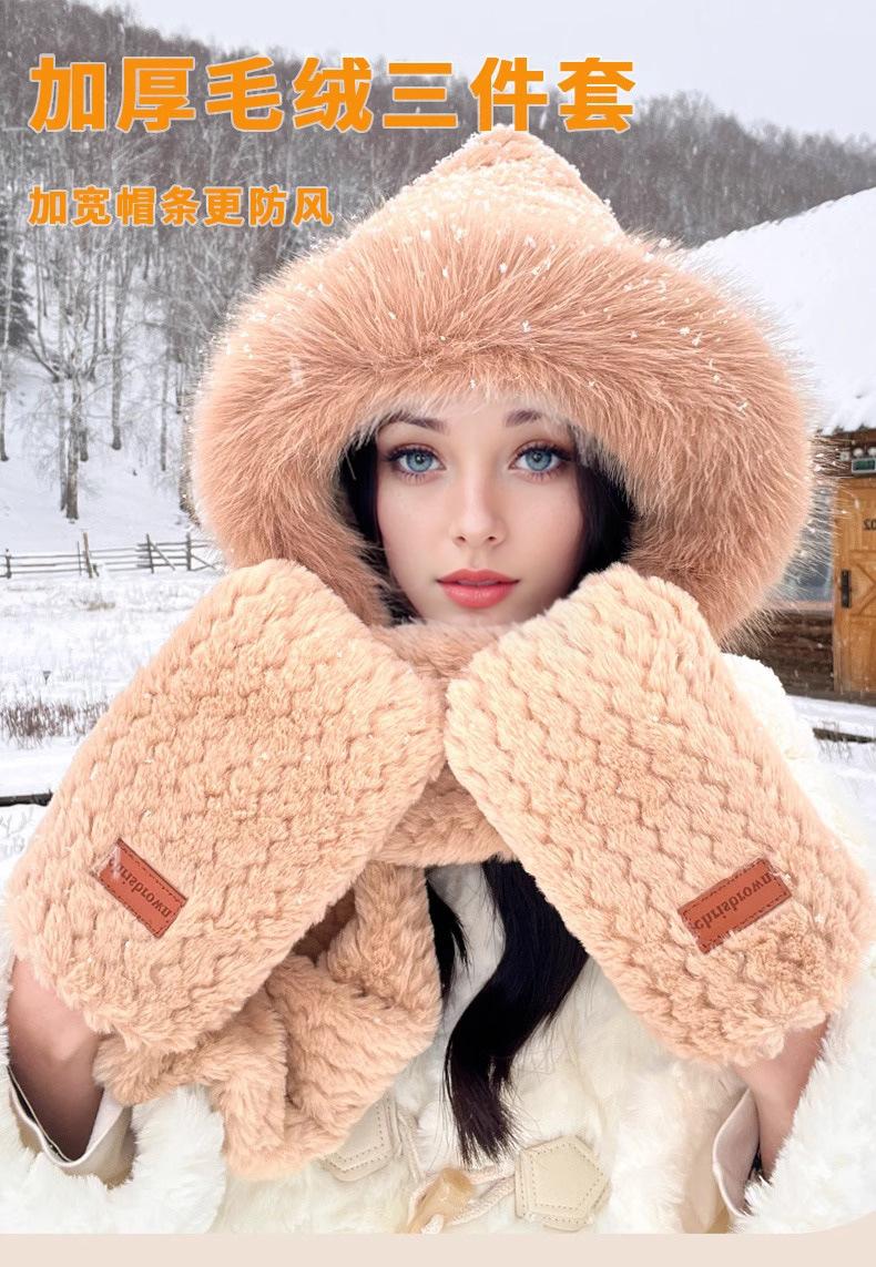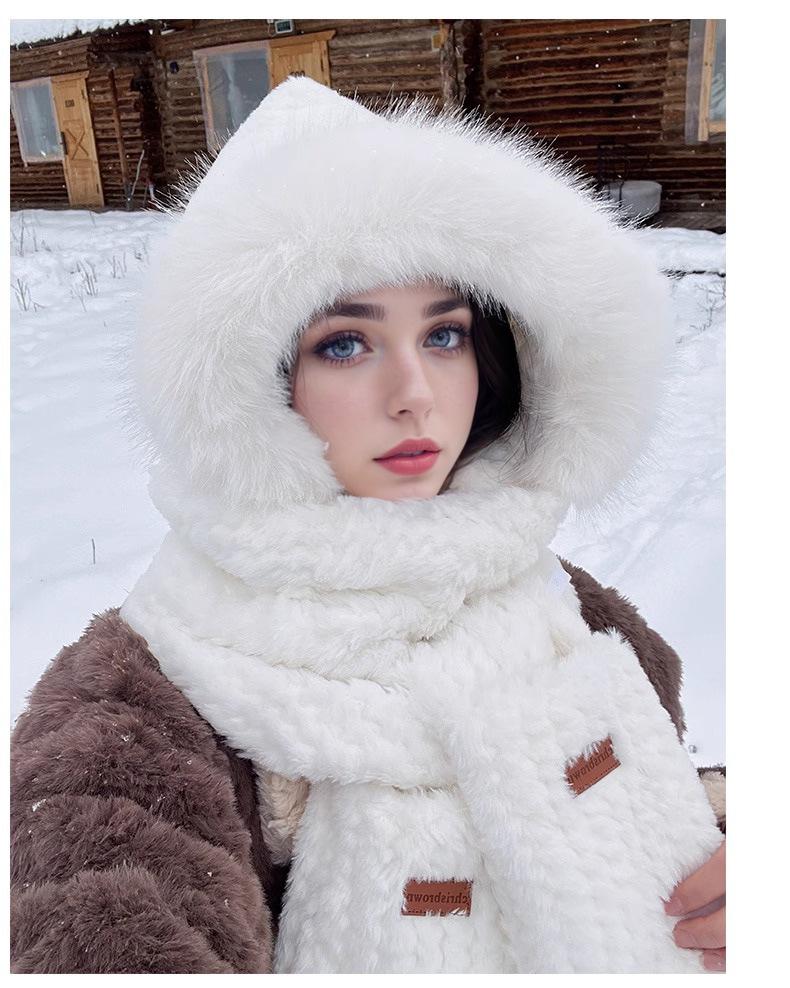 Conjunto de Tres Piezas para Invierno para Montar al Aire Libre: Sombrero Esponjoso con Bufanda Integrada, Tejido Cálido de Pelo de Conejo Rex, Bufanda a Prueba de Viento con Sombrero Integrado
