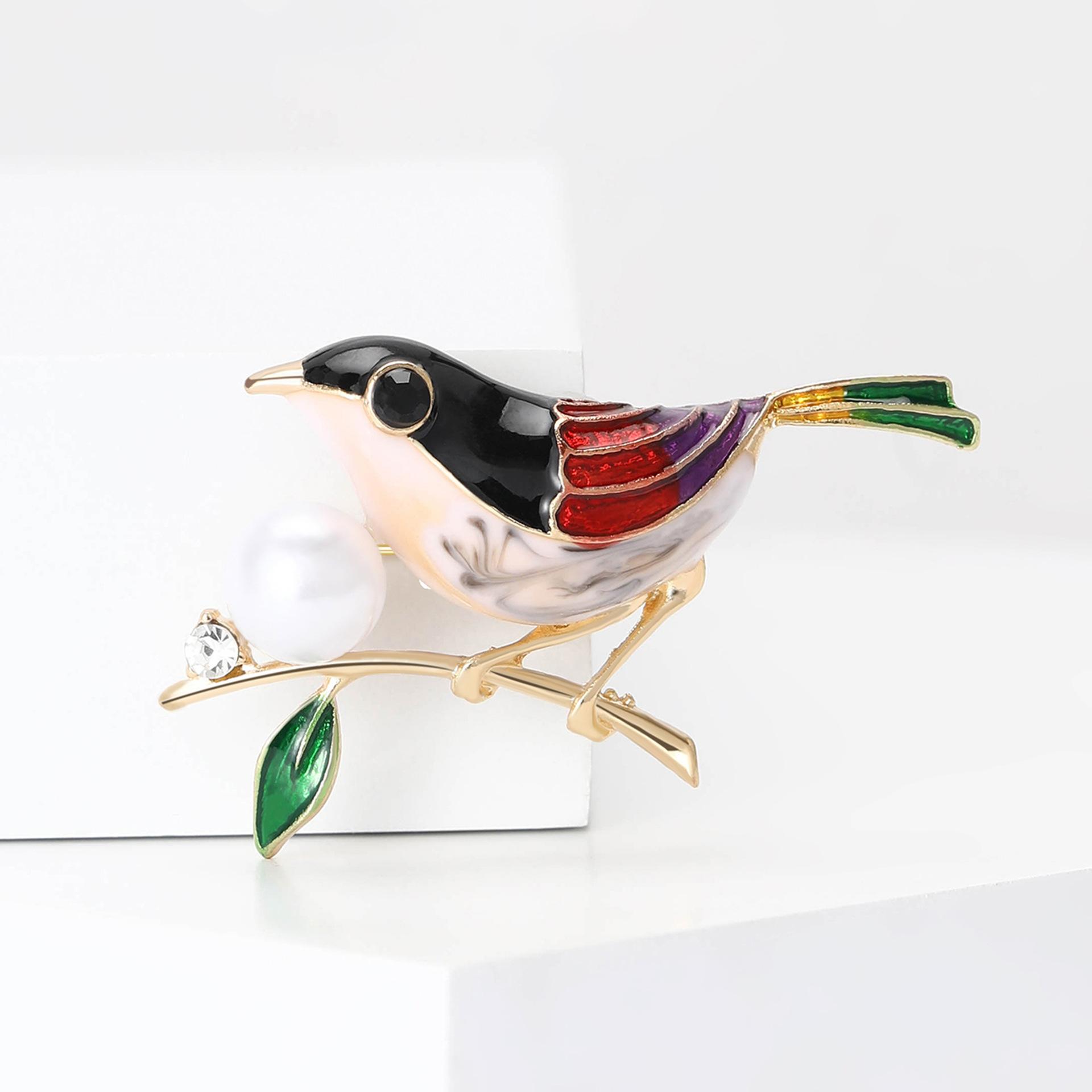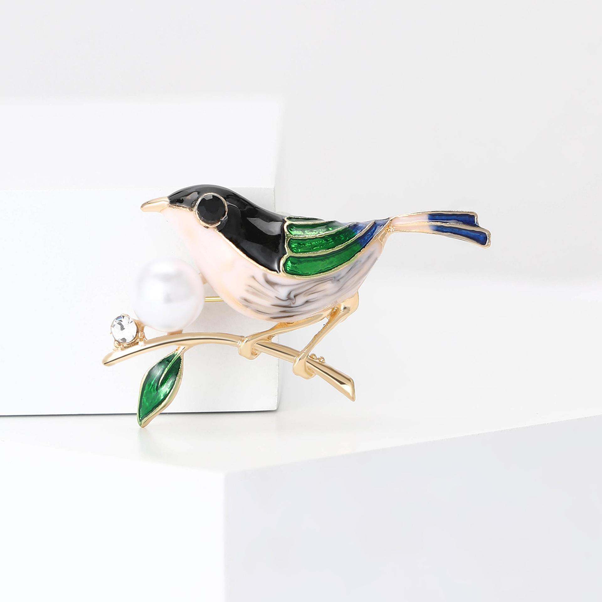 Broche de pájaro gorrión con esmalte de perla de aleación exquisita de moda, personalidad creativa, ramillete para vestido de mujer, alfiler de joyería