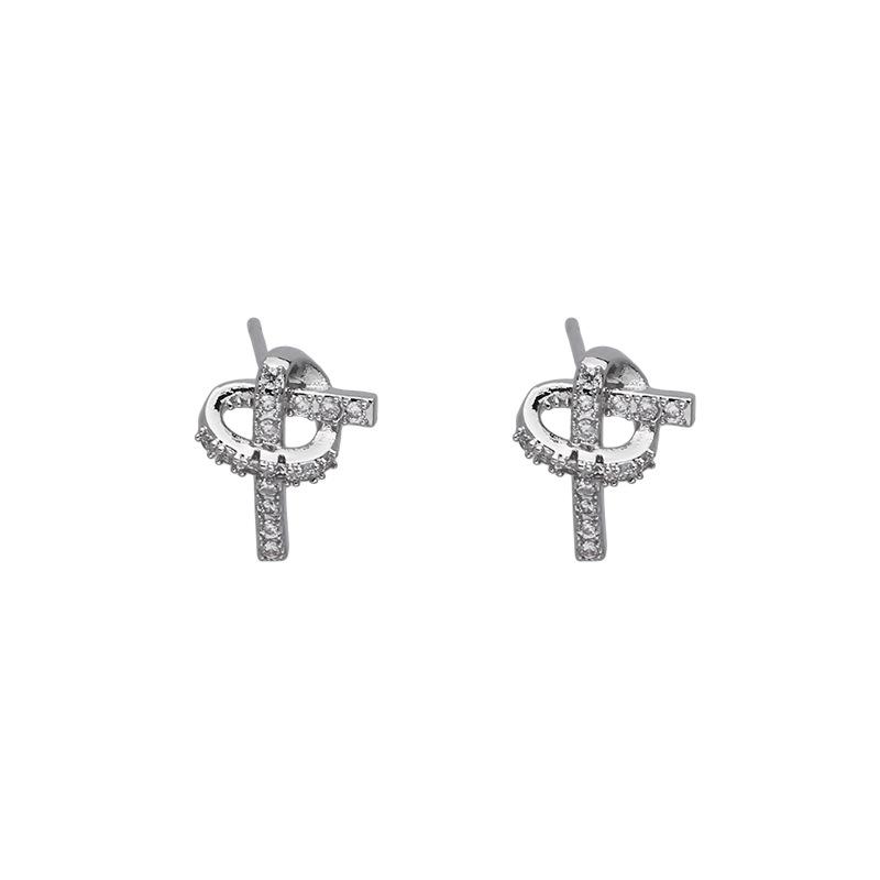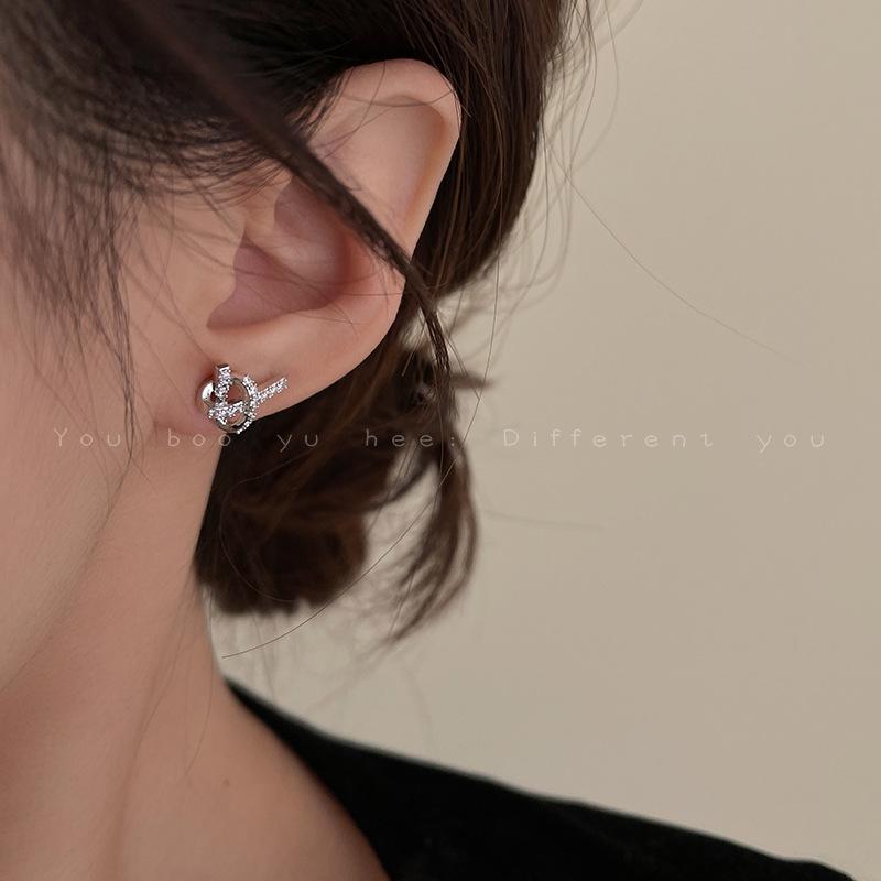 Pendientes de plata de ley S925 con forma de aguja de Dongdaemun, pequeños y exquisitos, con nudo de circón, elegantes y combinables con todo tipo de celebridades de Internet.