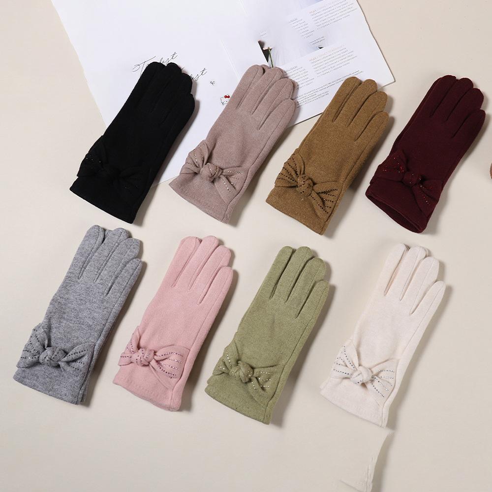 Guantes Cálidos de Imitación Cachemira para Mujer Otoño e Invierno Forrados de Forro Polar Pantalla Táctil Lazo Adulto Ciclismo Elegantes Estilo Coreano Guantes de Dedo