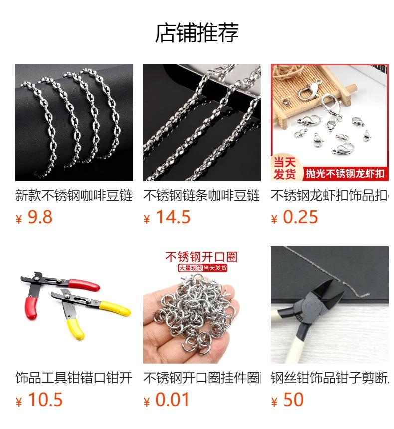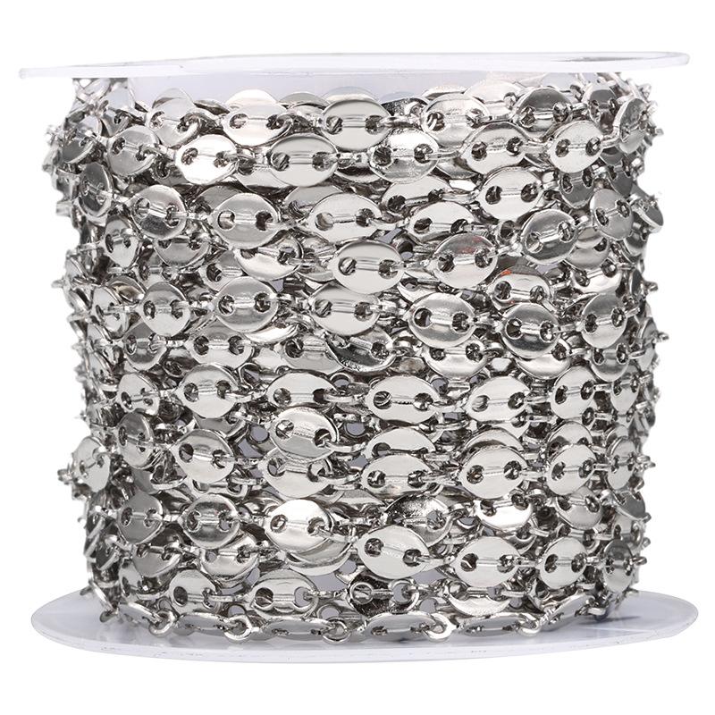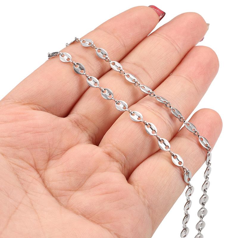 Acero inoxidable tamaño pequeño cadena lisa nariz de cerdo cadena grano de café diy collar pulsera cadena de moda cadena suelta