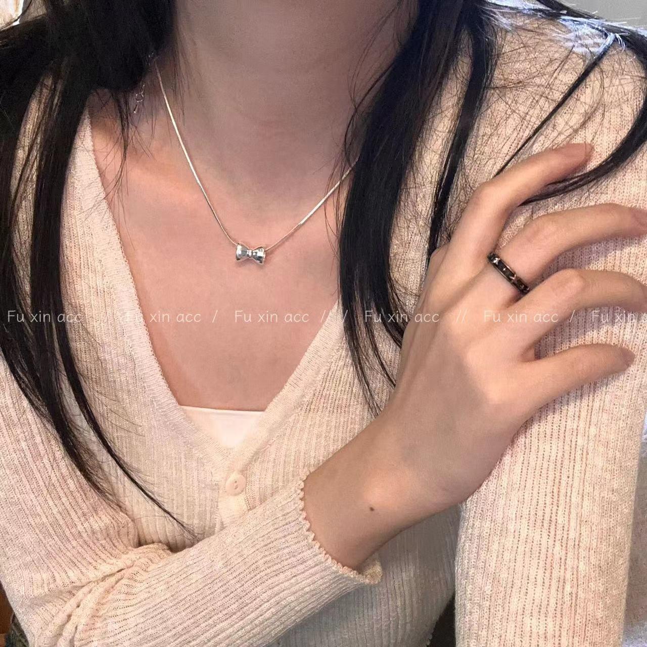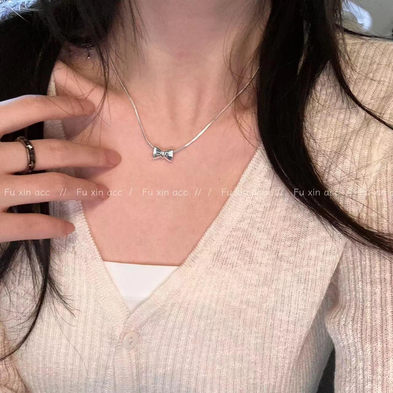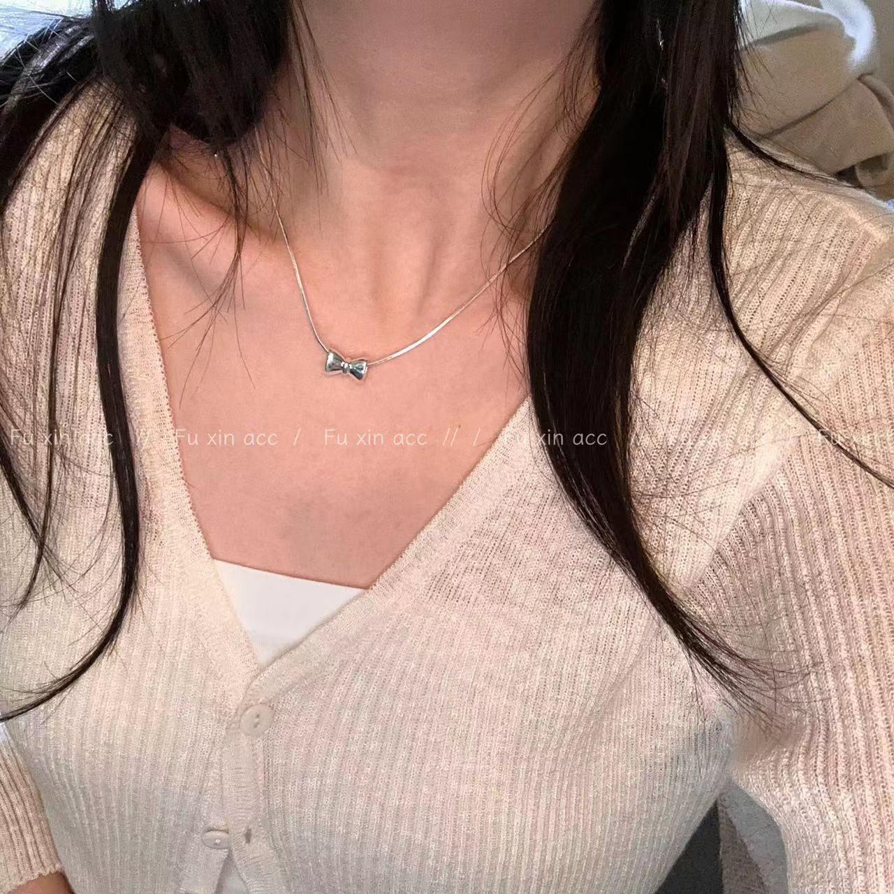 Collar con colgante de lazo de lujo, color blanco plateado, ligero y combinable, para mujer, estilo frío de alta calidad, novedad de 2024.