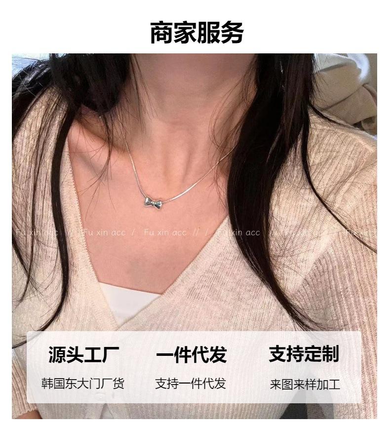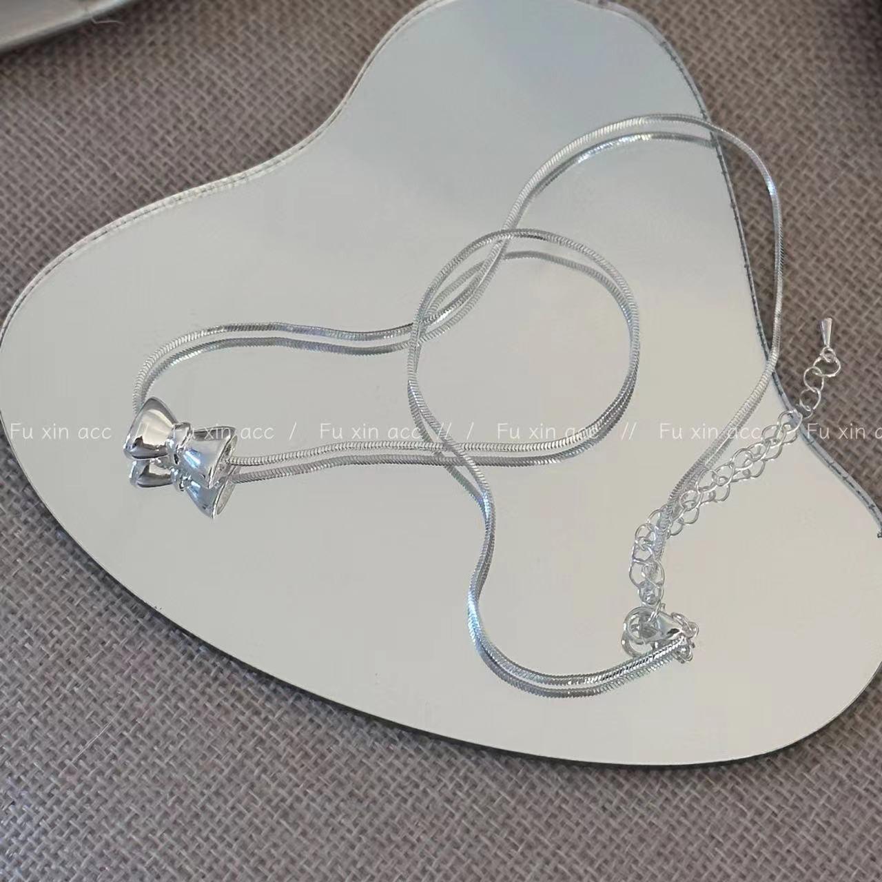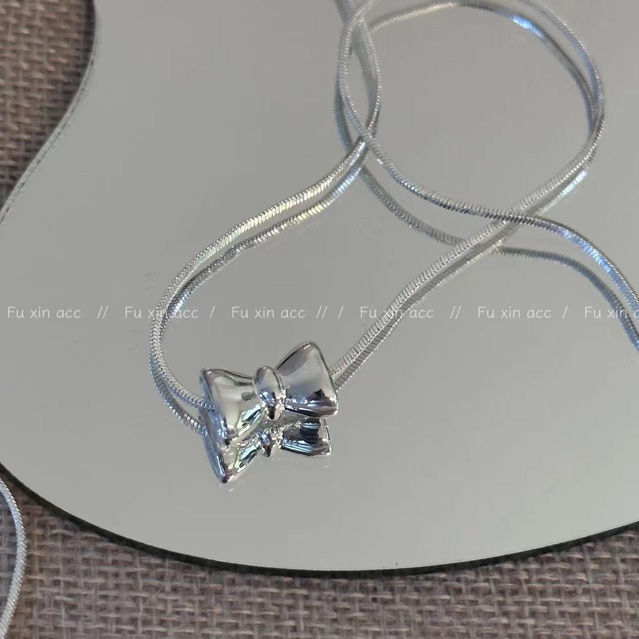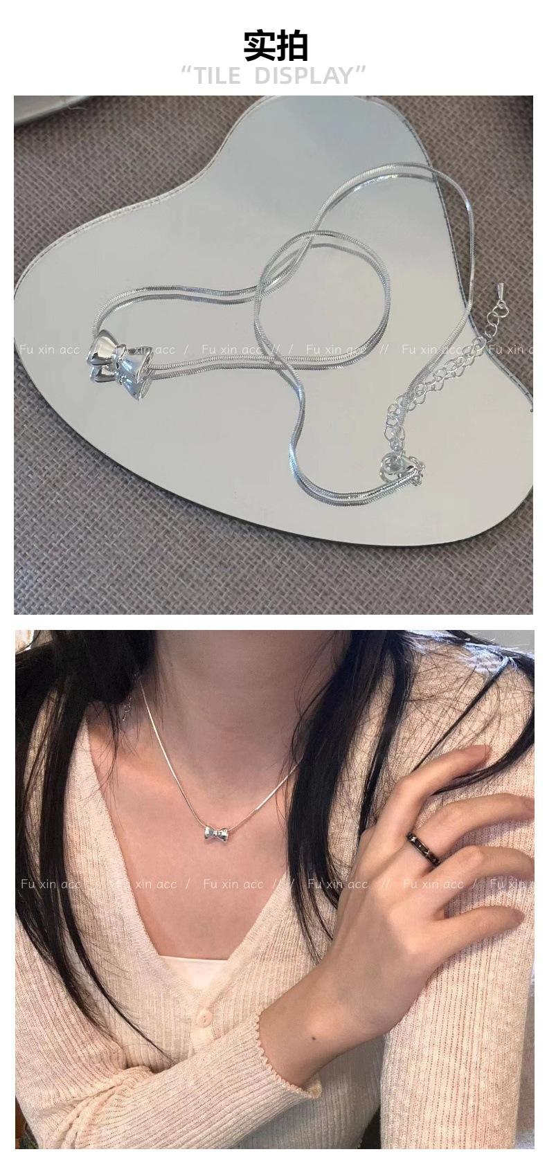 Collar con colgante de lazo de lujo, color blanco plateado, ligero y combinable, para mujer, estilo frío de alta calidad, novedad de 2024.