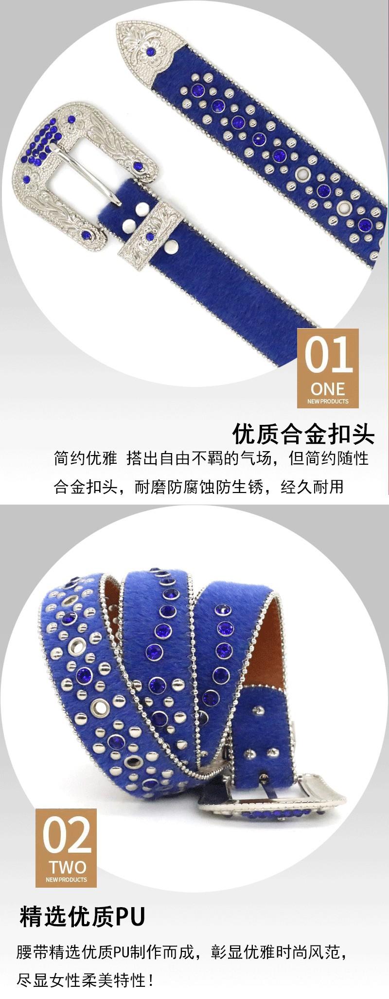 Cinturón de crin de caballo transfronterizo, moda femenina, personalidad punk, cinturón de tendencia Y2K, cinturón decorativo con incrustaciones de diamantes de imitación para hombre, cinturón para pantalones de mujer