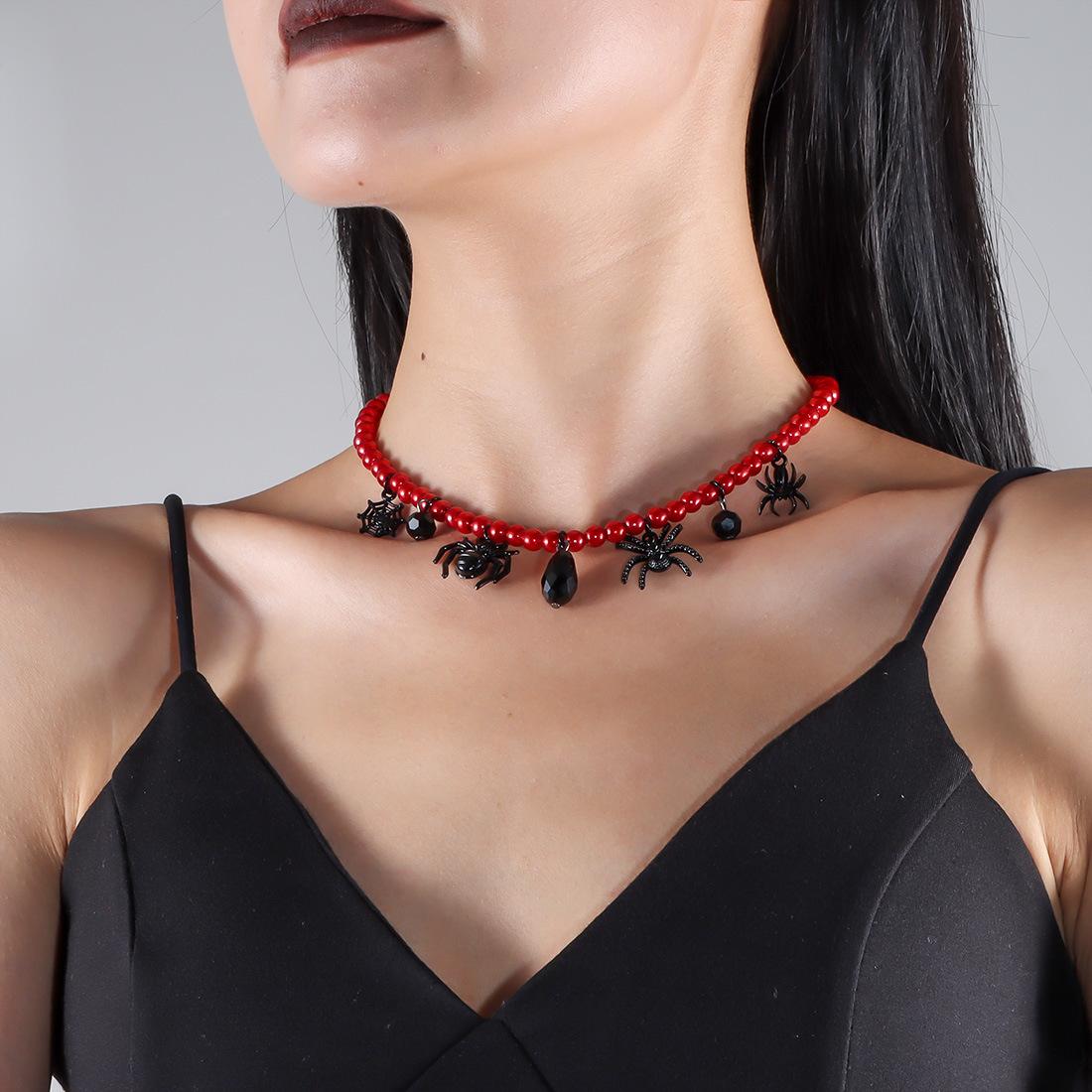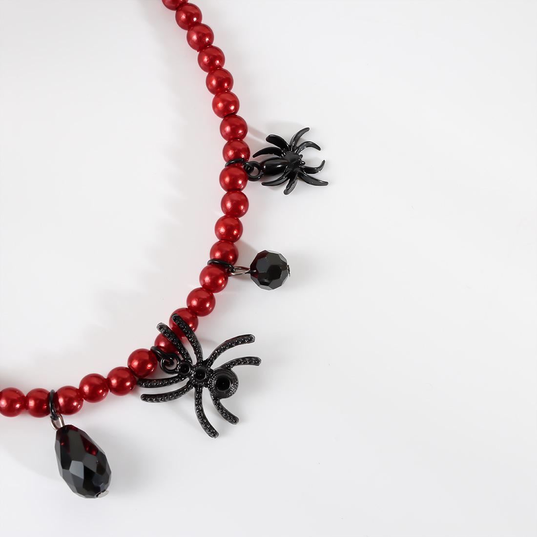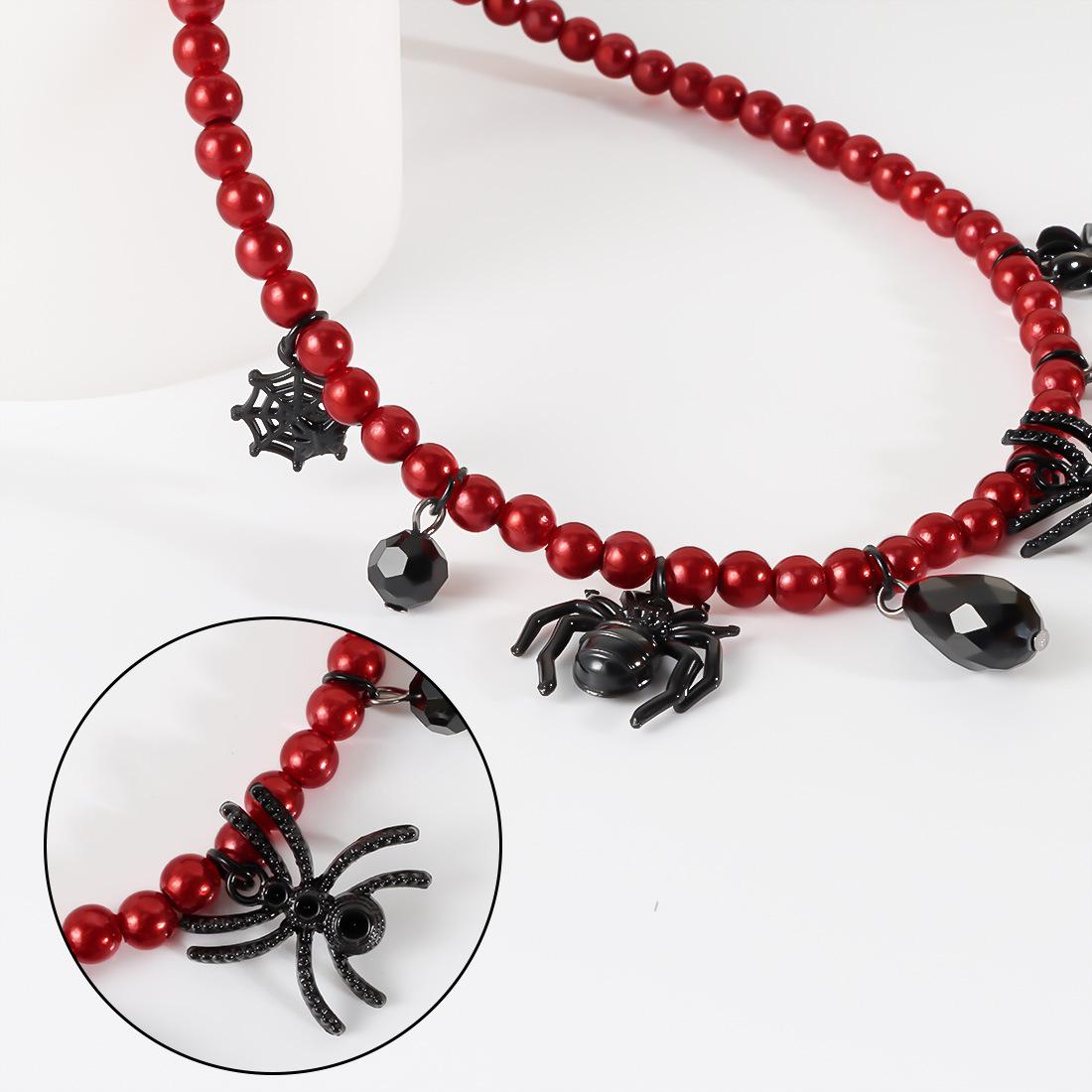 Collar de perlas retro exagerado de Halloween con cadenas de araña negras y colgante punk moderno NK24840