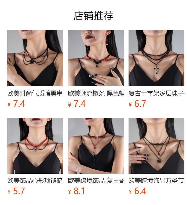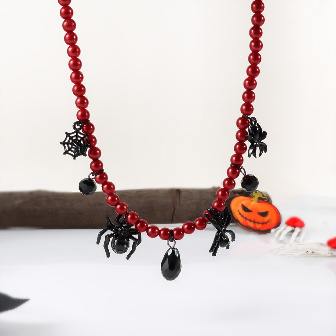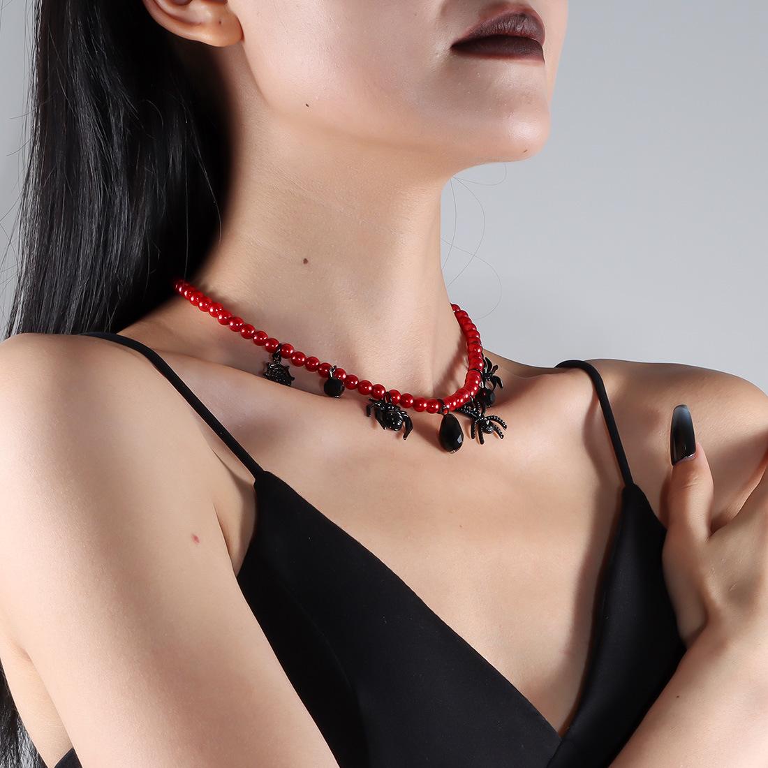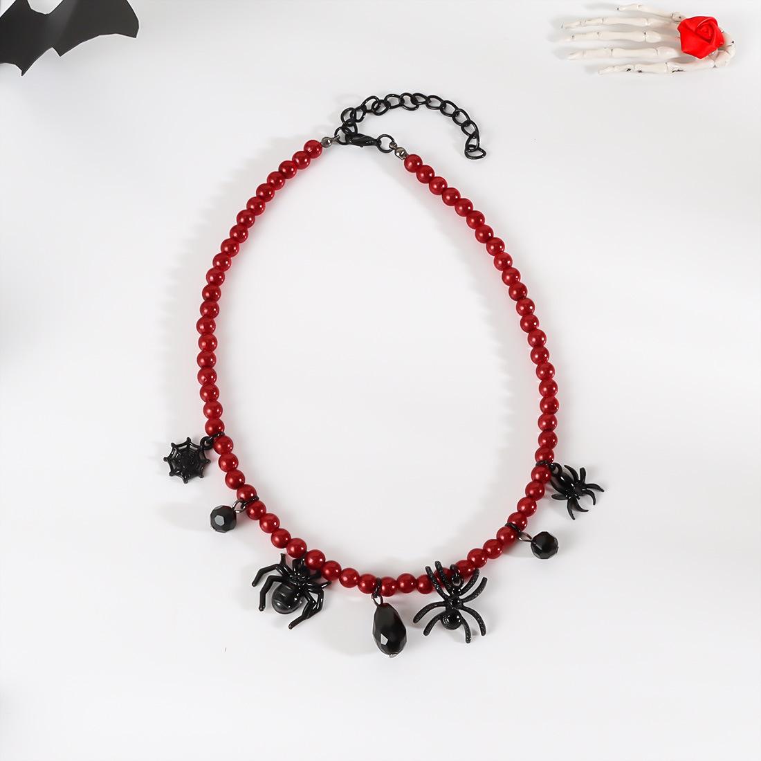 Collar de perlas retro exagerado de Halloween con cadenas de araña negras y colgante punk moderno NK24840
