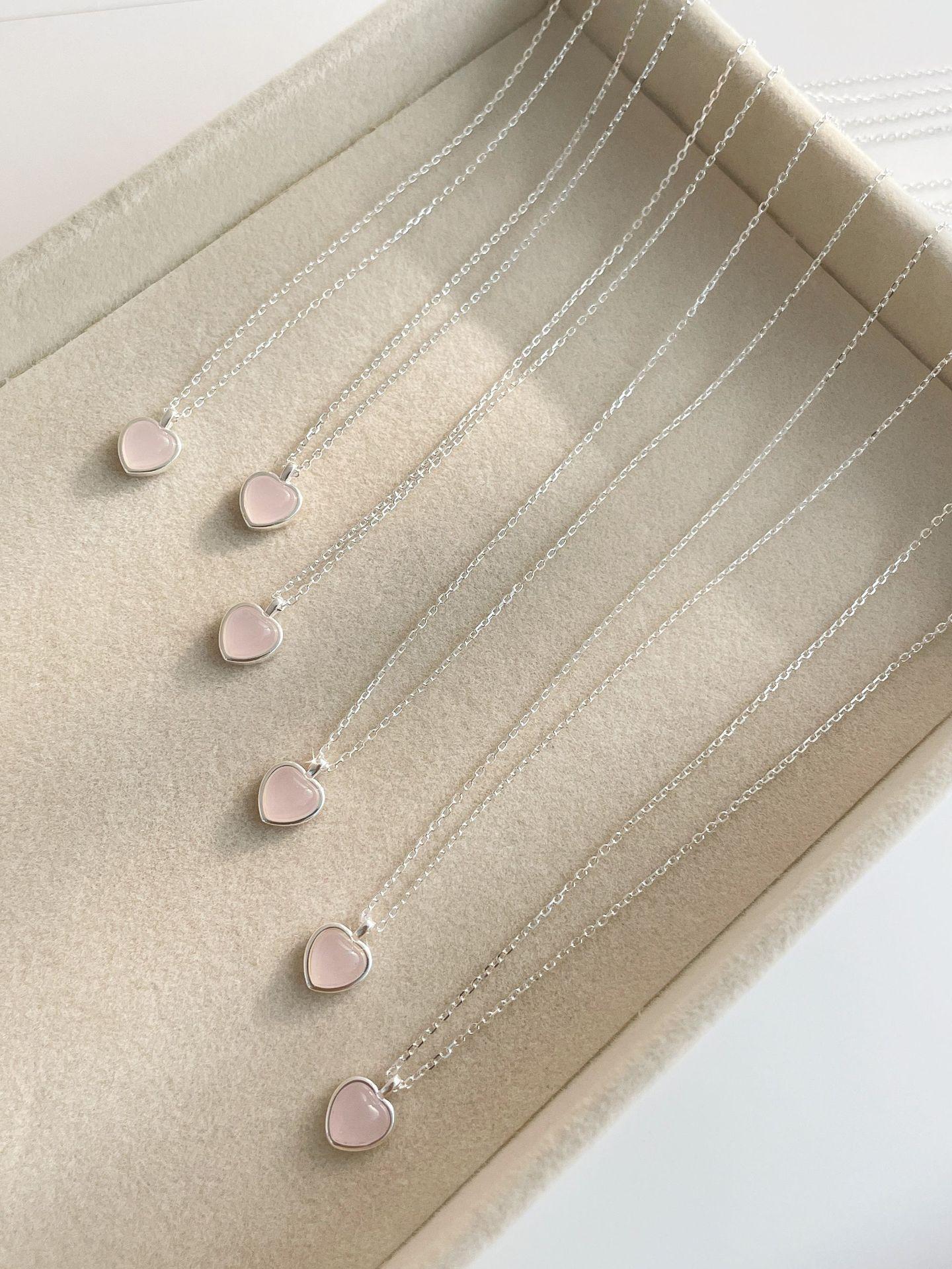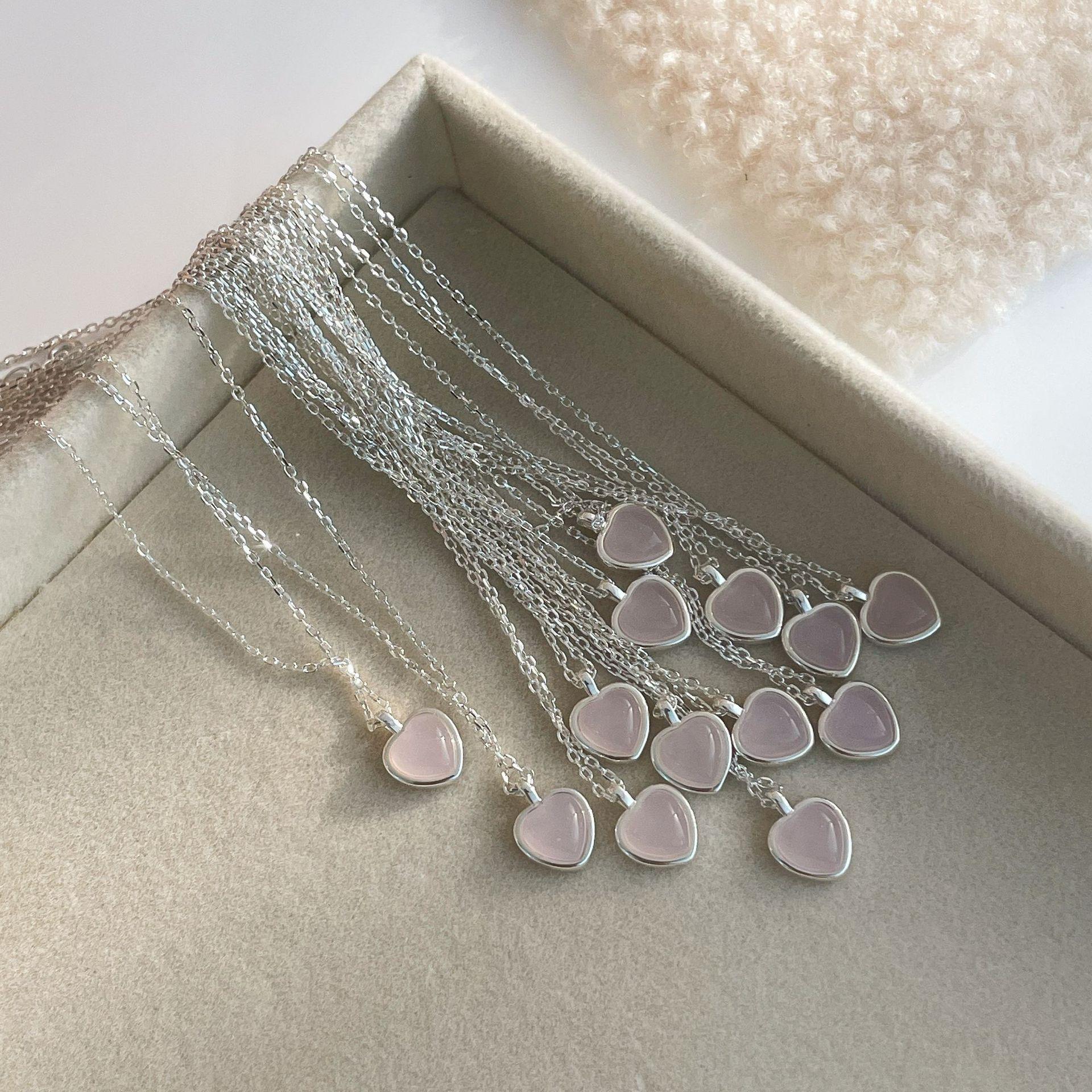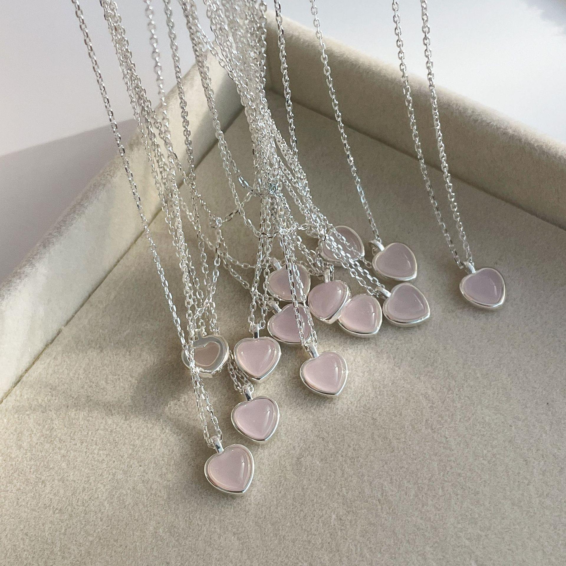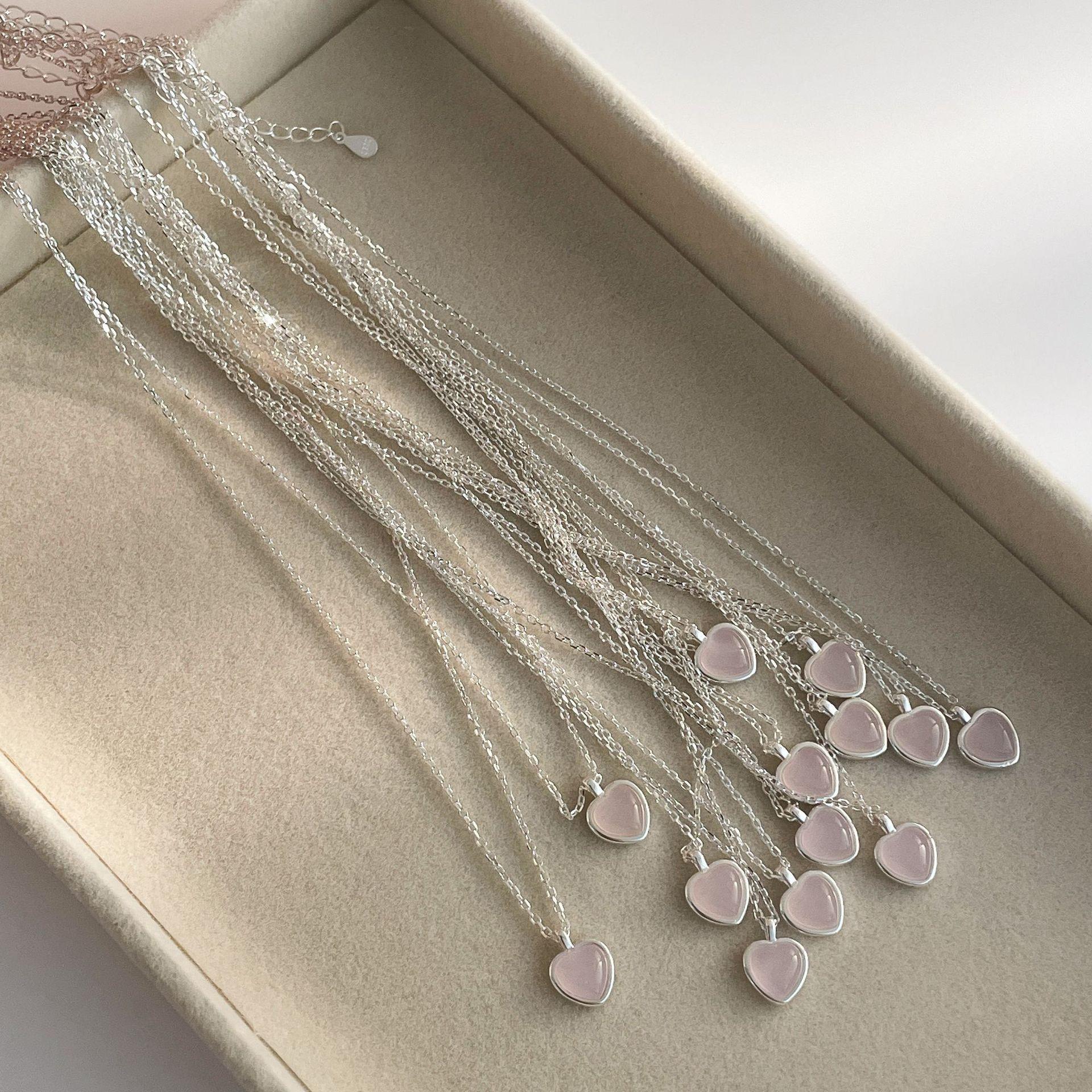 Saina Design Sense Plata Esterlina S925 Dulce Elegante Rosa Amor Collar para Mujer Colgante Corazón de Caramelo Cadena Clavícula